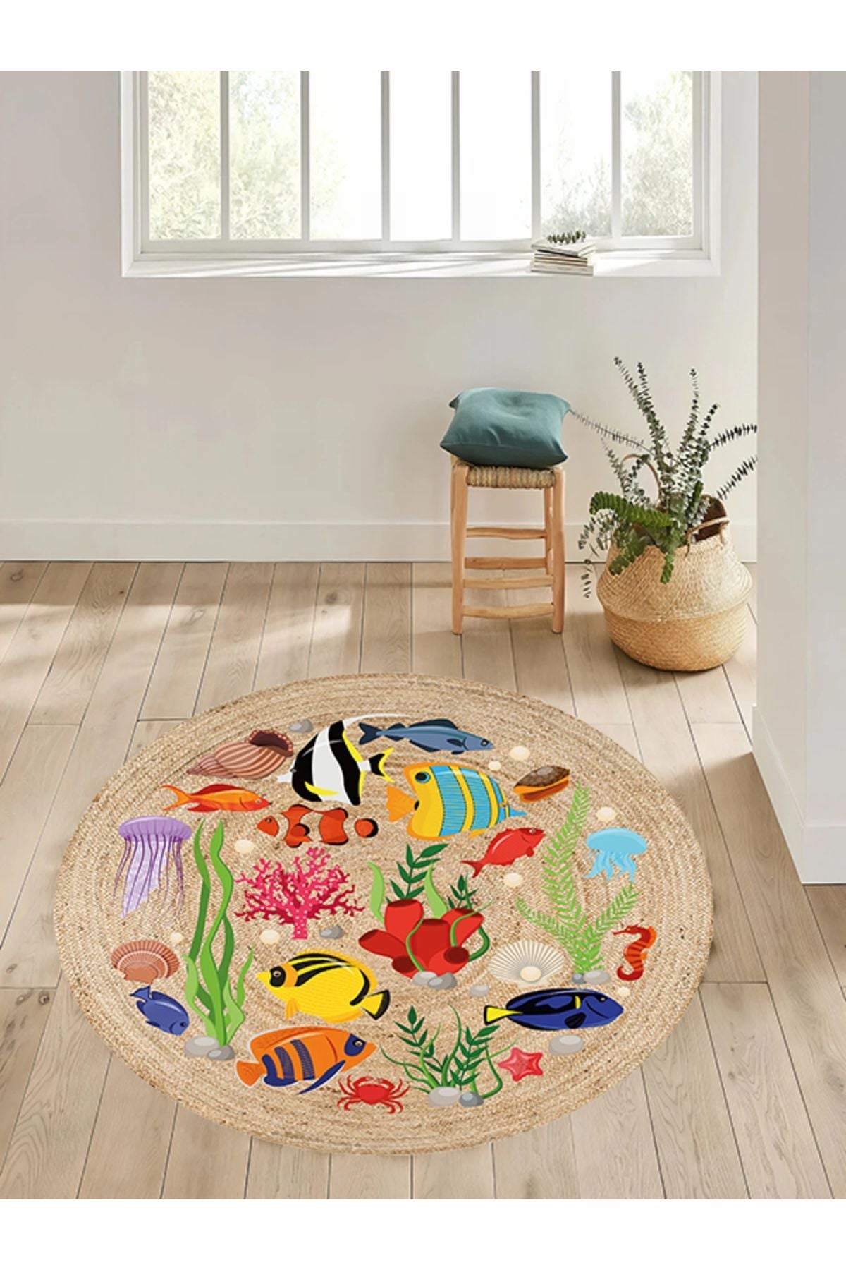 Boho 917 Jüt Hasır Etnik Desenli Jüt Örme Doğal Hasır Natural Halı