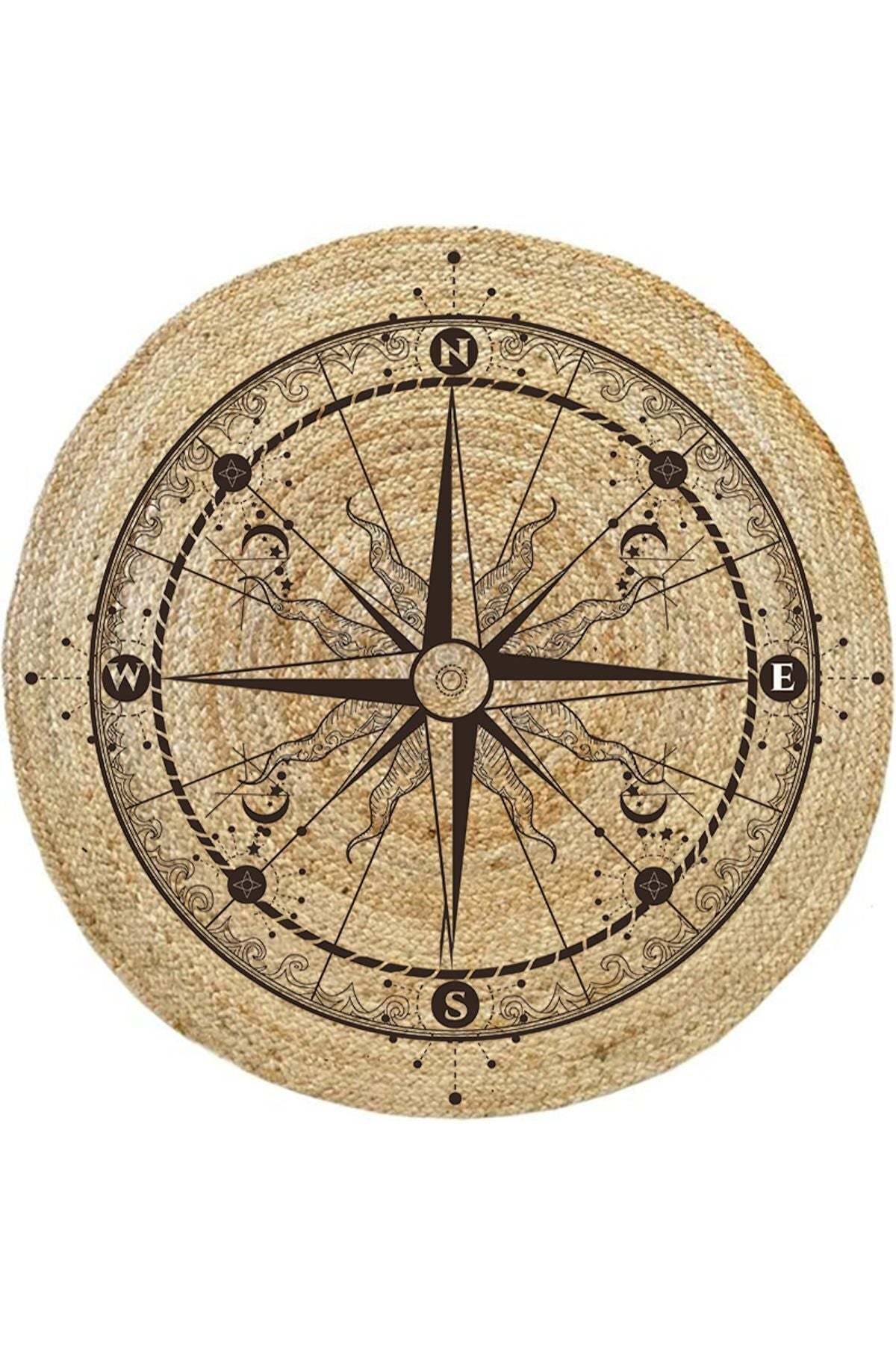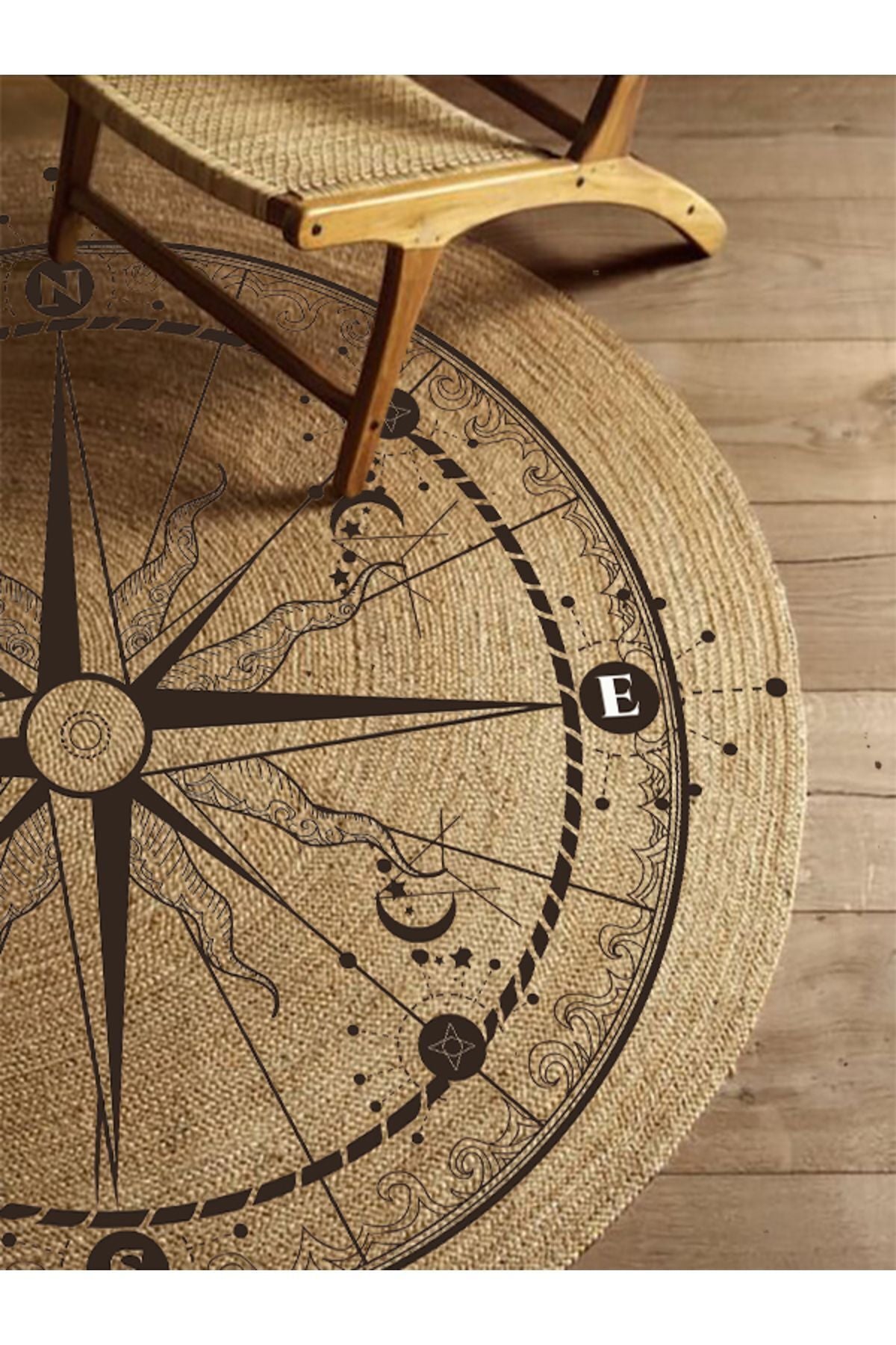 Boho 942 Pusula Tema Etnik Örgü Yuvarlak Natural Renk Çift Taraflı Halı
