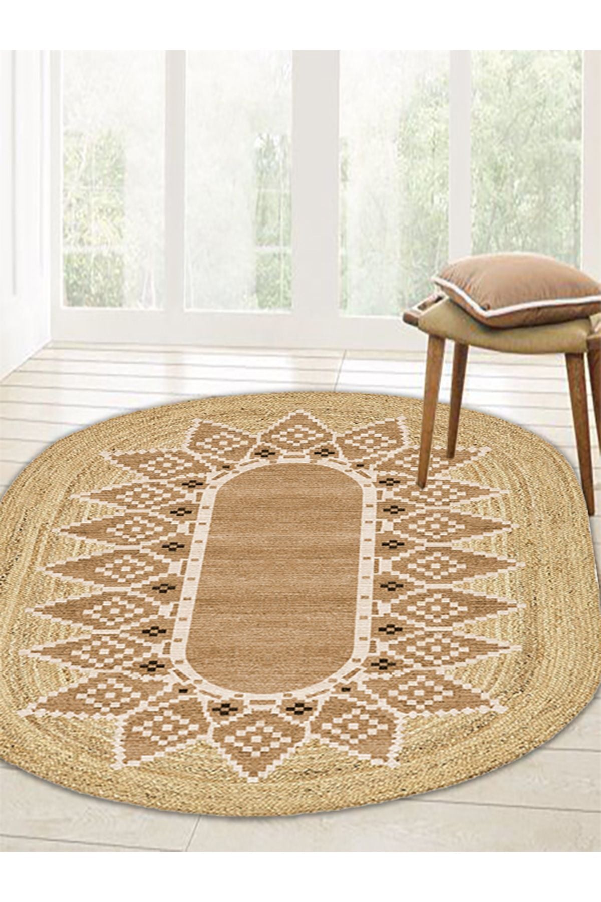 Boho 980 Jüt Hasır Etnik Desenli Oval Jüt Örme Doğal Hasır Natural Oval Halı