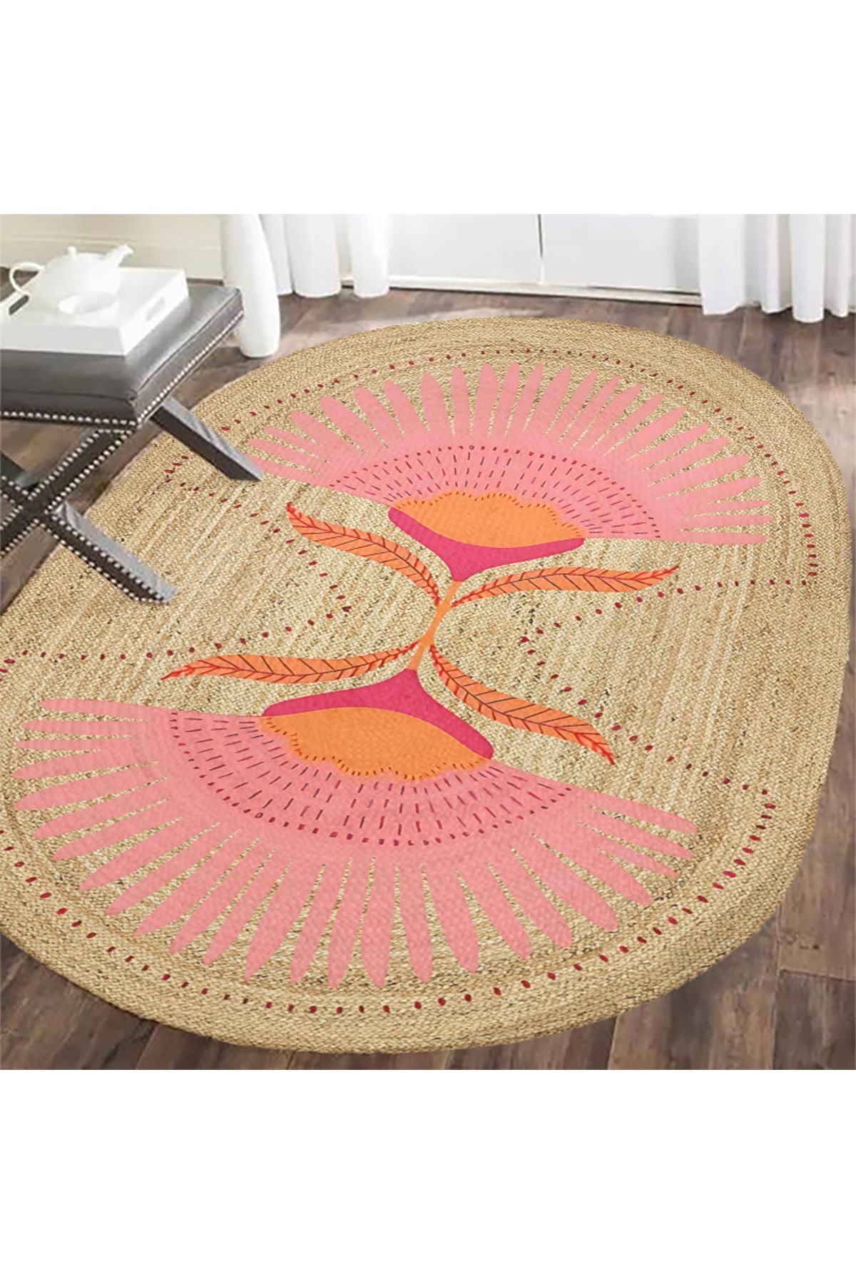 Boho 989 Jüt Hasır Etnik Desenli Oval Jüt Örme Doğal Hasır Natural Oval Halı