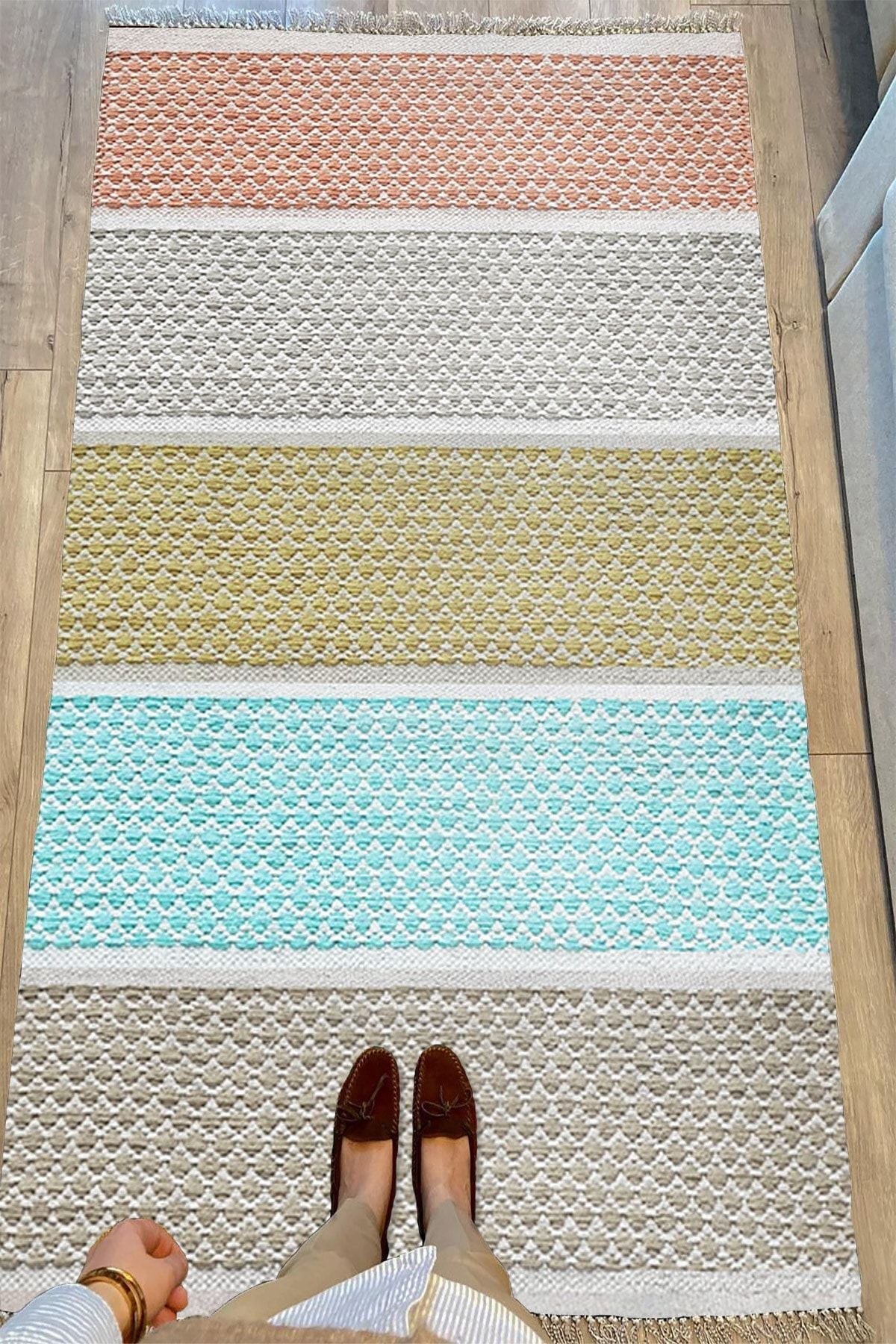Cotton Serisi Multy Tonlarında Kabartma Eskitme Desenli Dekoratif Dokuma Taban Kilim