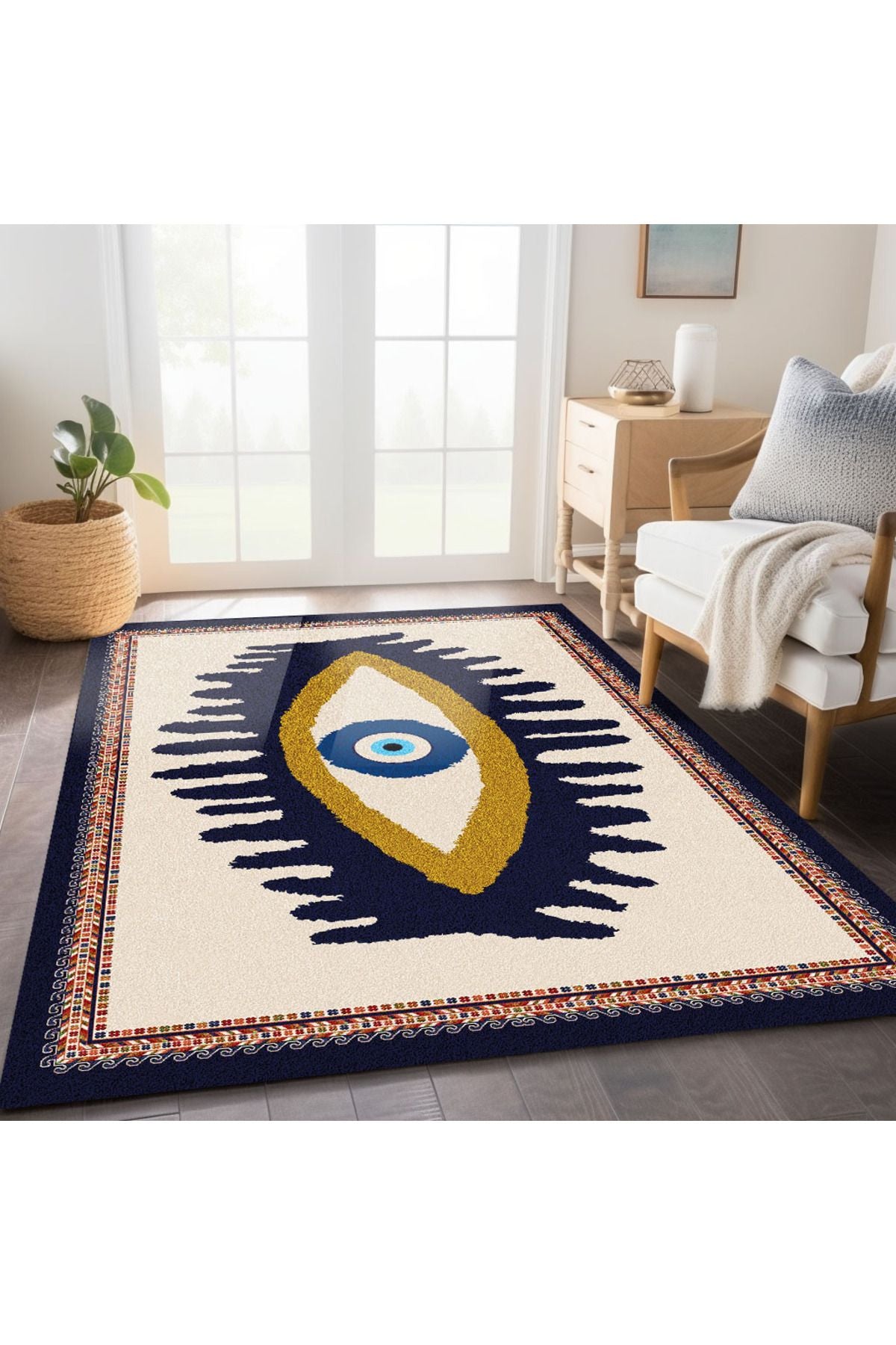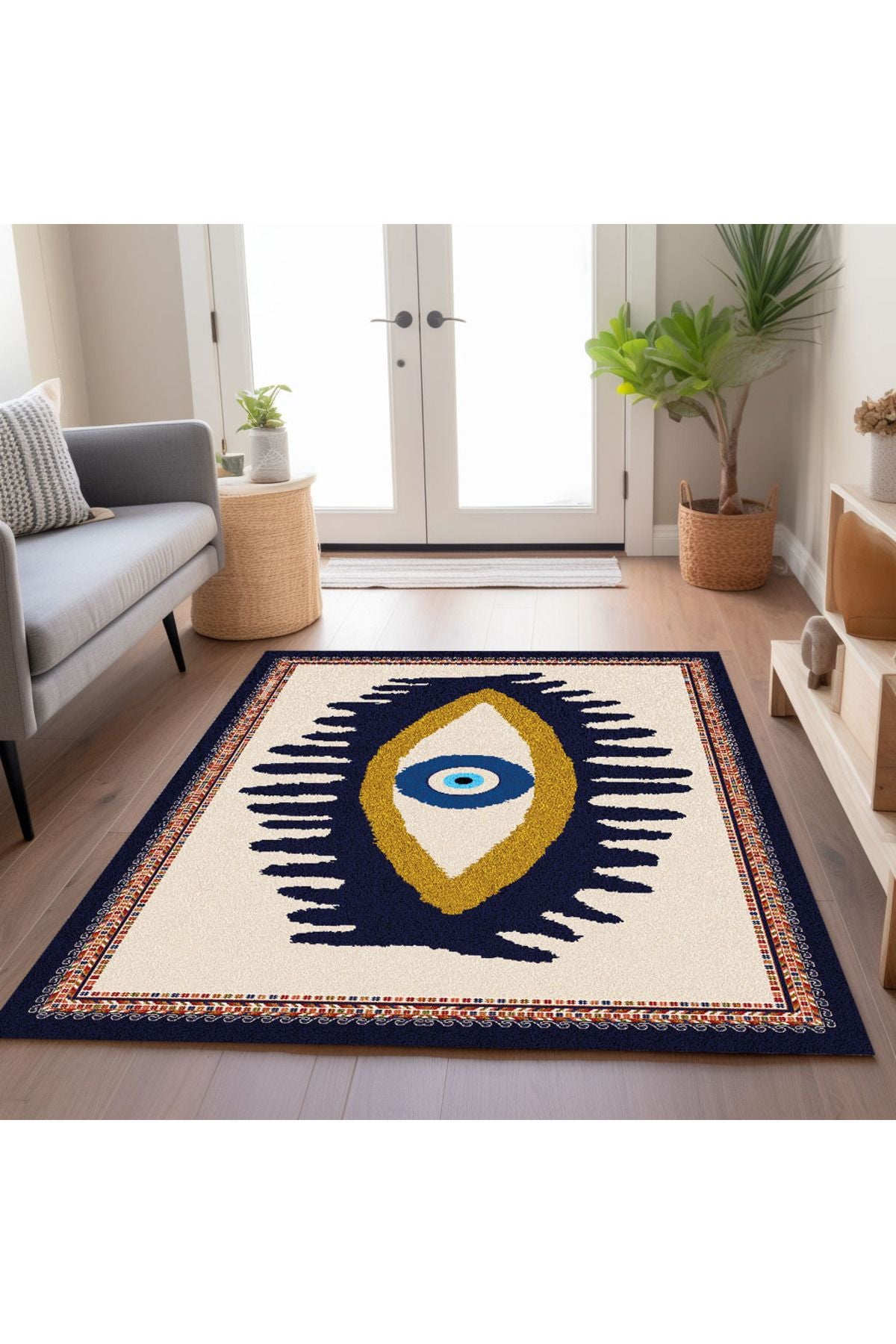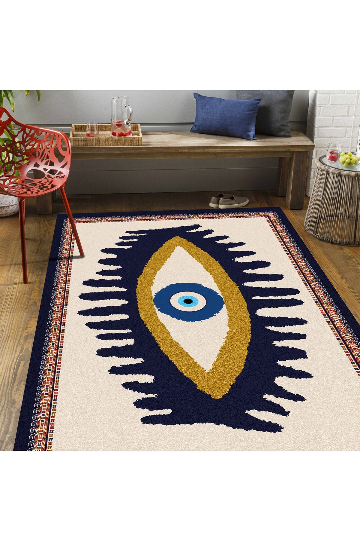 Göz Temalı Mavi Pastel Tonlarında Nazar Boncuğu Dokuma Taban Salon Halısı Çocuk Halısı HV 252