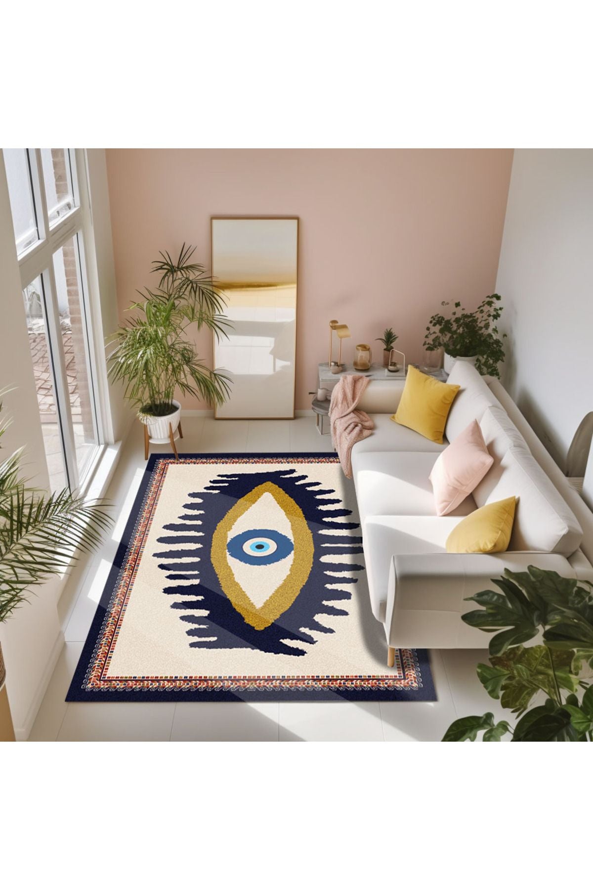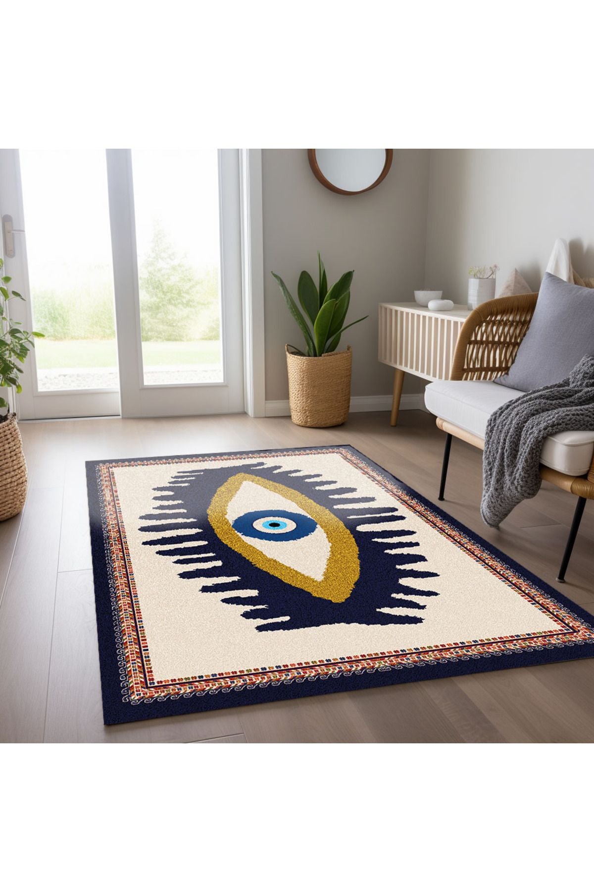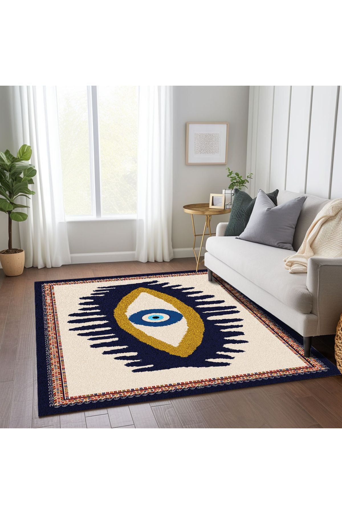 Göz Temalı Mavi Pastel Tonlarında Nazar Boncuğu Dokuma Taban Salon Halısı Çocuk Halısı HV 252