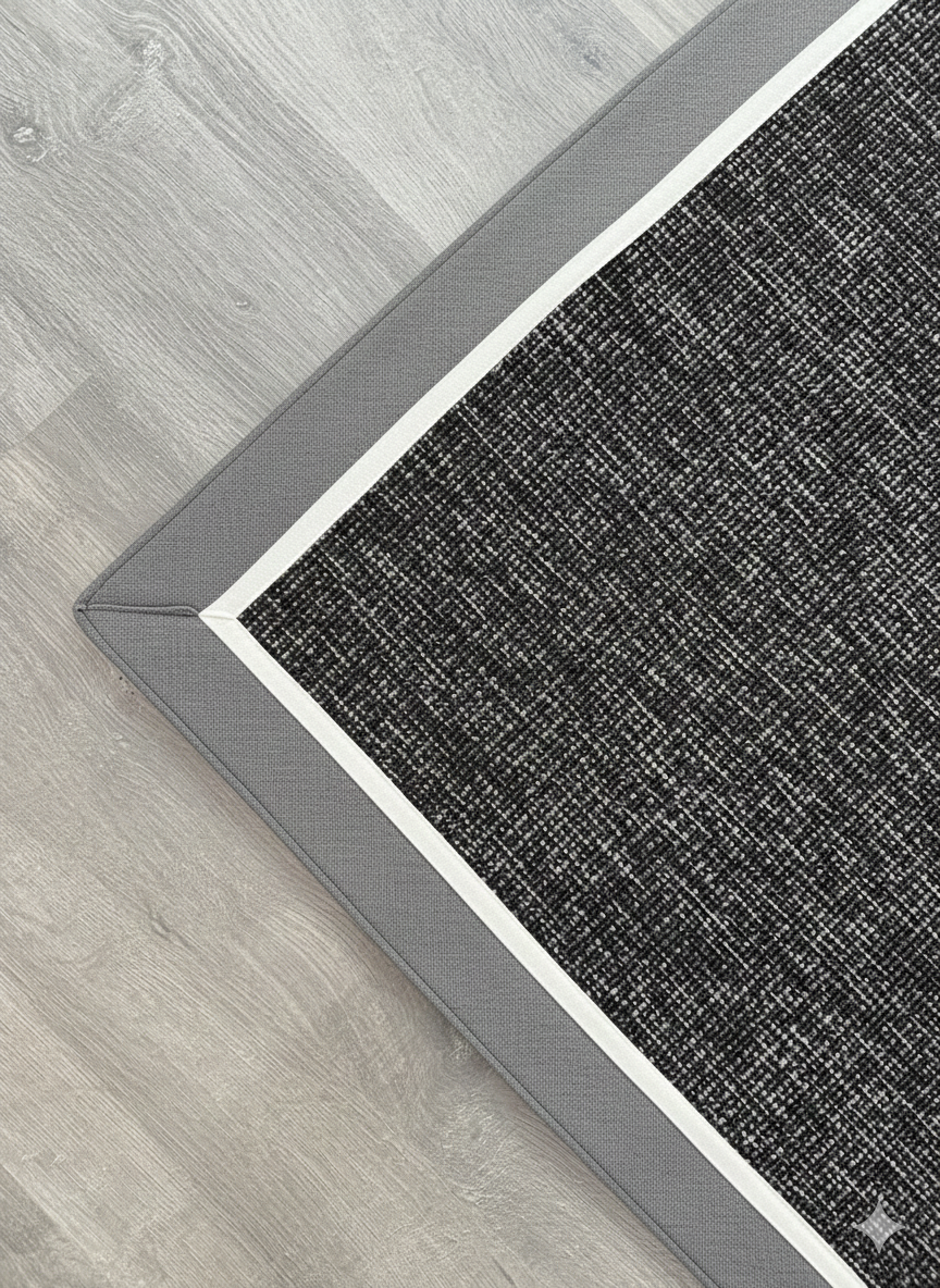 Gri Beyaz Çift Renk Kumaş Bordürlü Siyah Antrasit Sisal Halı - El Yapımı, Dayanıklı, Modern Tasarım - HVHB28