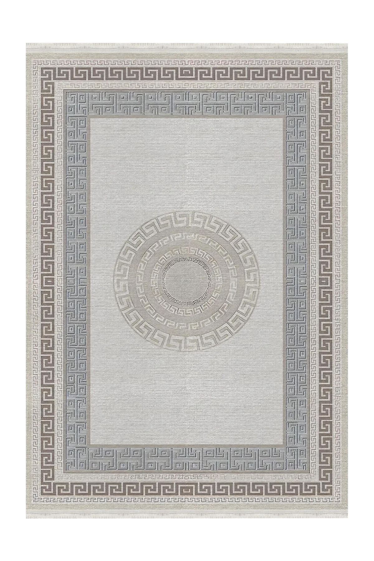 Halı Vagonu 136 Monogram Gri Bej Modern Dokuma Taban Halı