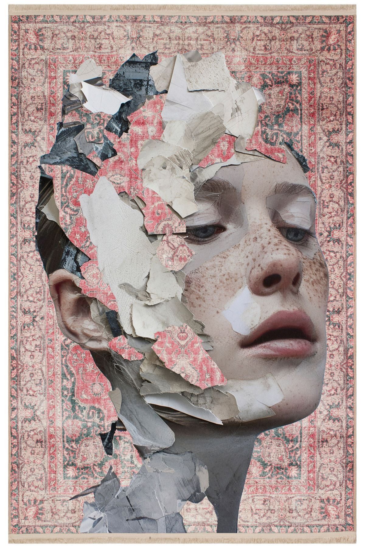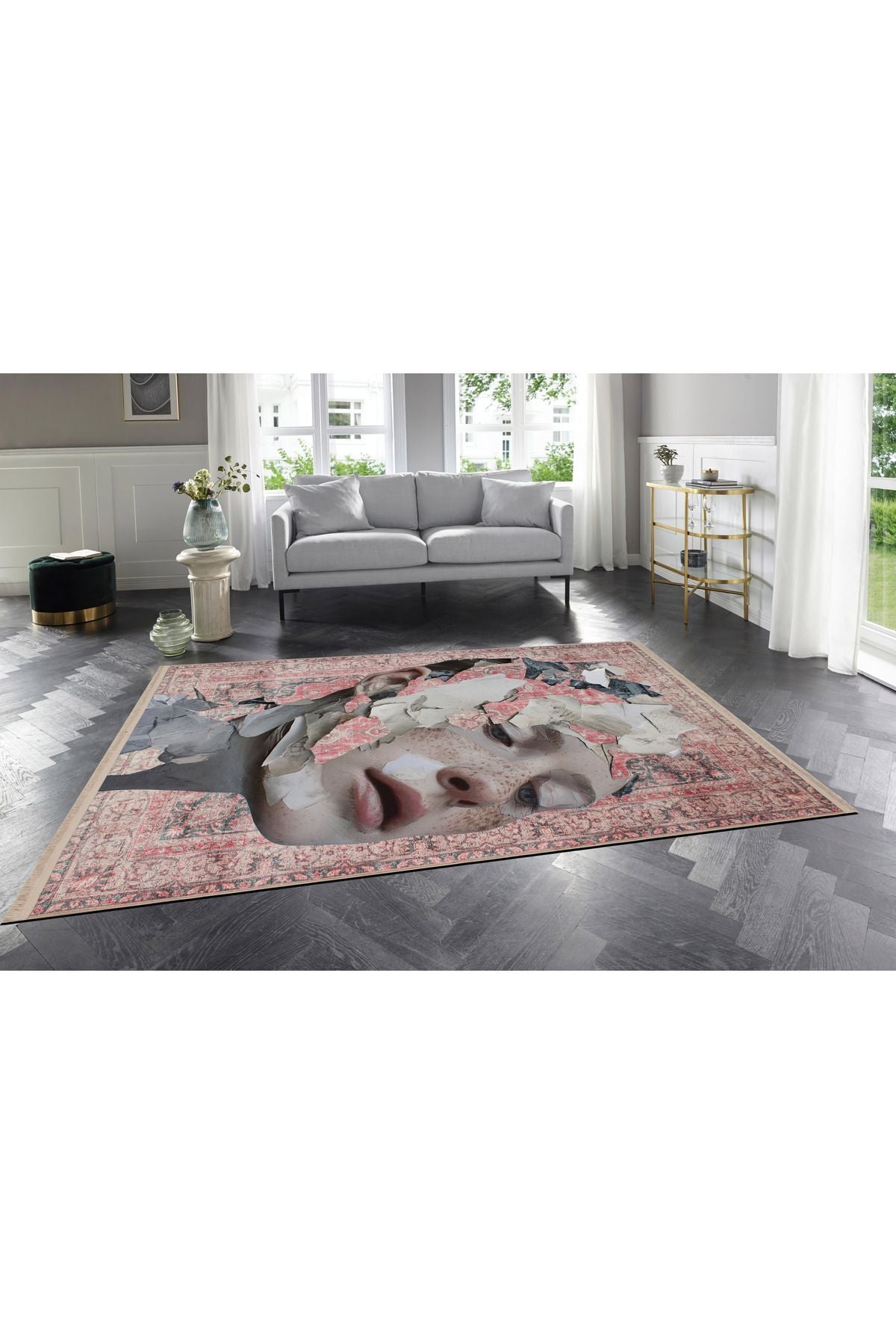 Halı Vagonu 169 Kırmızı Vintage Kadın Silüeti Figürlü Modern Dokuma Taban Halı