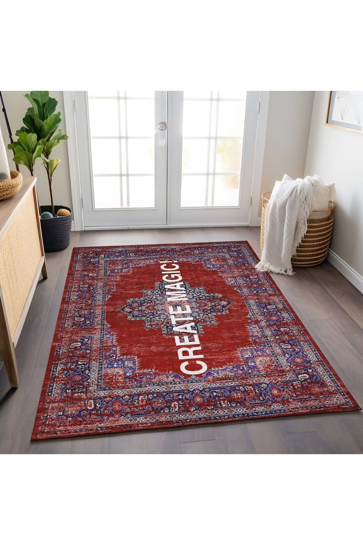 Halı Vagonu 190 Create Magic Yazılı Etnik Vintage Dokuma Taban Halı