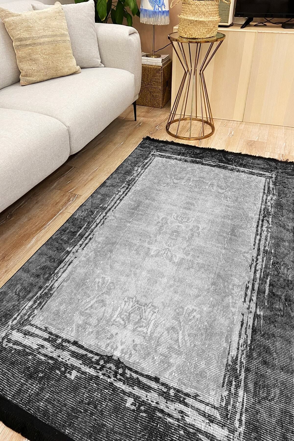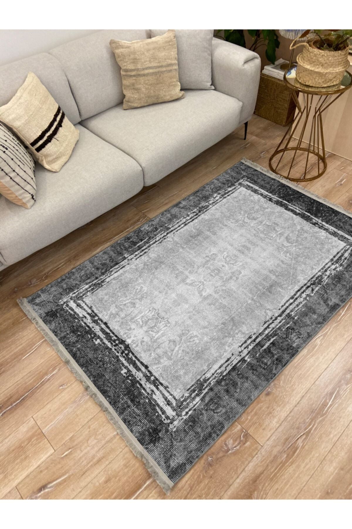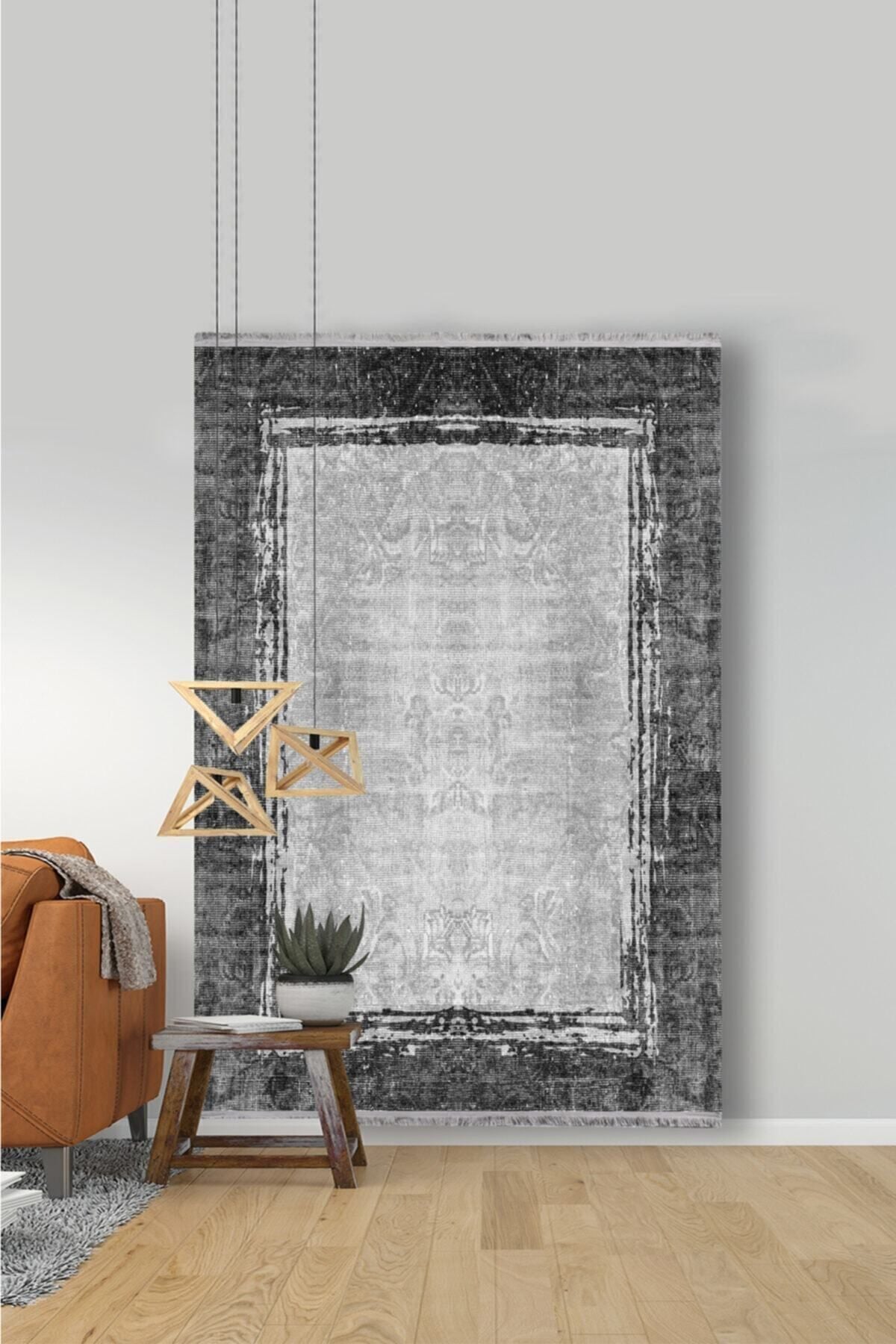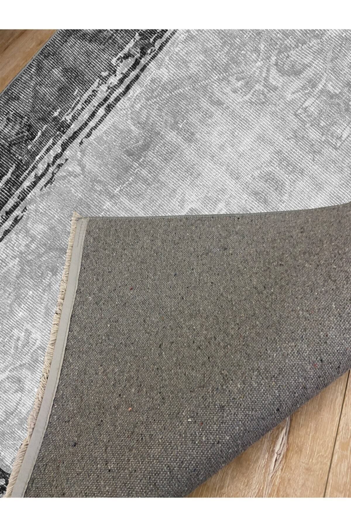 Halı Vagonu 2003 Gri Tonunda Bordürlü Desen Kaymaz Taban Dekoratif Halı