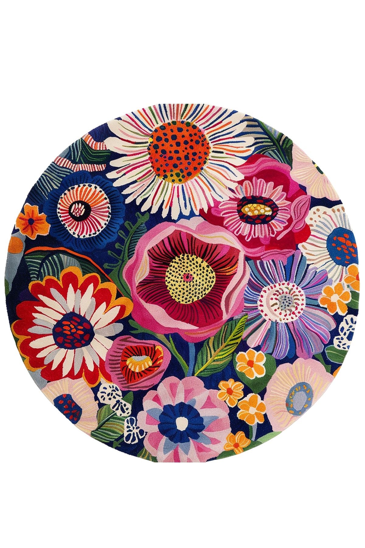 Halı Vagonu 201 Çiçekli Çok Renkli Yuvarlak Dokuma Taban Salon Halısı