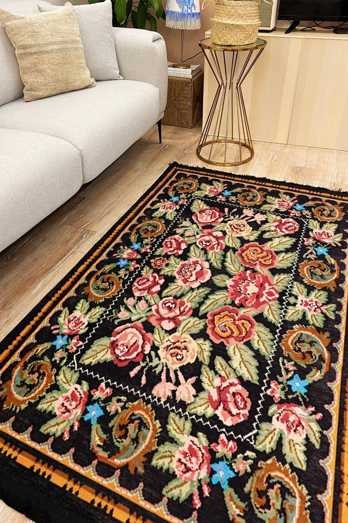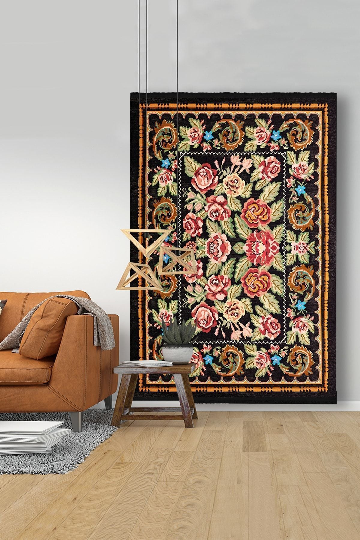 Halı Vagonu 2010 Siyah Ve Sarı Tonlarında Bordürlü Geometrik Desen Kaymaz Taban Dekoratif Halı