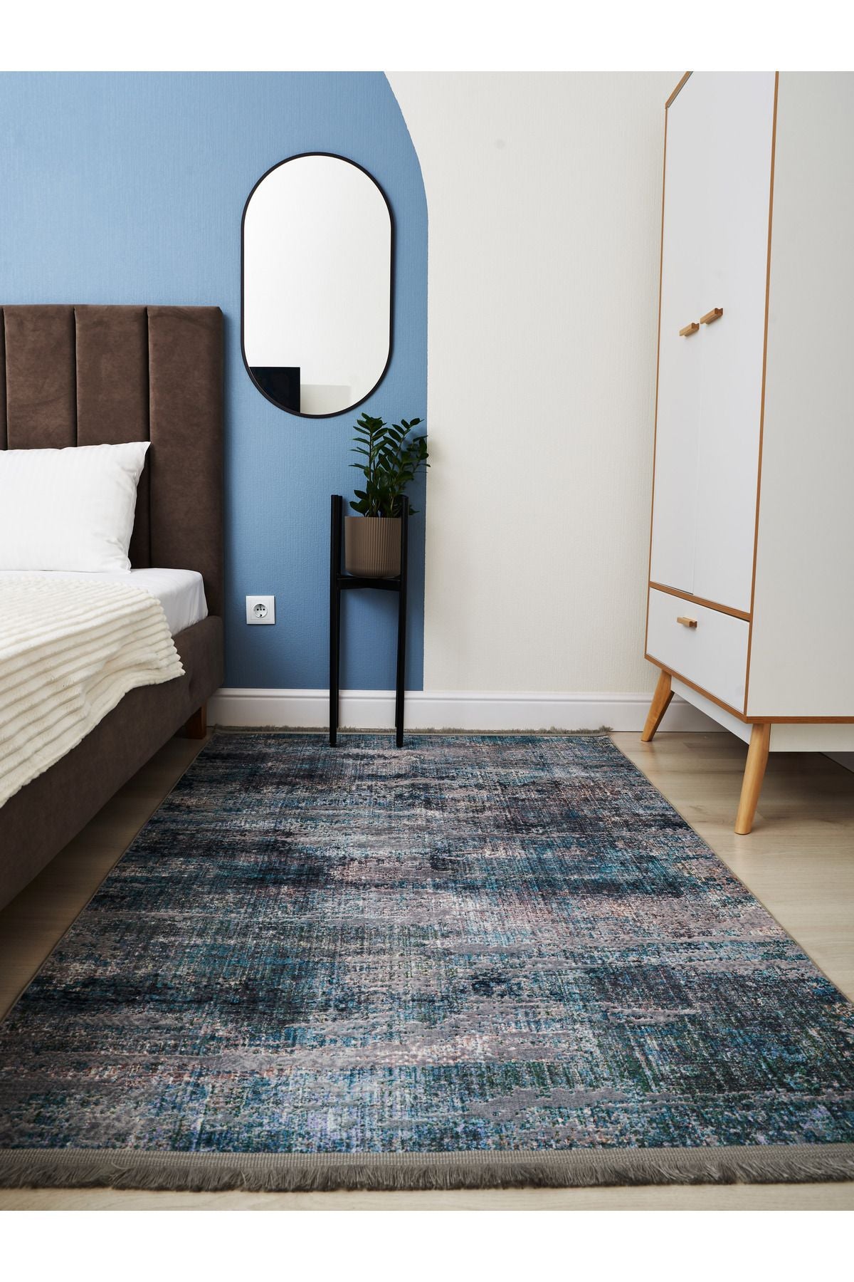 Halı Vagonu 2024 Mavi Gri Soyut Desen Modern Dokuma Taban Dekoratif Halı