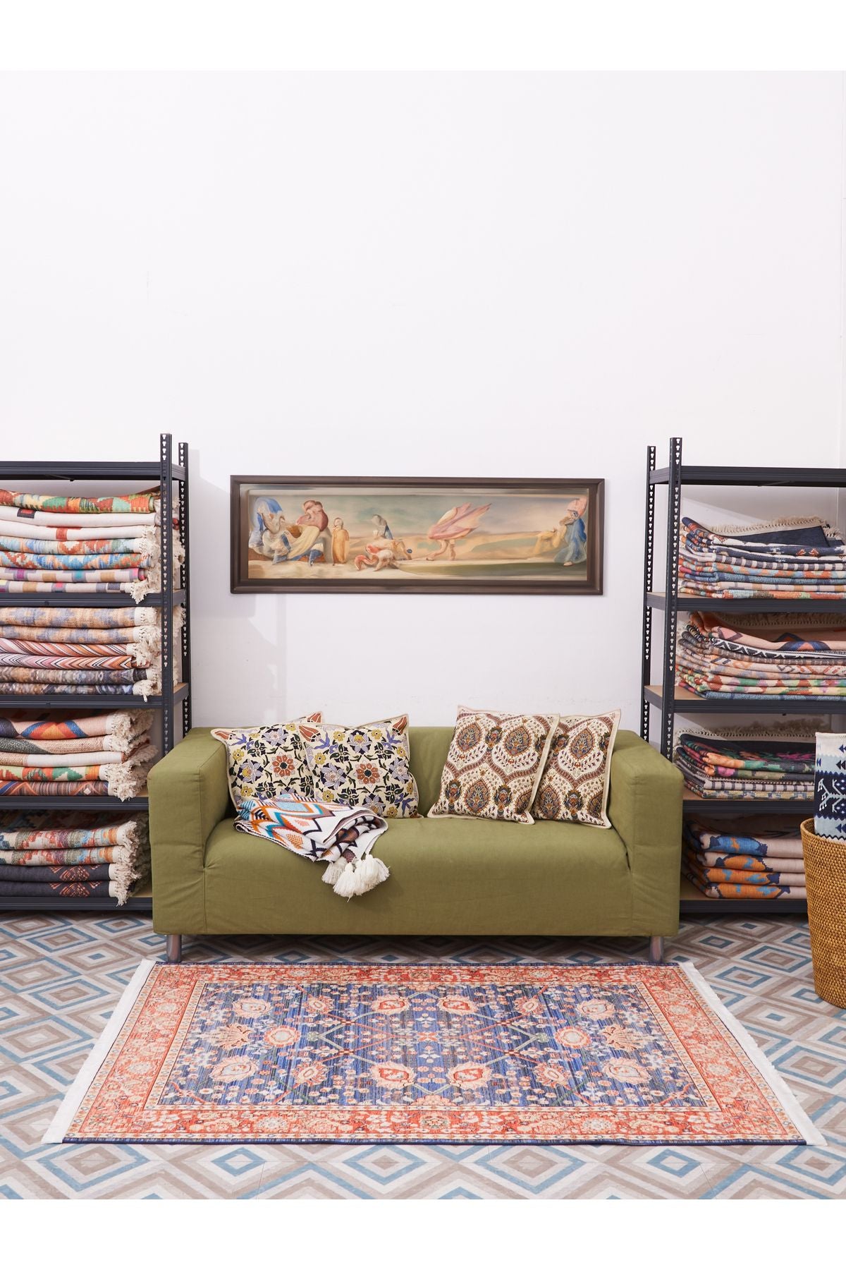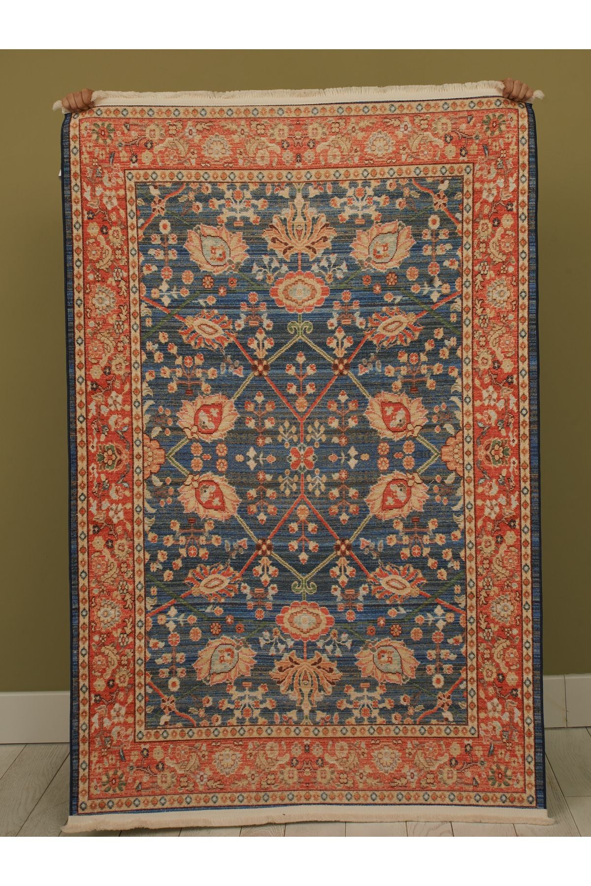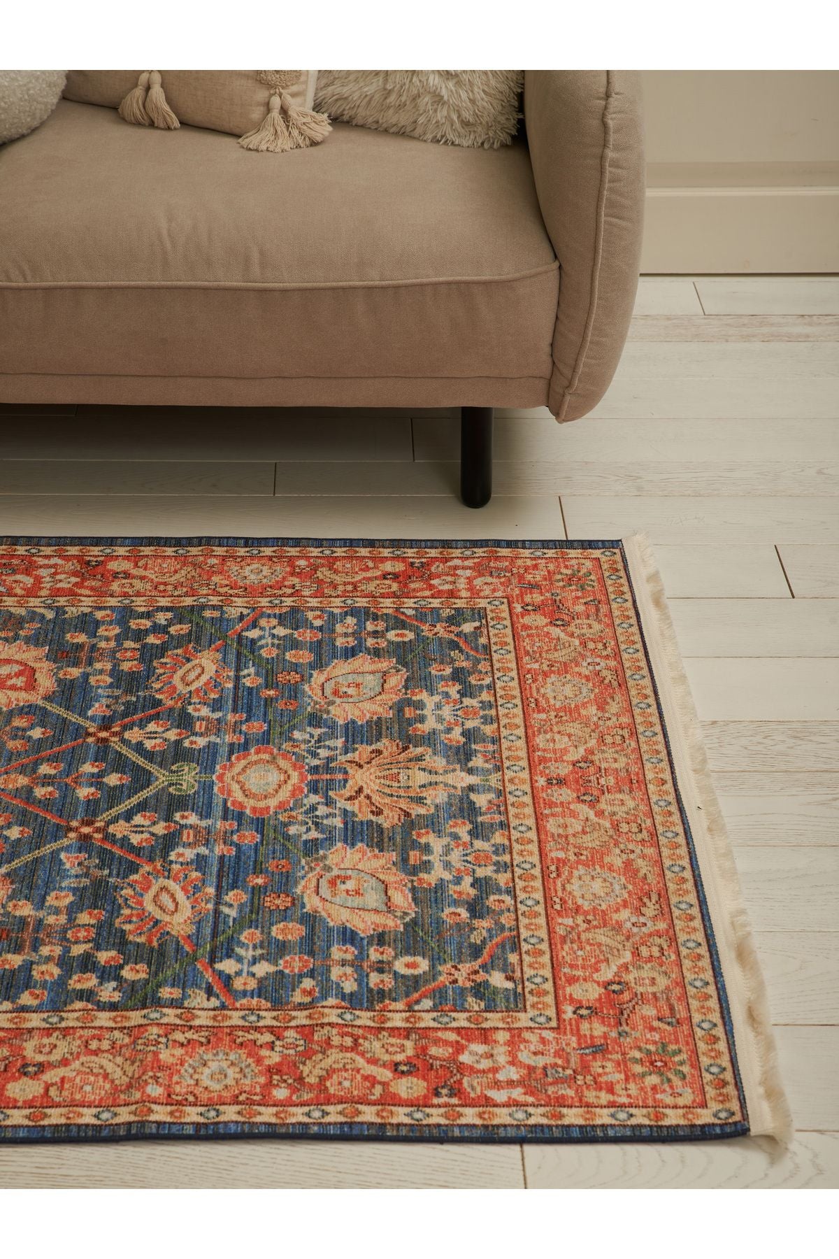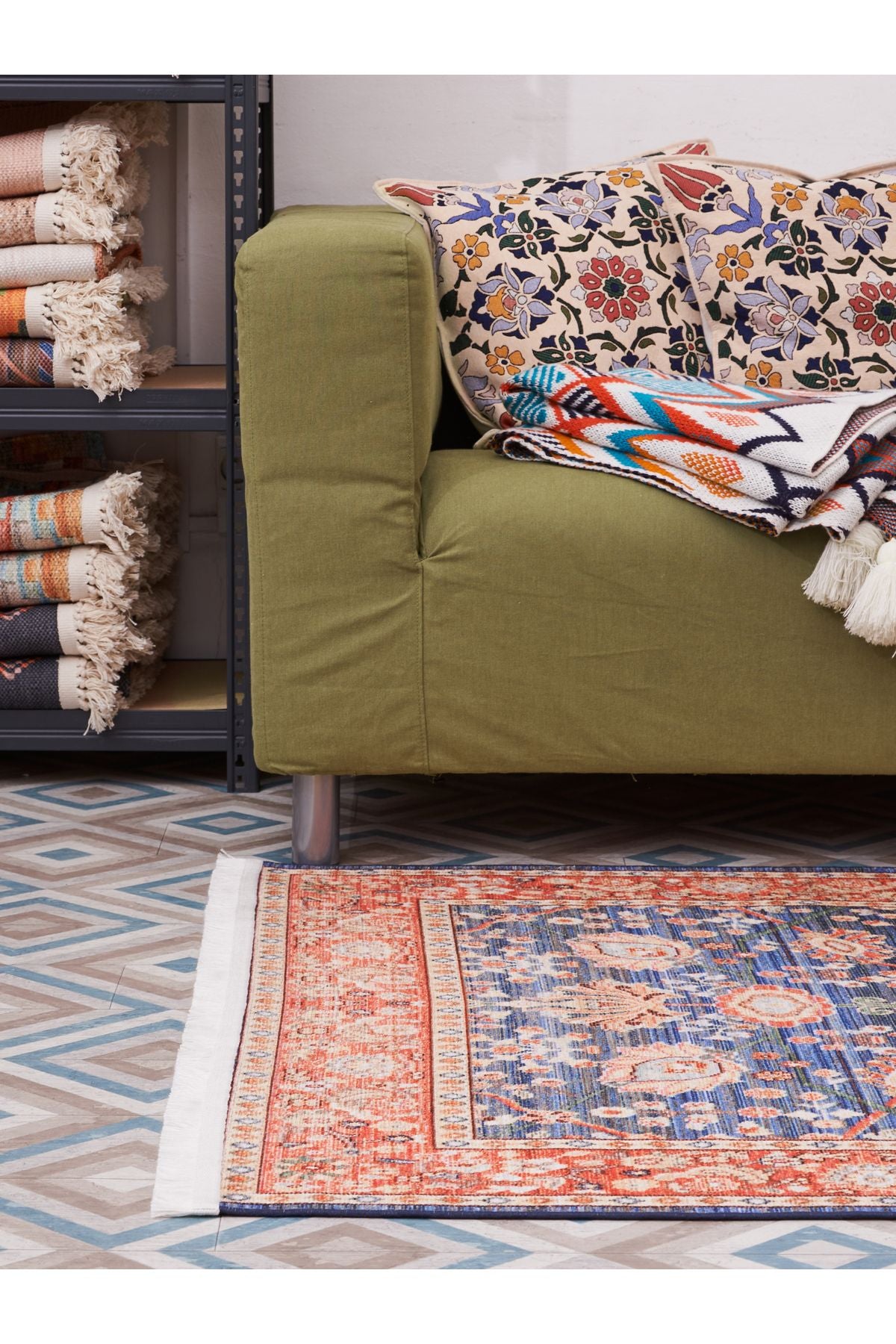 Halı Vagonu 2030 Pastel Lacivert Kiremit Çiçekli Retro Bohem Dokuma Taban Salon Halısı Mutfak Halısı