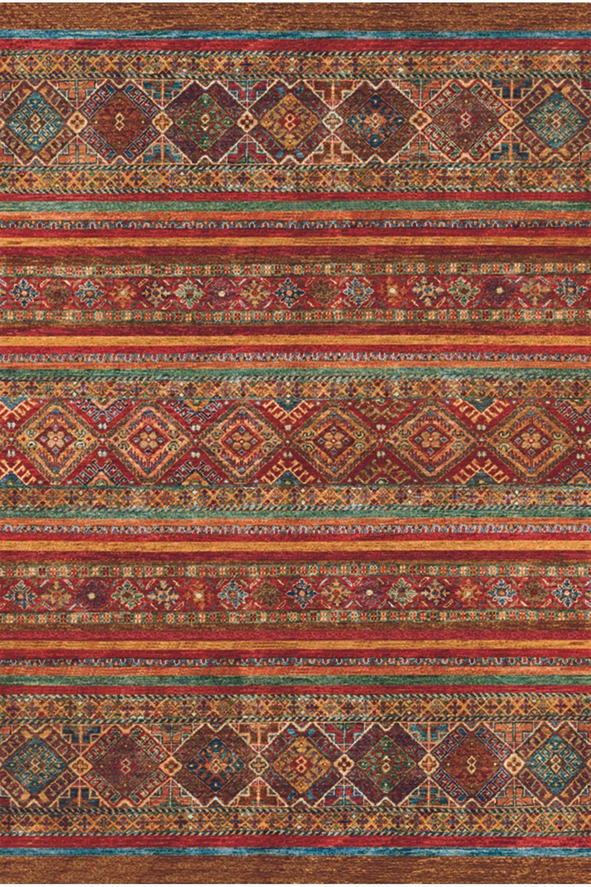 Halı Vagonu 2034 Renkli Klasik Desenli Yıkanabilir Kaymaz Salon Halısı Koridor Ve Mutfak Halısı
