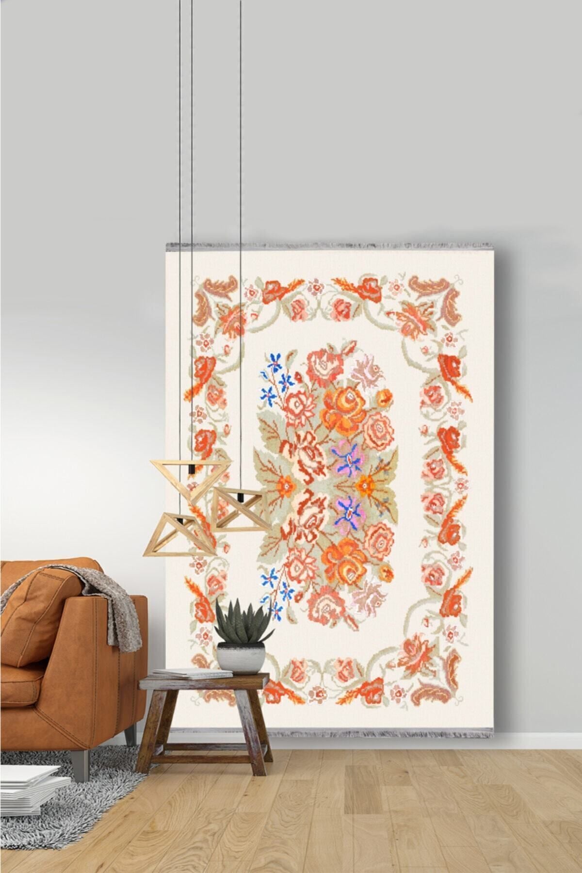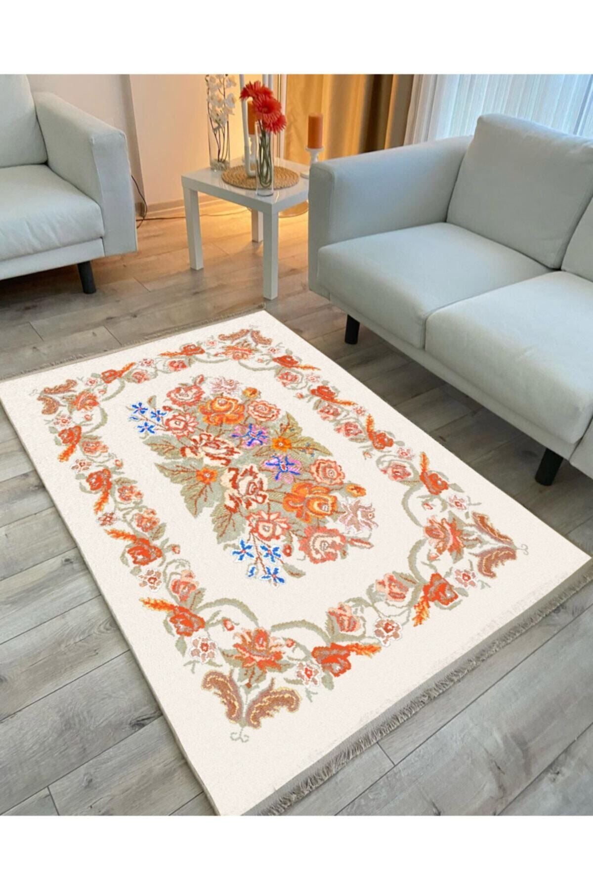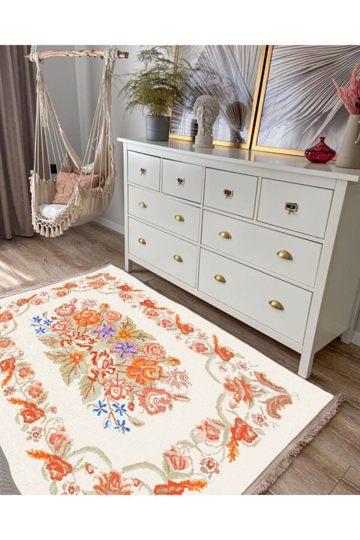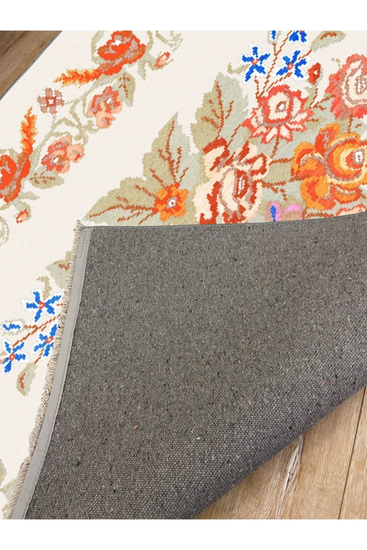 Halı Vagonu 2036 Multy Tonlarında Çiçekli Desen Kaymaz Taban Dekoratif Halı