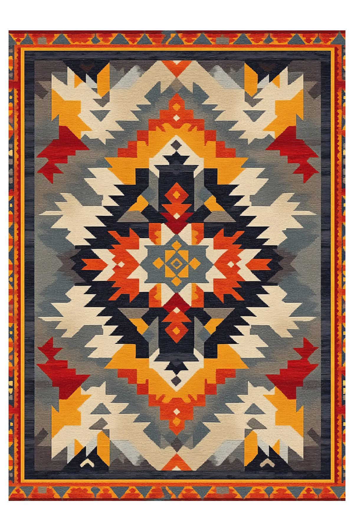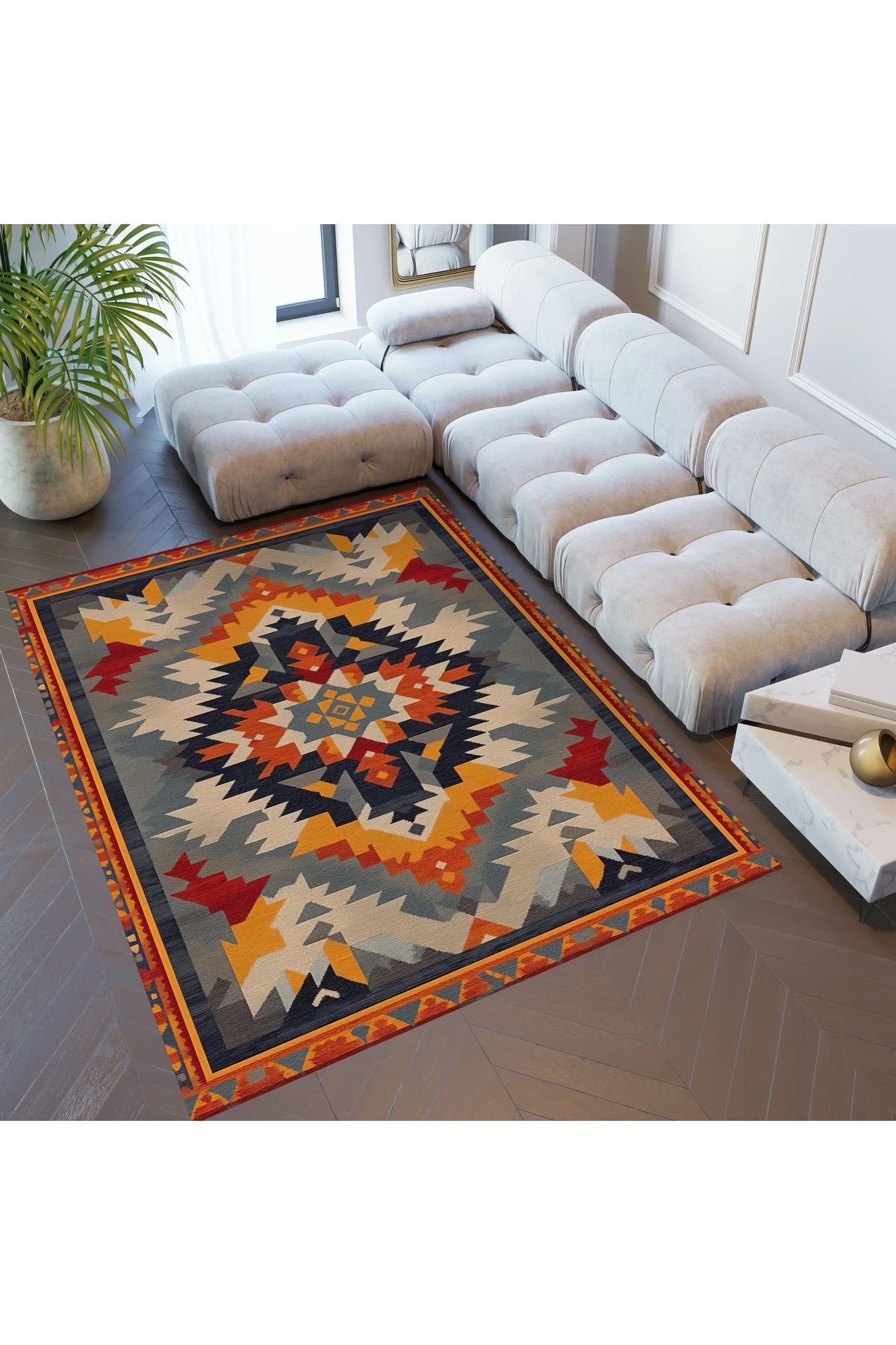 Halı Vagonu 204 Çok Renkli Gri Otantik Etnik Desen Kaymaz ve Dokuma Taban Dekoratif Halı