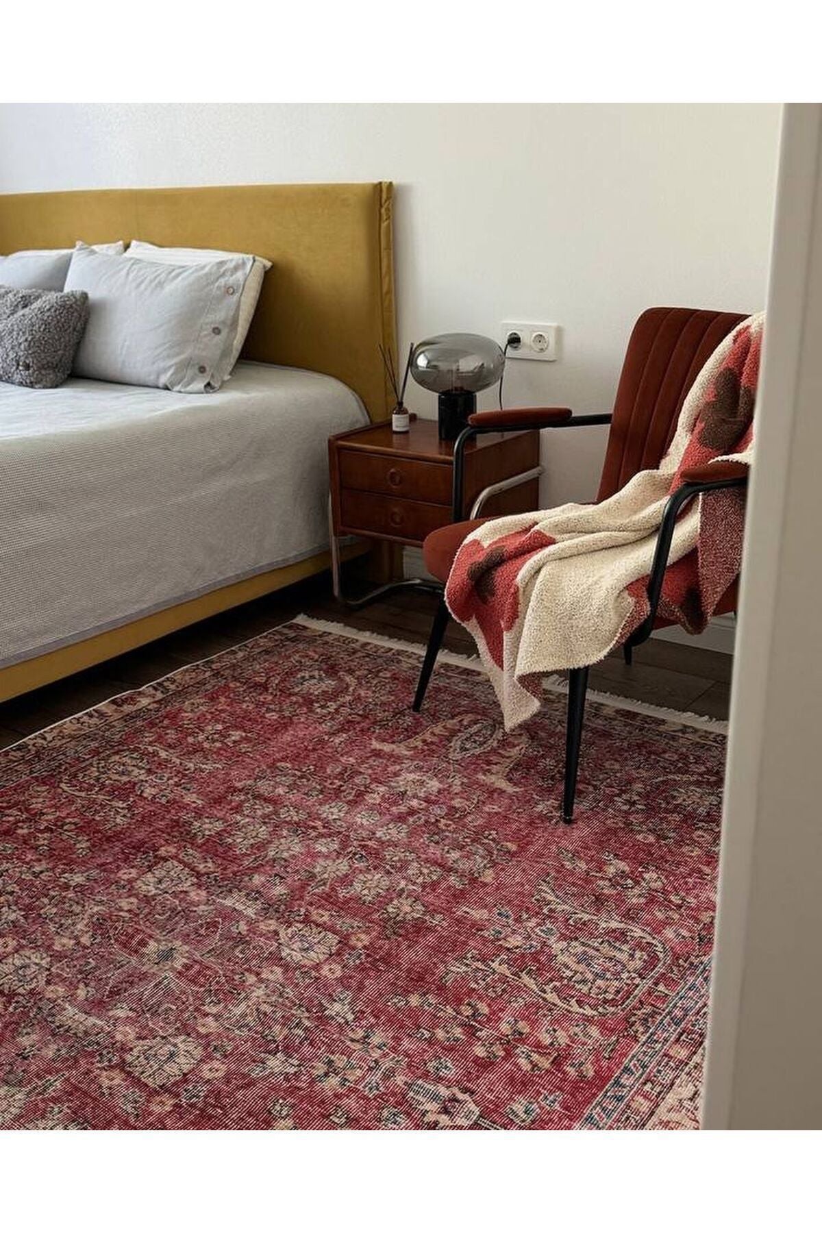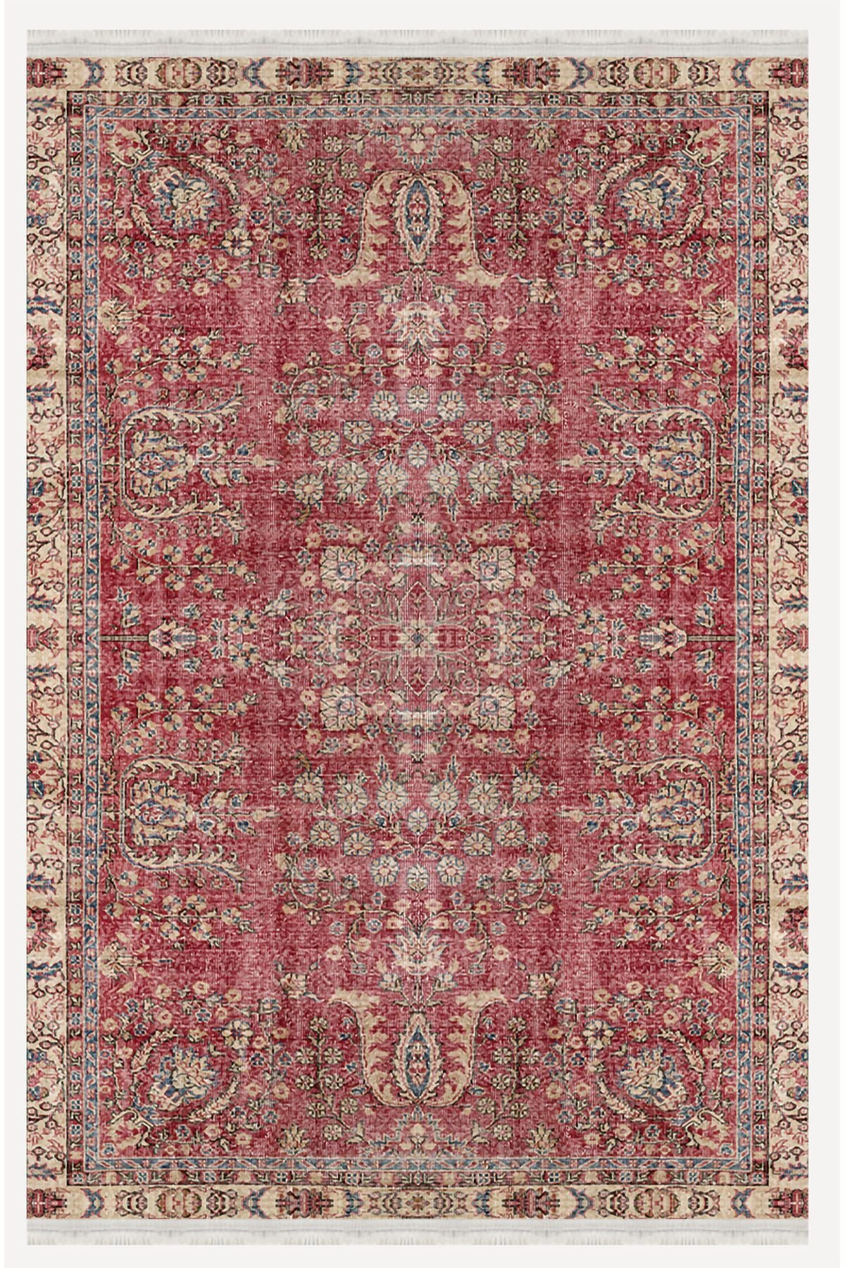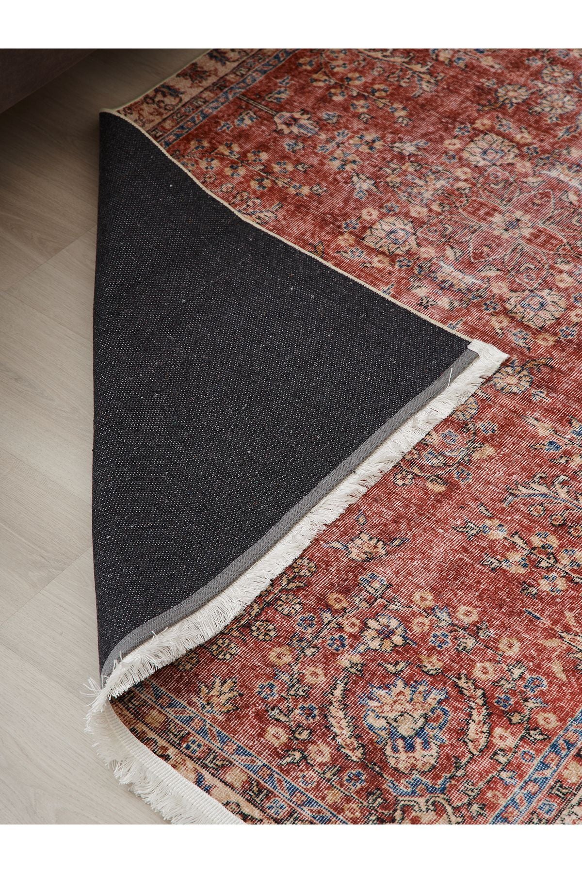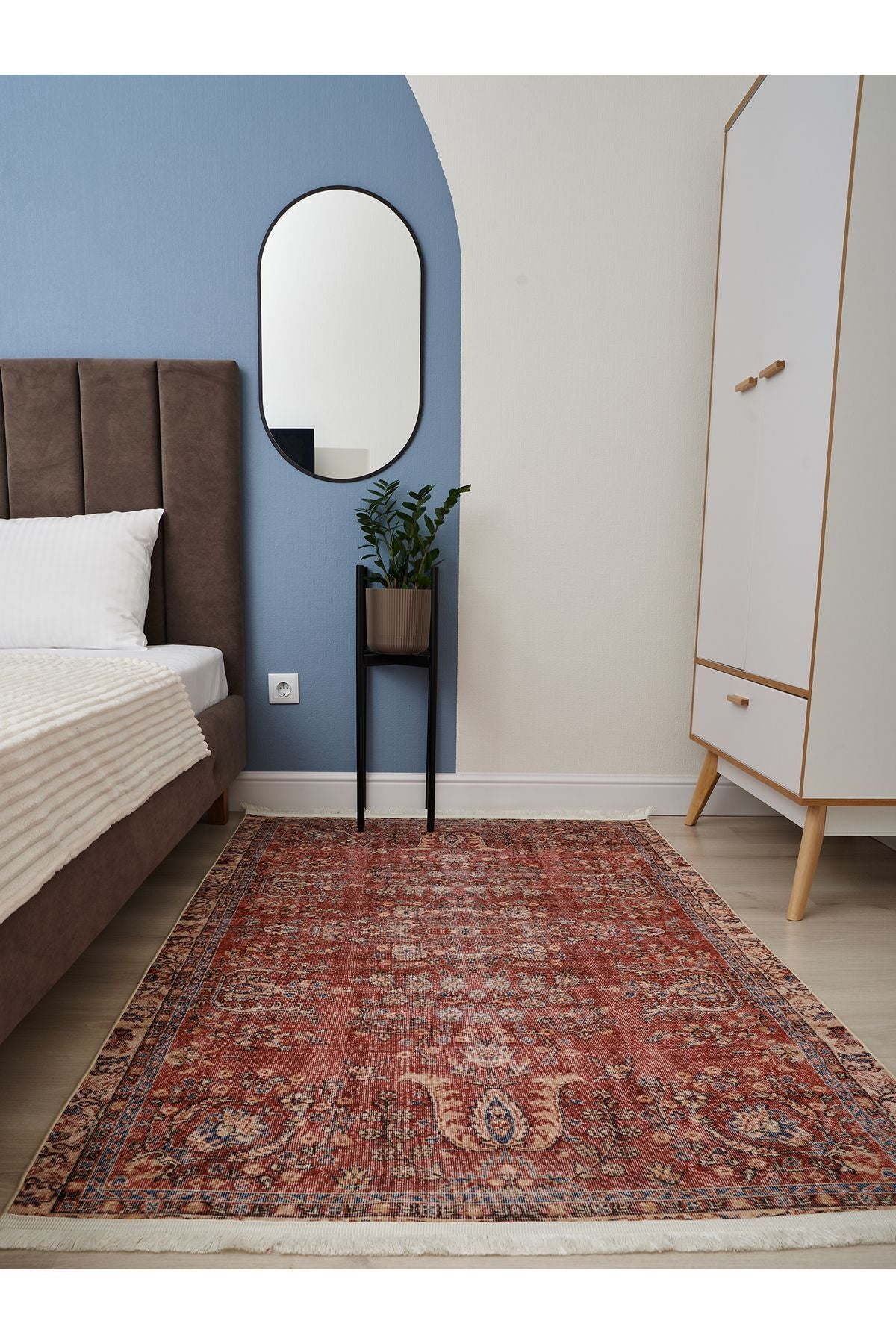 Halı Vagonu 2047 Bordo Tonlarında Etnik Eskitme Pamuk Dokuma Taban Halı