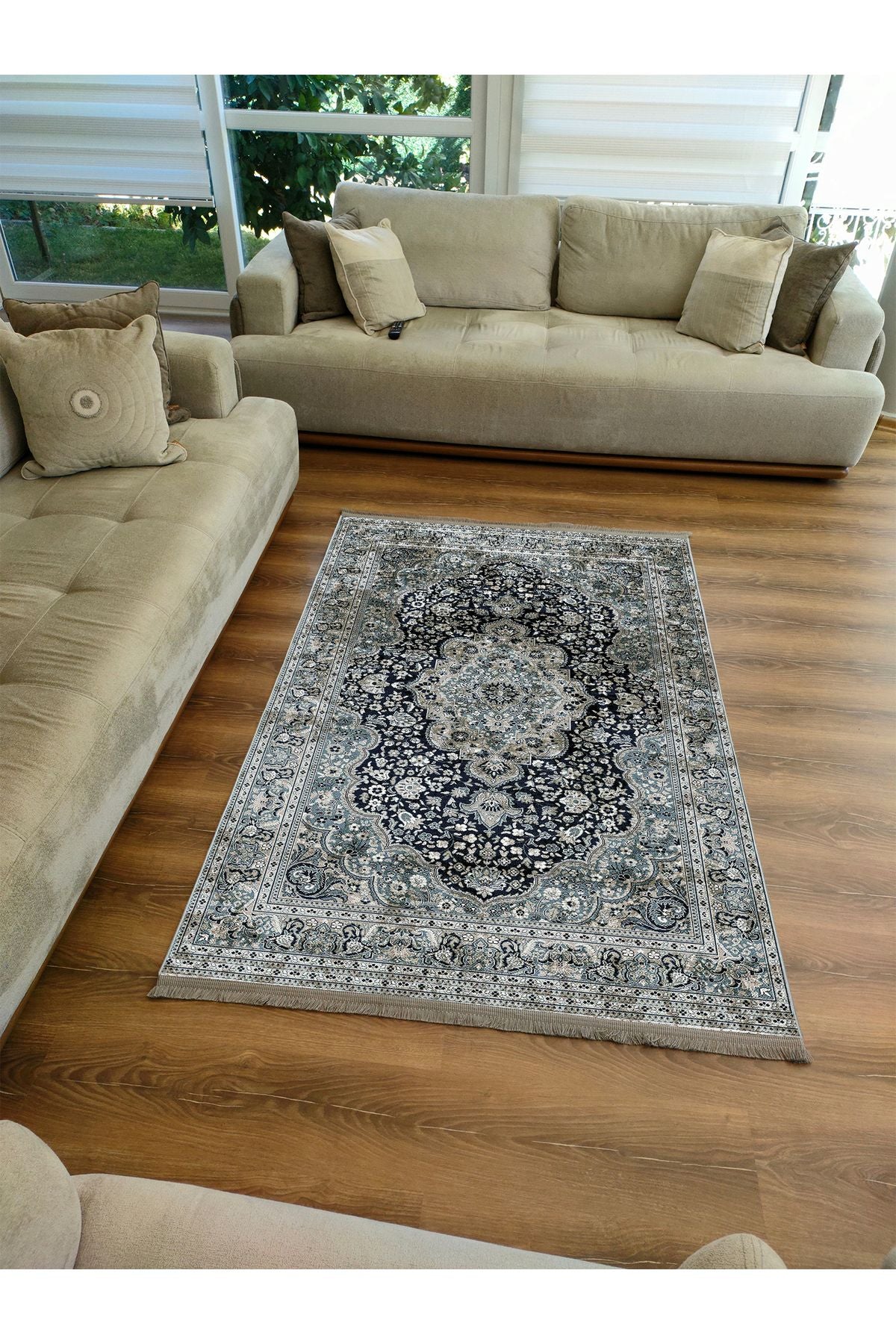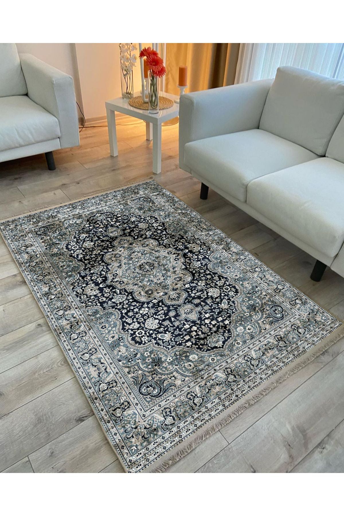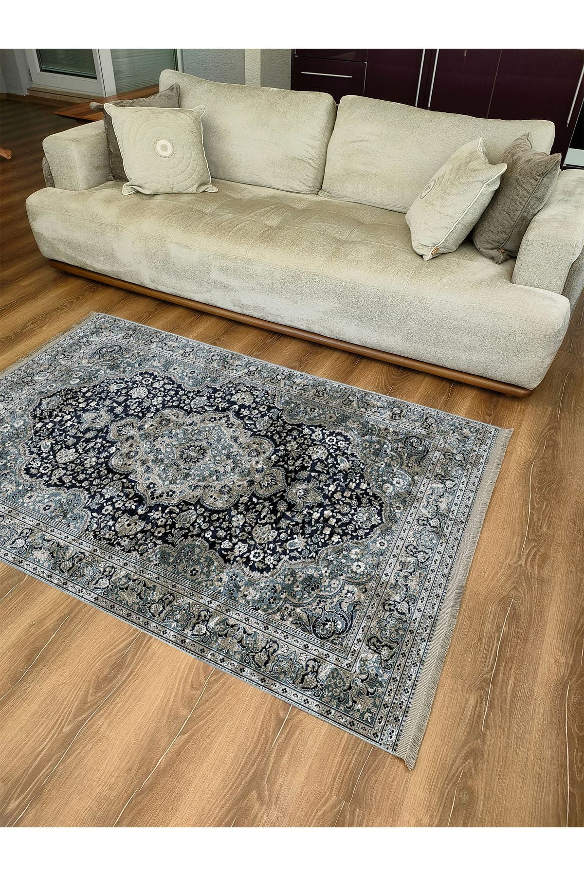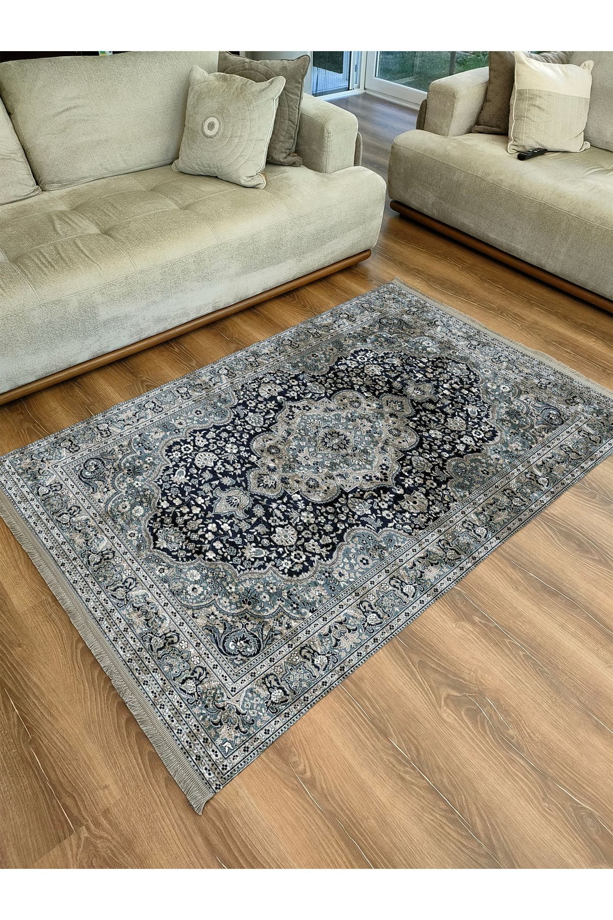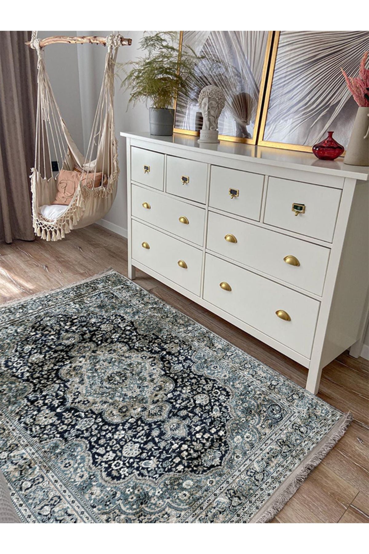 Halı Vagonu 2050 Haki Tonlarında Etnik Eskitme Pamuk Dokuma Taban Halı