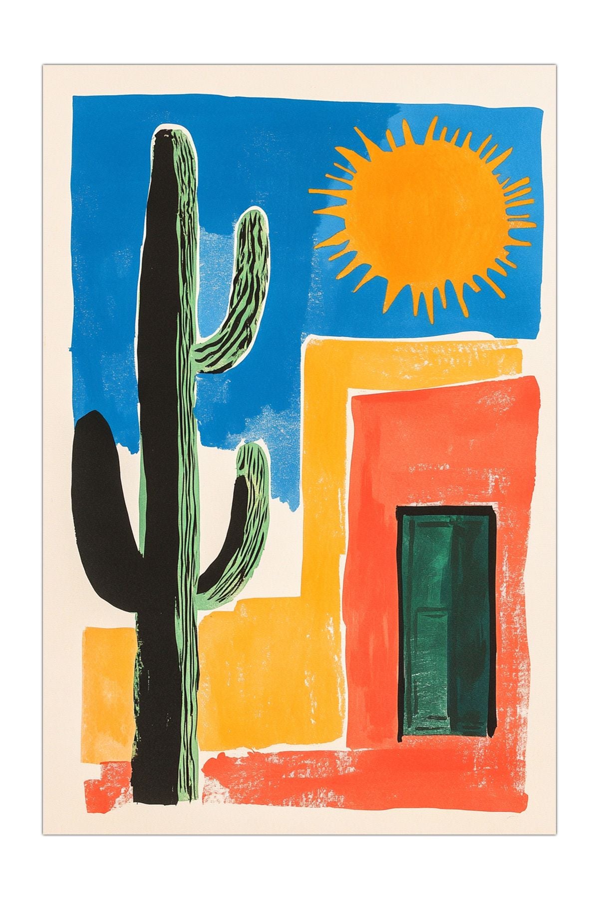 Halı Vagonu 207 Kaktüs Figürlü Art Modern Kaymaz ve Dokuma Taban Dekoratif Halı