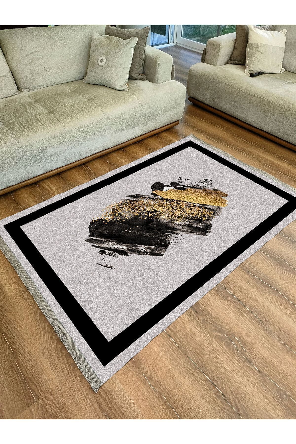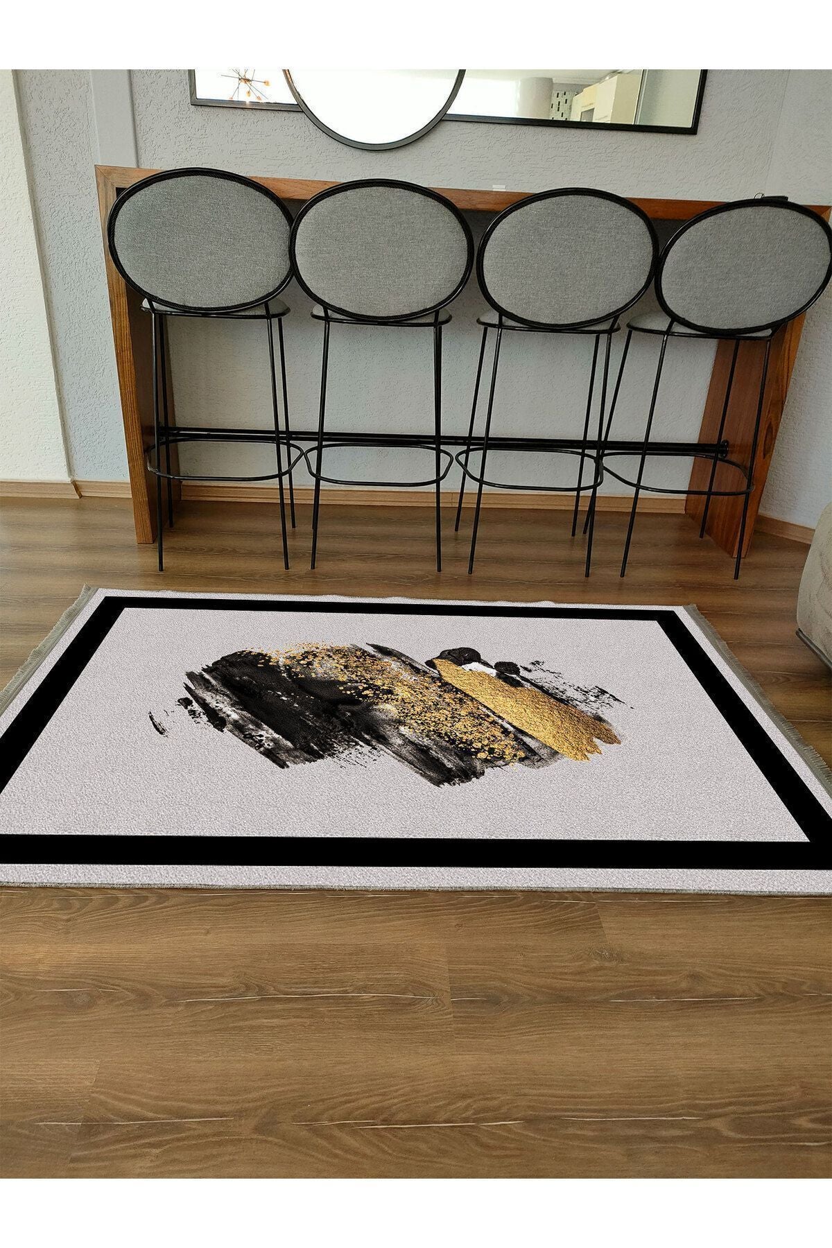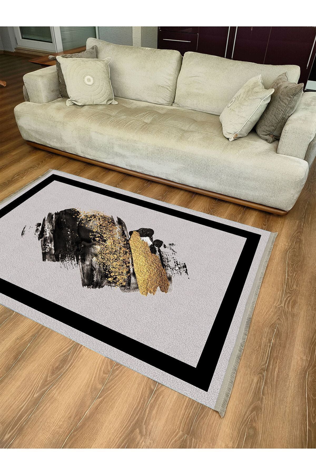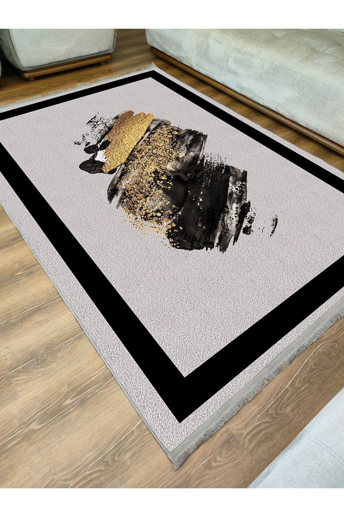 Halı Vagonu 2076 Gri Ve Siyah Tonlarında Fırça Darbeleri Desen Kaymaz Taban Dekoratif Halı