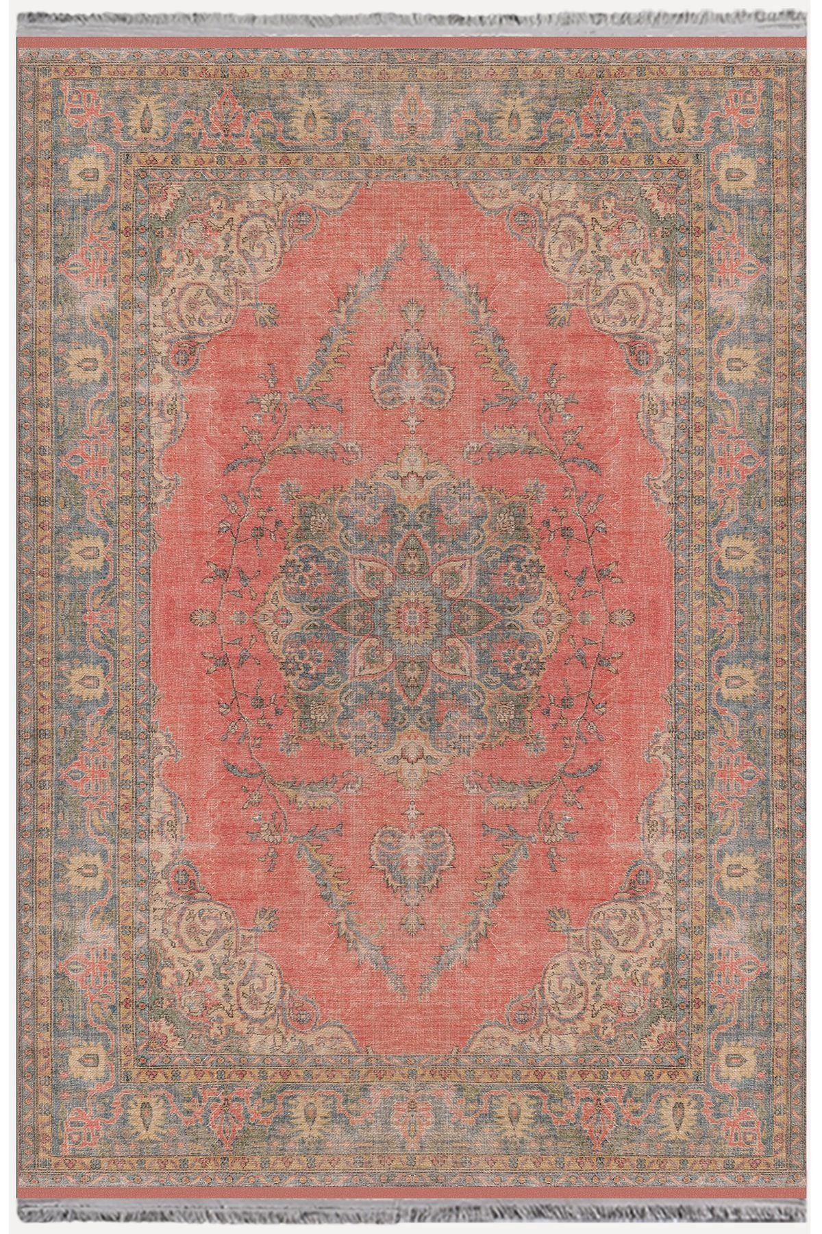 Halı Vagonu 2082 Kahve Tonlarında Eskitme Otanti Kslasik Desen Kaymaz Taban Decoratif Halı