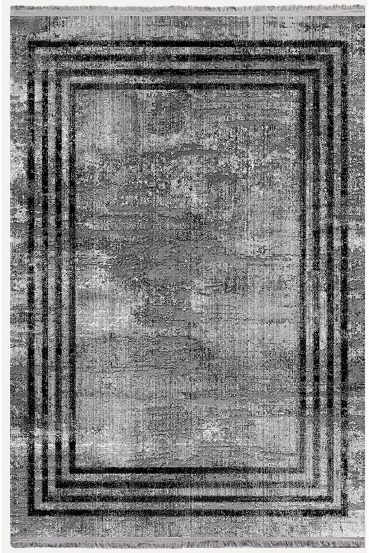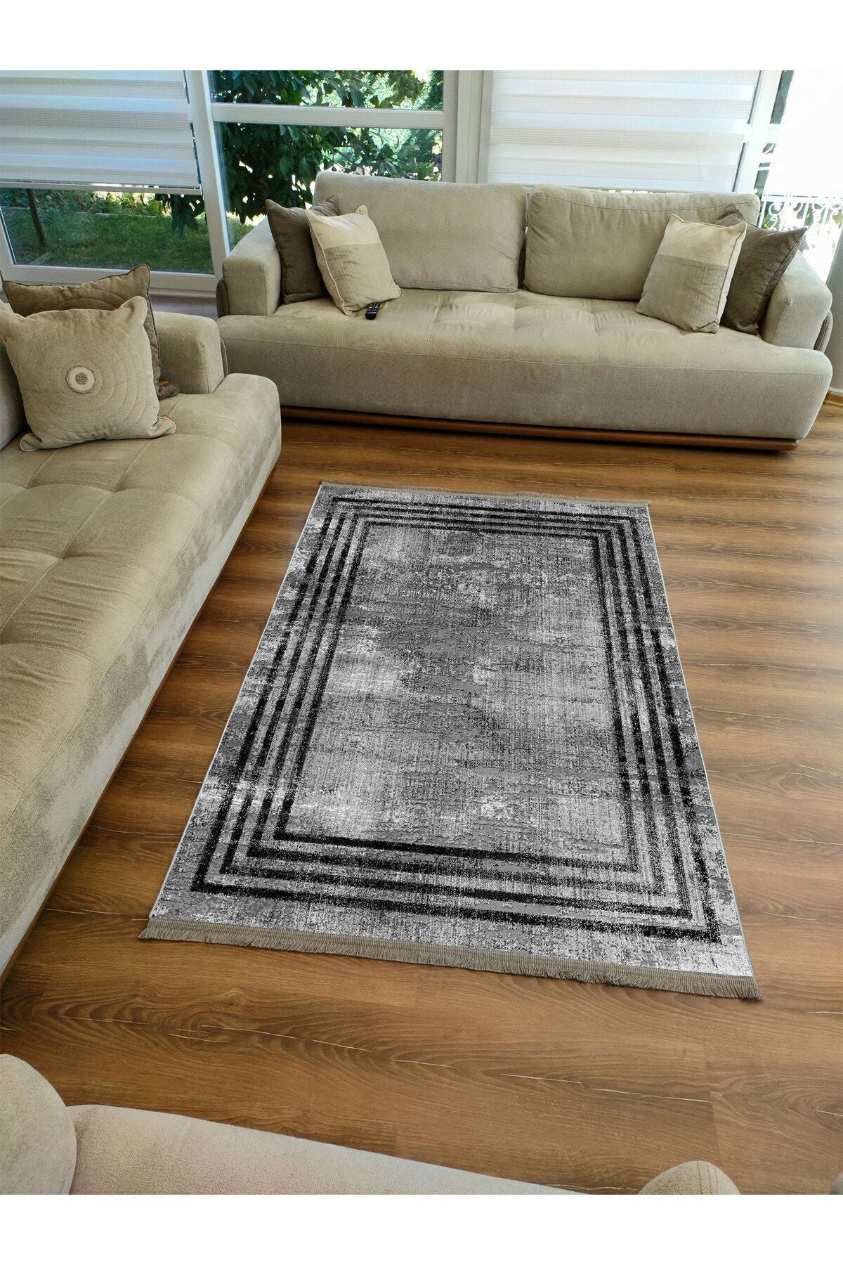 Halı Vagonu 2086 Füme Tonunda Dekoratif Halı Salon Halısı Saçaklı Yıkanabilen Halı