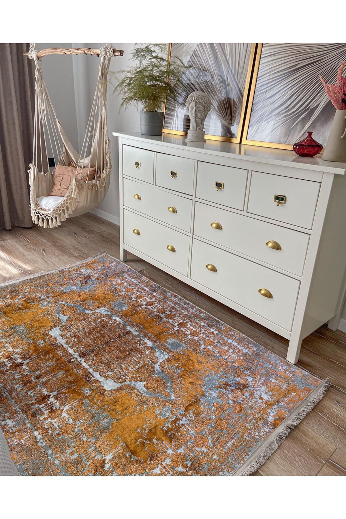 Halı Vagonu 2185 Etnik Desenli Yıkanabilir Kaymaz Tabanlı Salon Halısı, Koridor Ve Mutfak Halısı