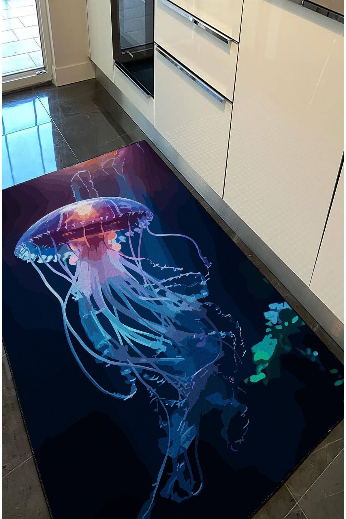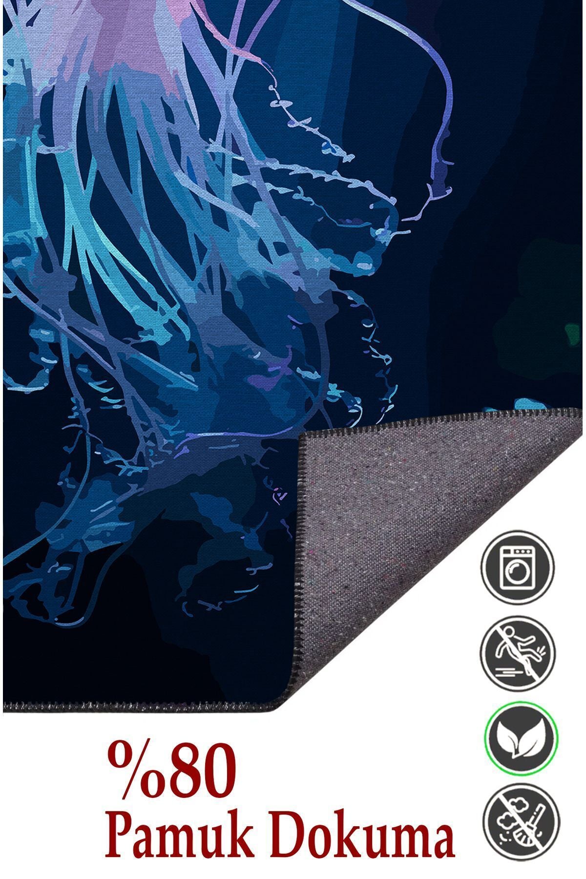 Halı Vagonu 43 Modern Stil Lacivert Deniz Anası Salon Halısı Yıkanabilen Dekoratif Halı