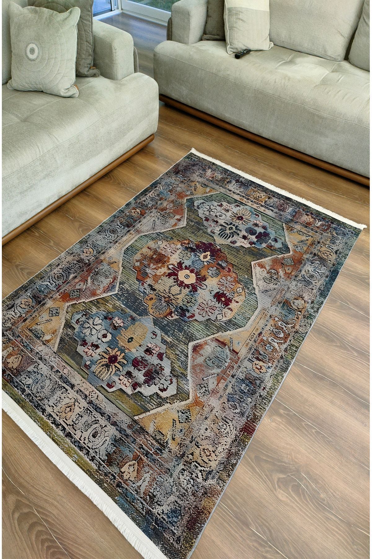 Halı Vagonu 63 Renkli Klasik Desenli Yıkanabilir Kaymaz Salon Halısı, Koridor Ve Mutfak Halısı