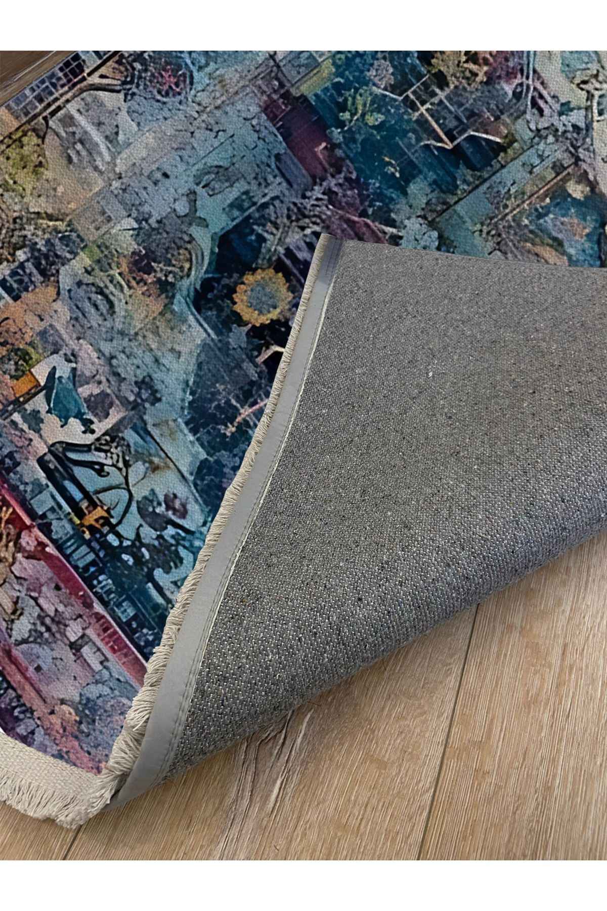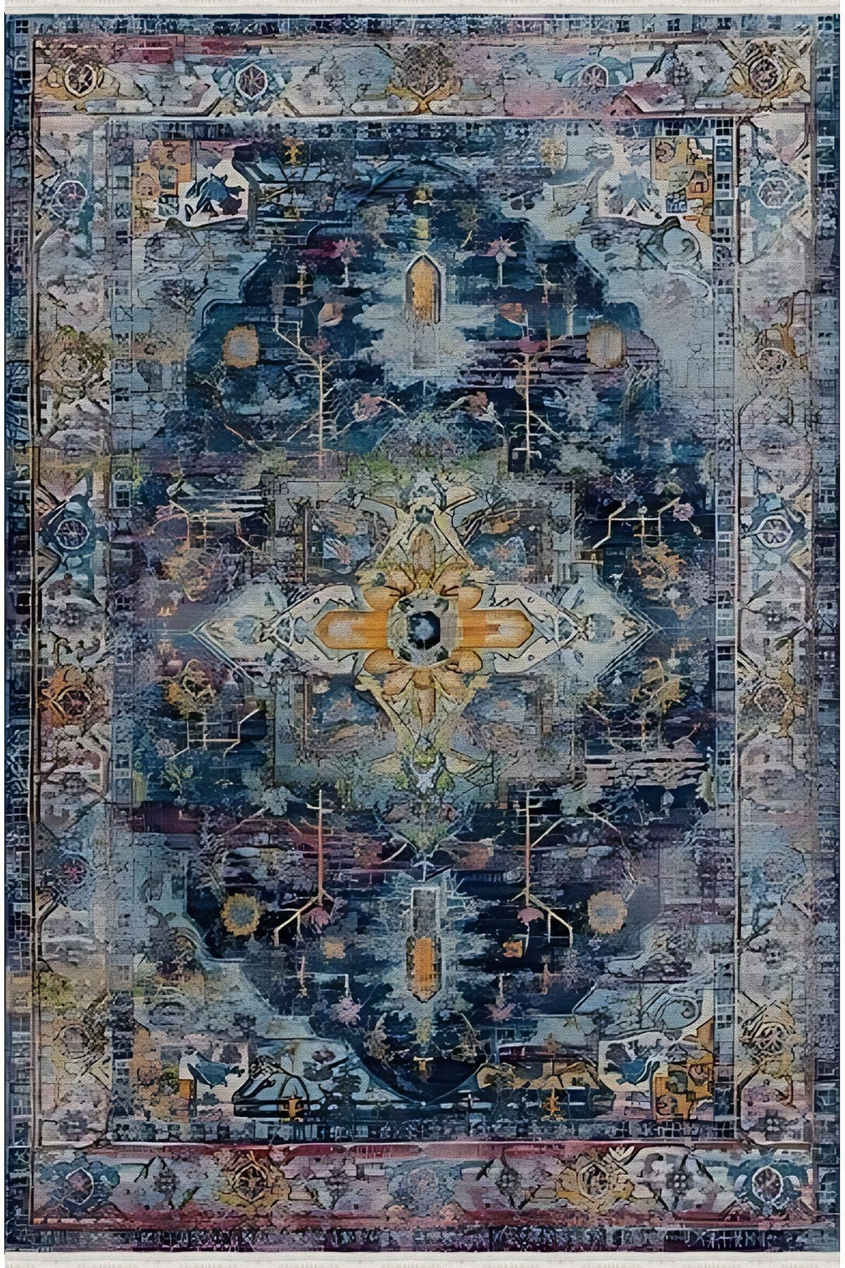 Halı Vagonu 65 Modern Stil Lacivert Tonda Salon Halısı Peluş Halı Saçaklı Yıkanabilen Halı