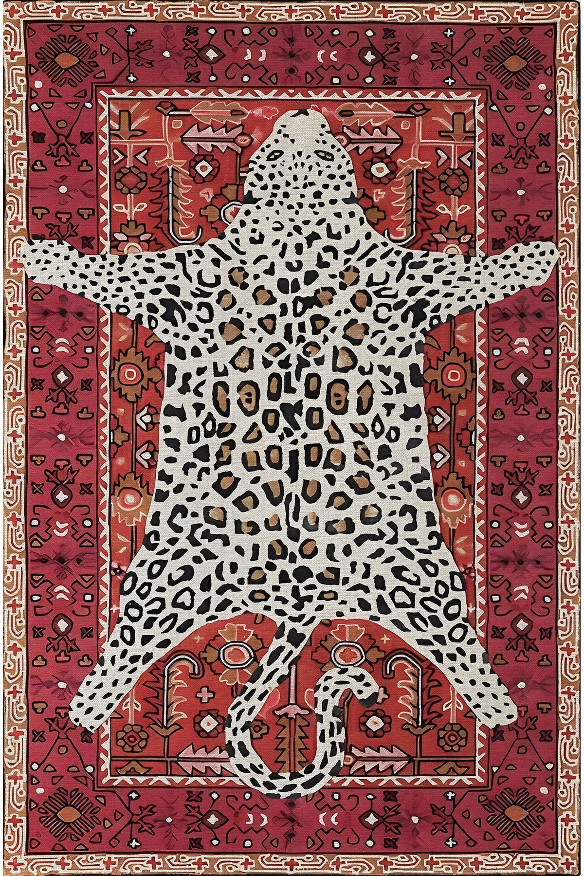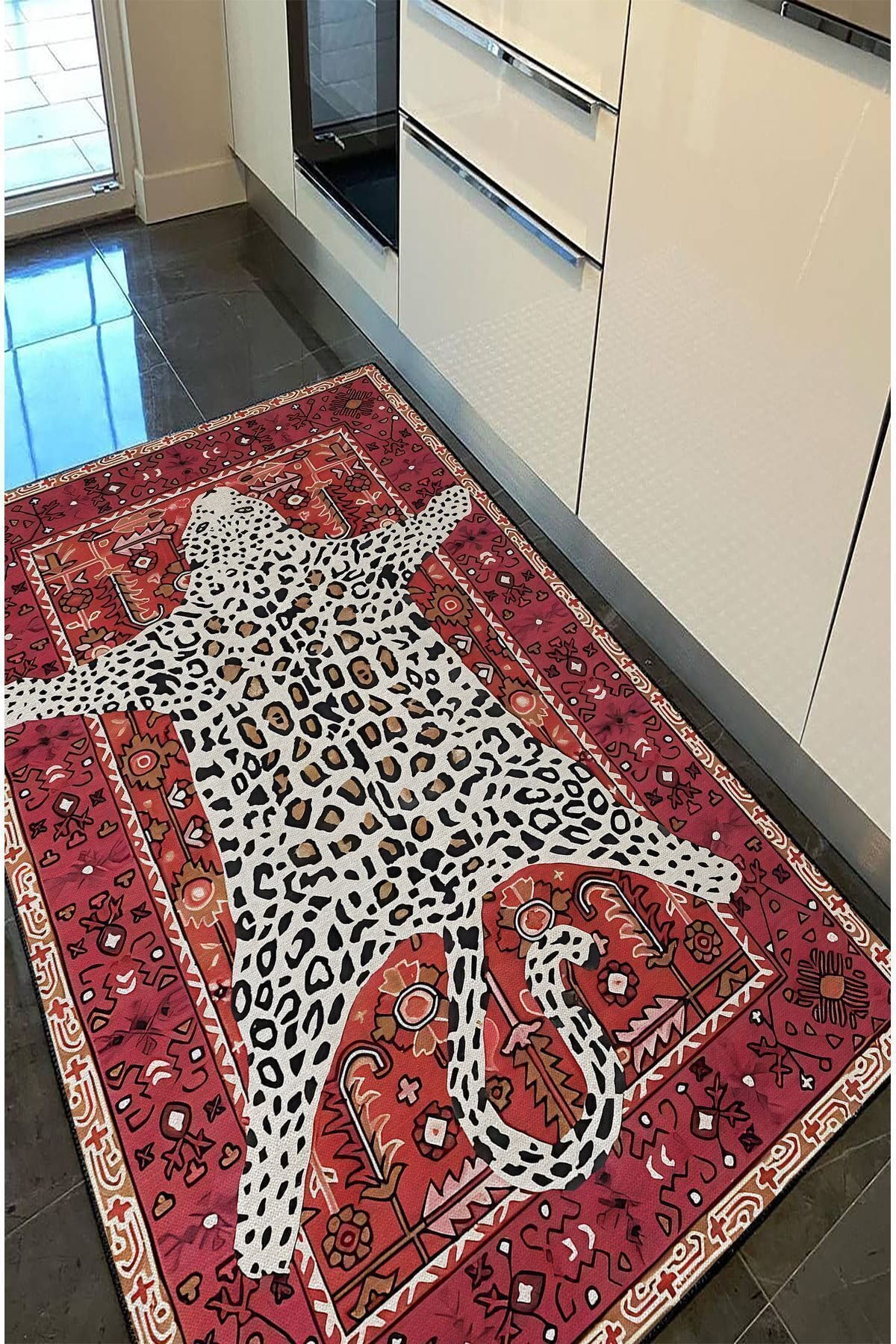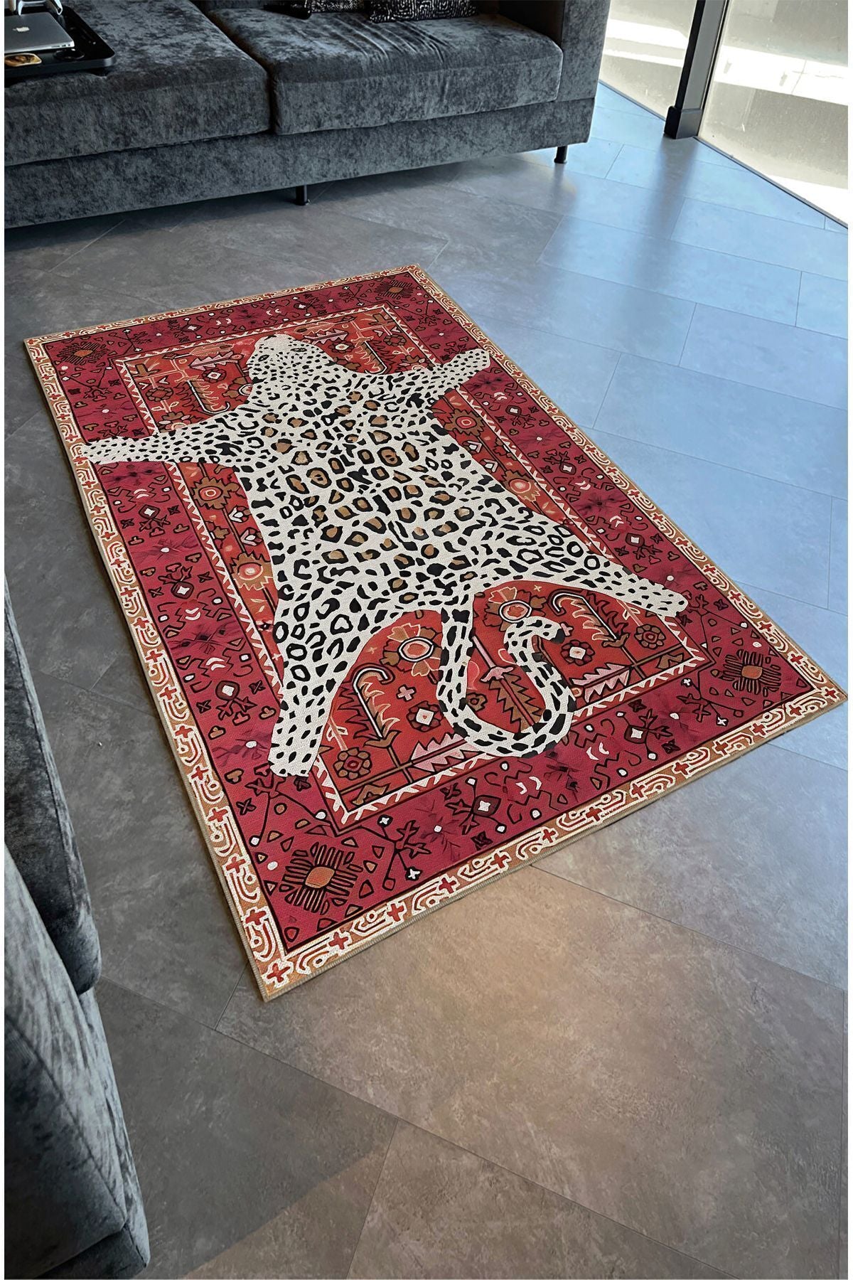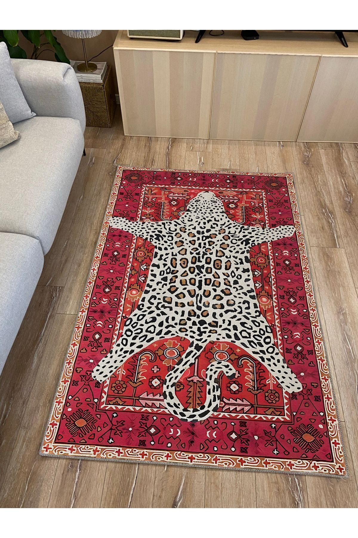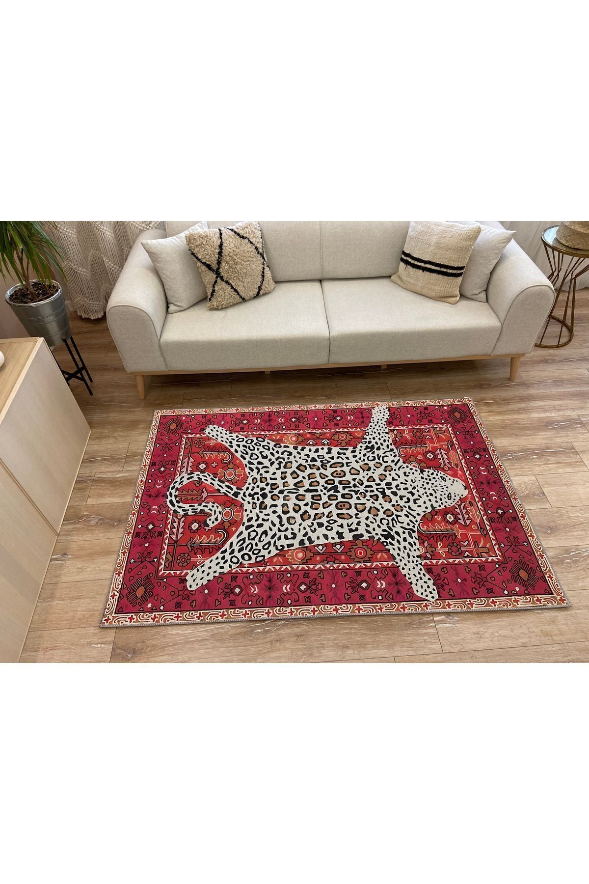 Halı Vagonu 70 Borda Tonlarında Kaplan Figürlü Salon Halısı Saçaklı Yıkanabilen Dekoratif Halı