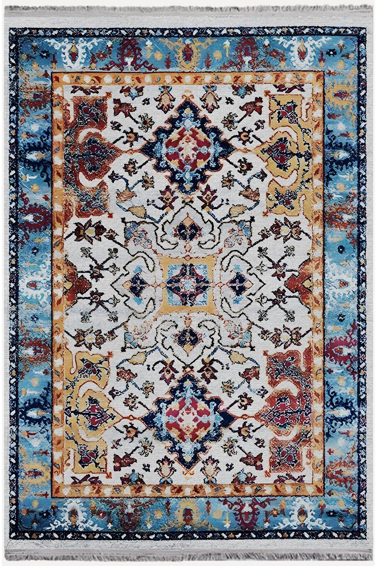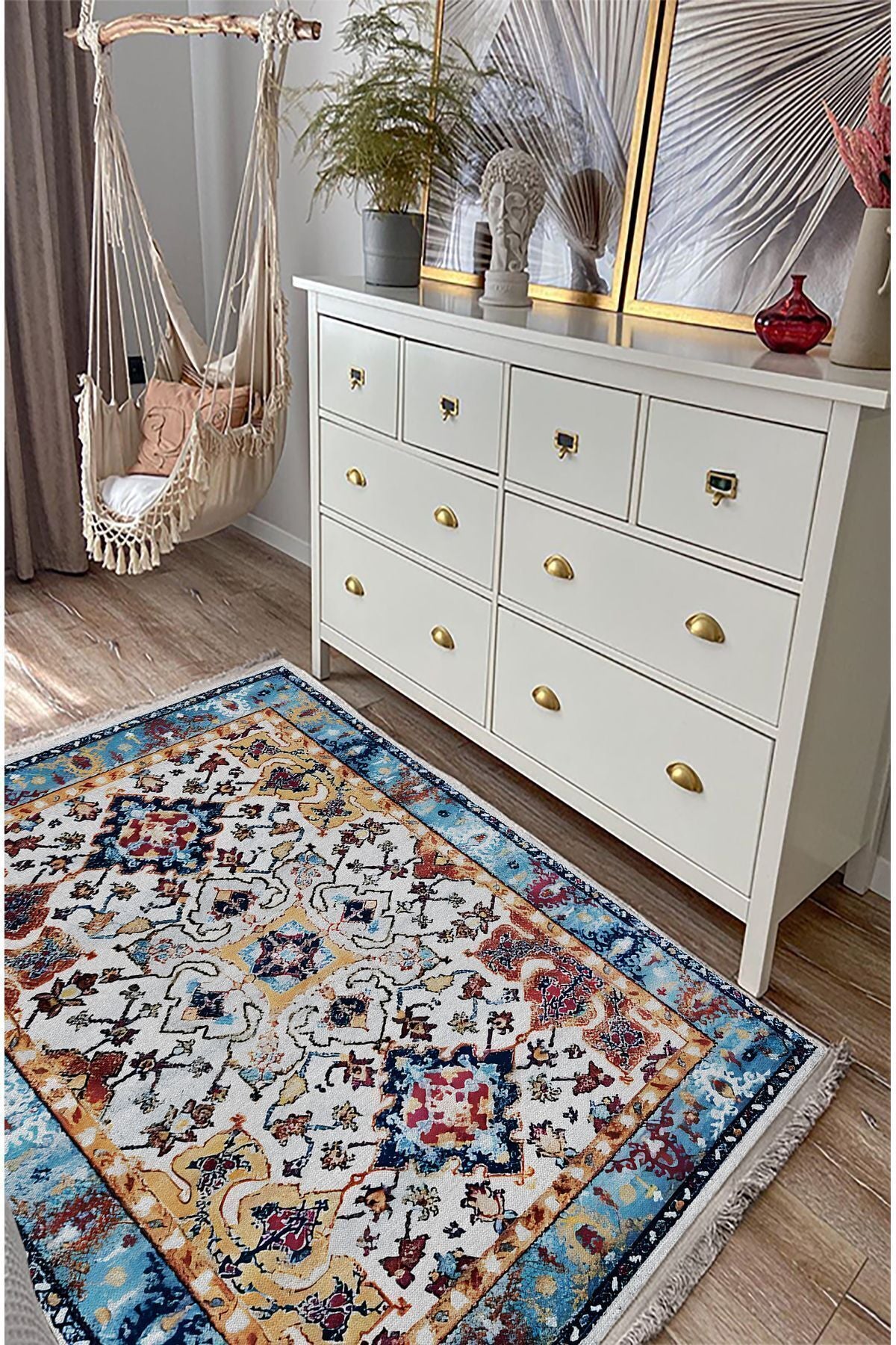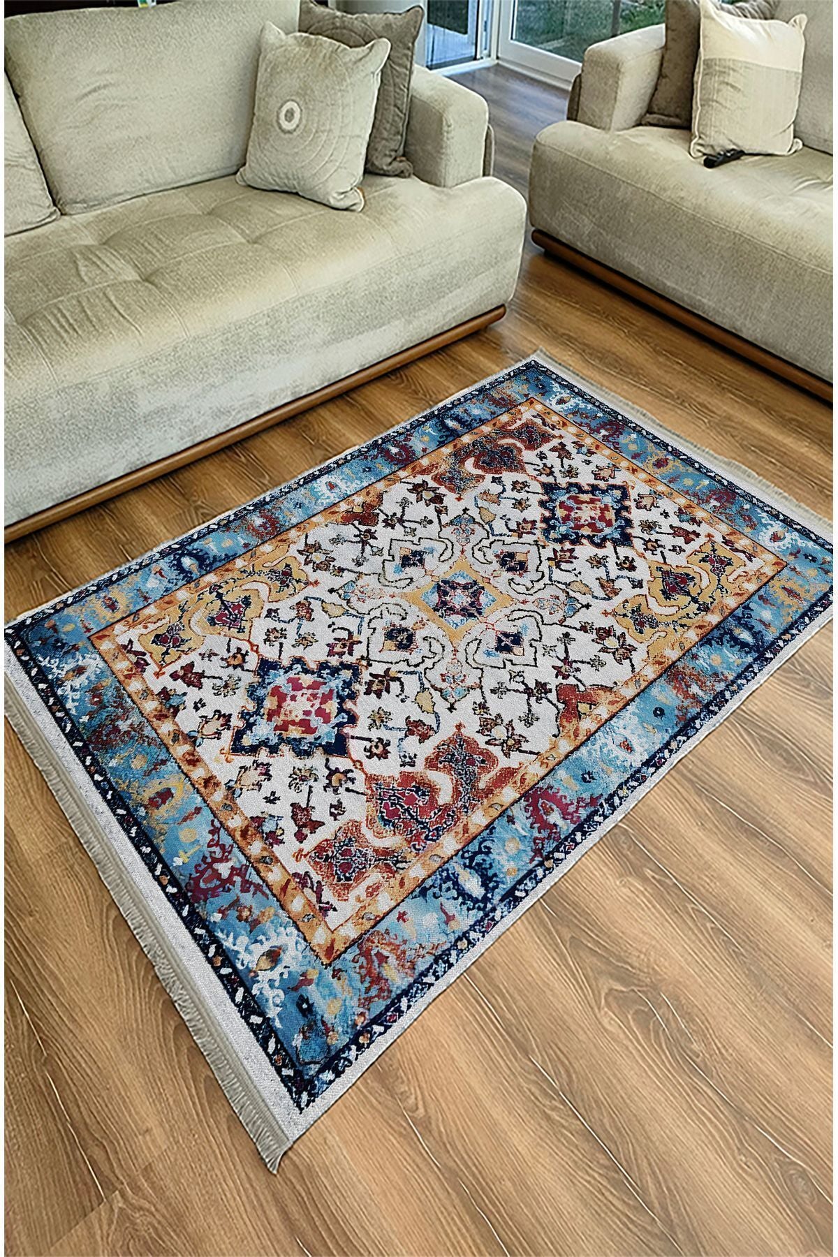 Halı Vagonu Halı 100 Mavi Tonlarında Klasık Dekoratif Halı Salon Halısı Saçaklı Yıkanabilen Halı