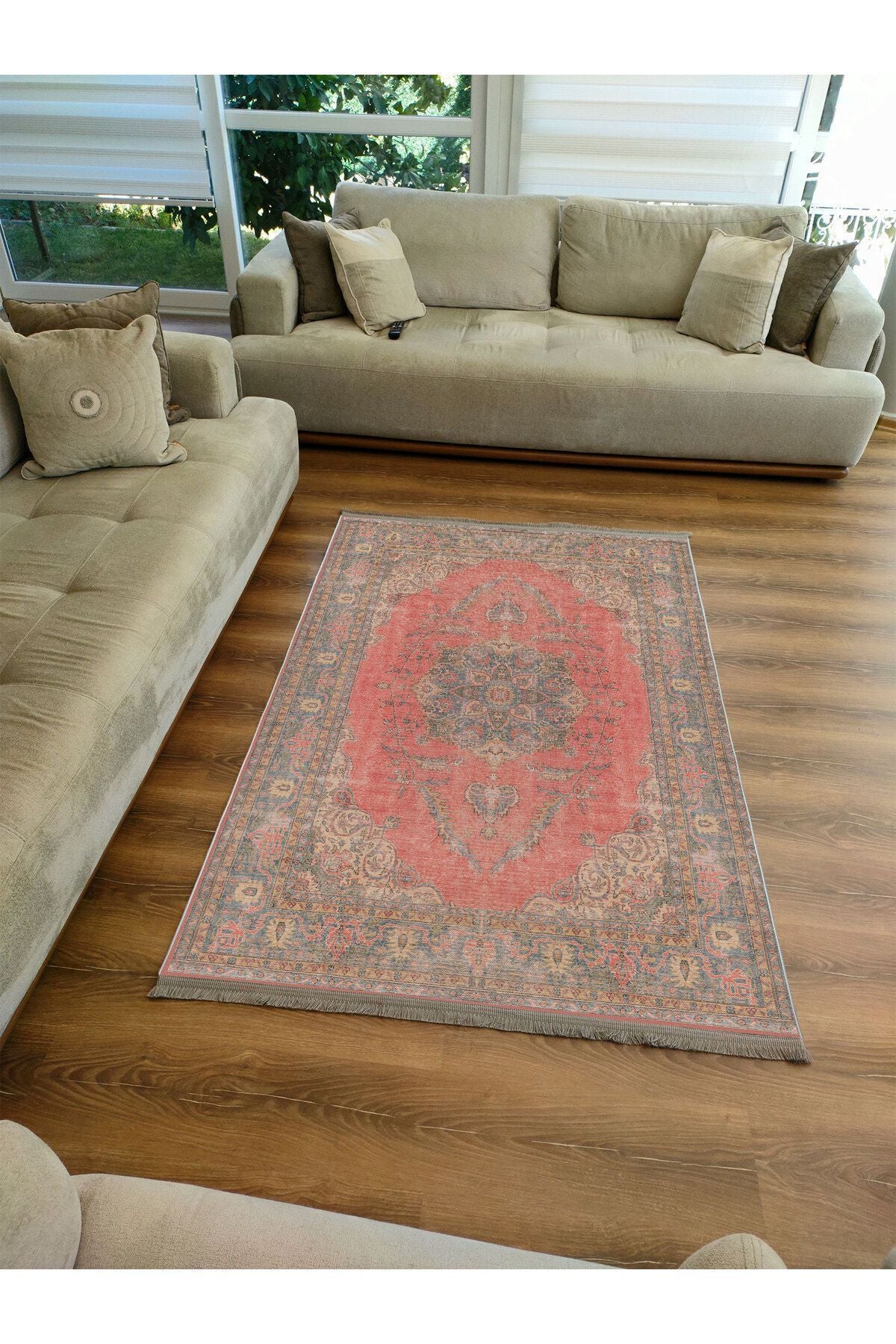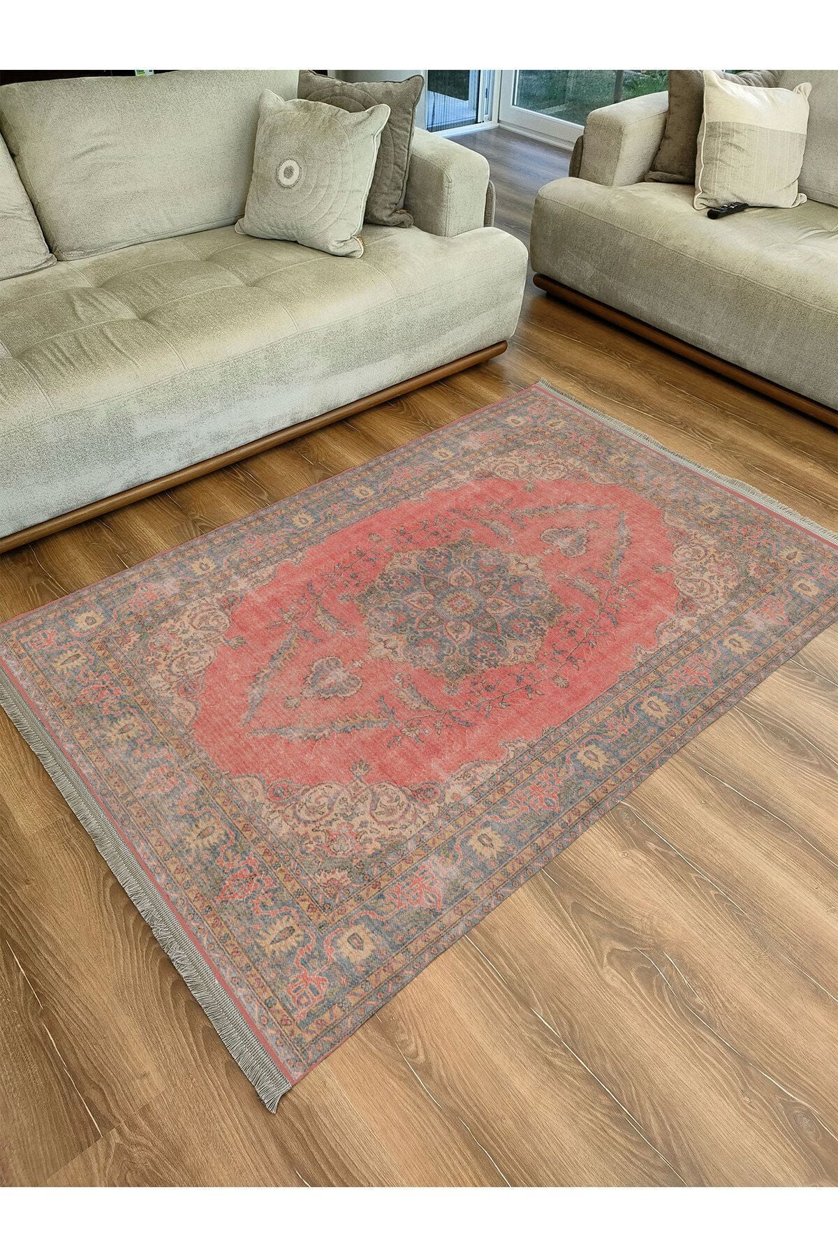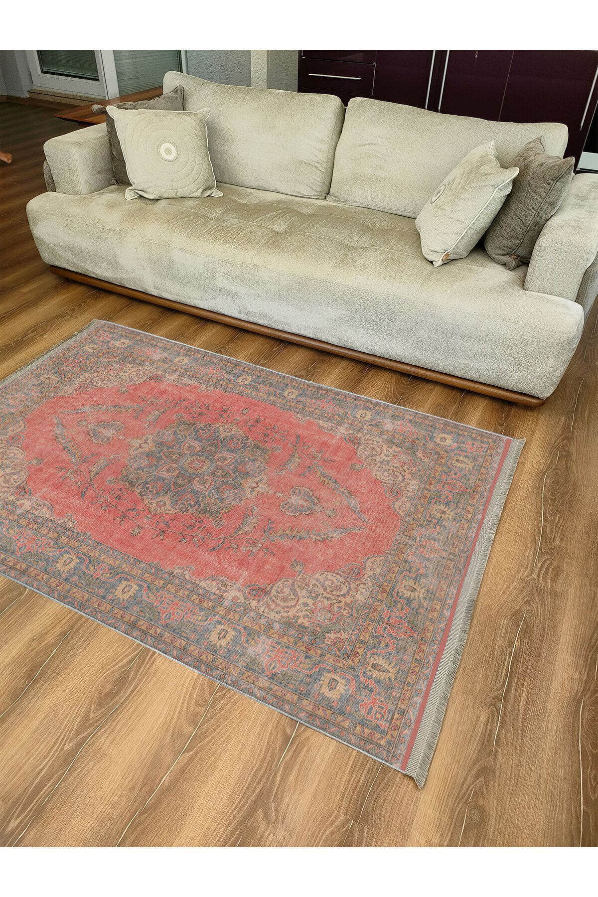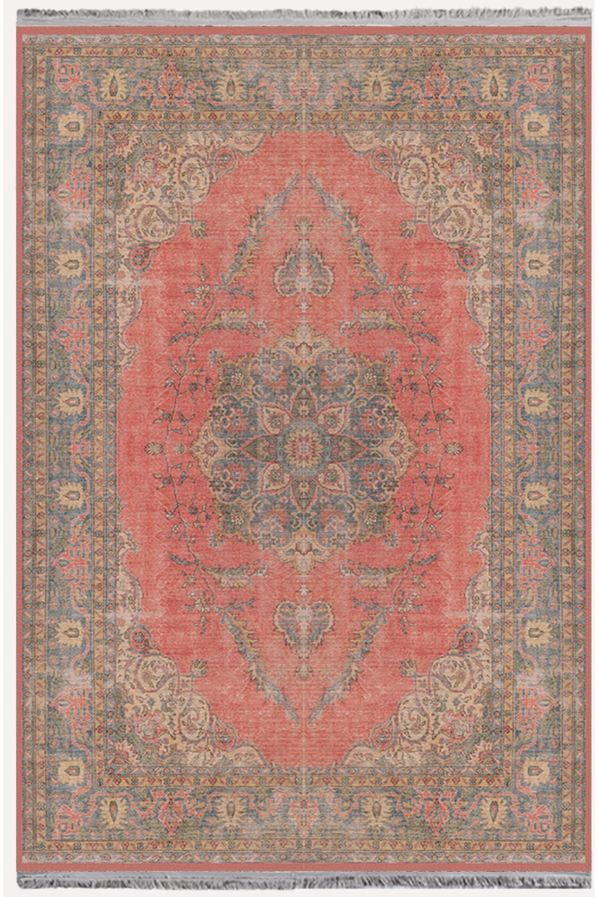 Halı Vagonu Halı 2082 Kahve Tonunda Dekoratif Halı Salon Halısı I Saçaklı Yıkanabilen Halı
