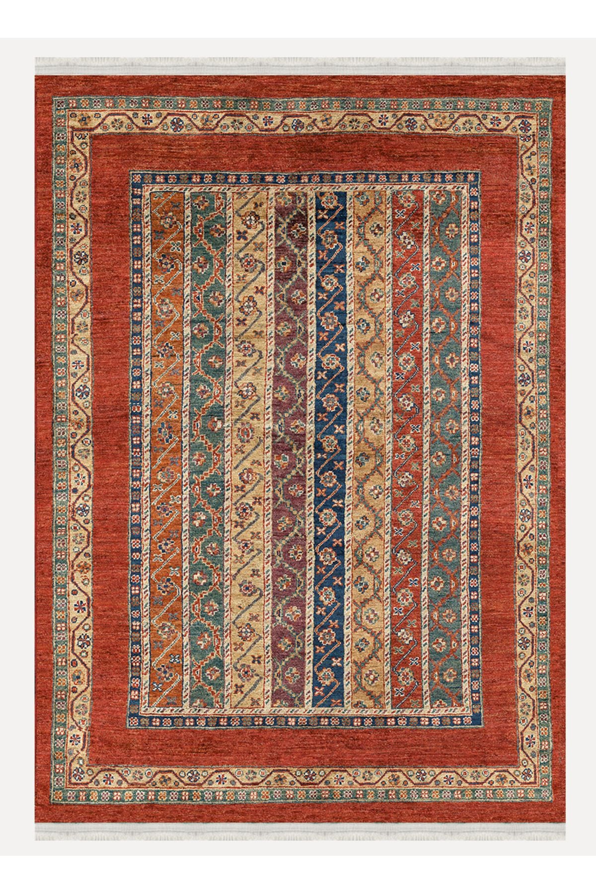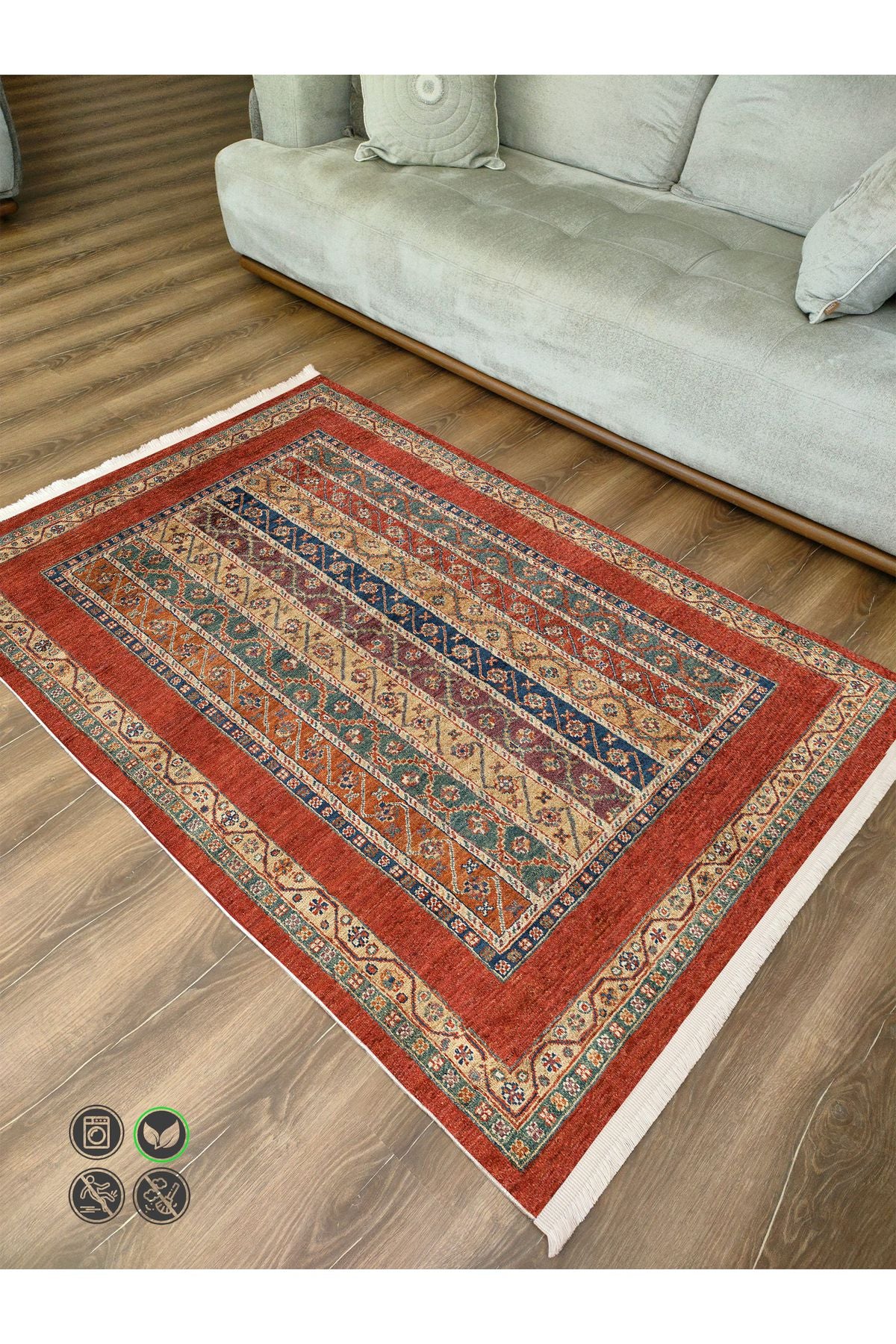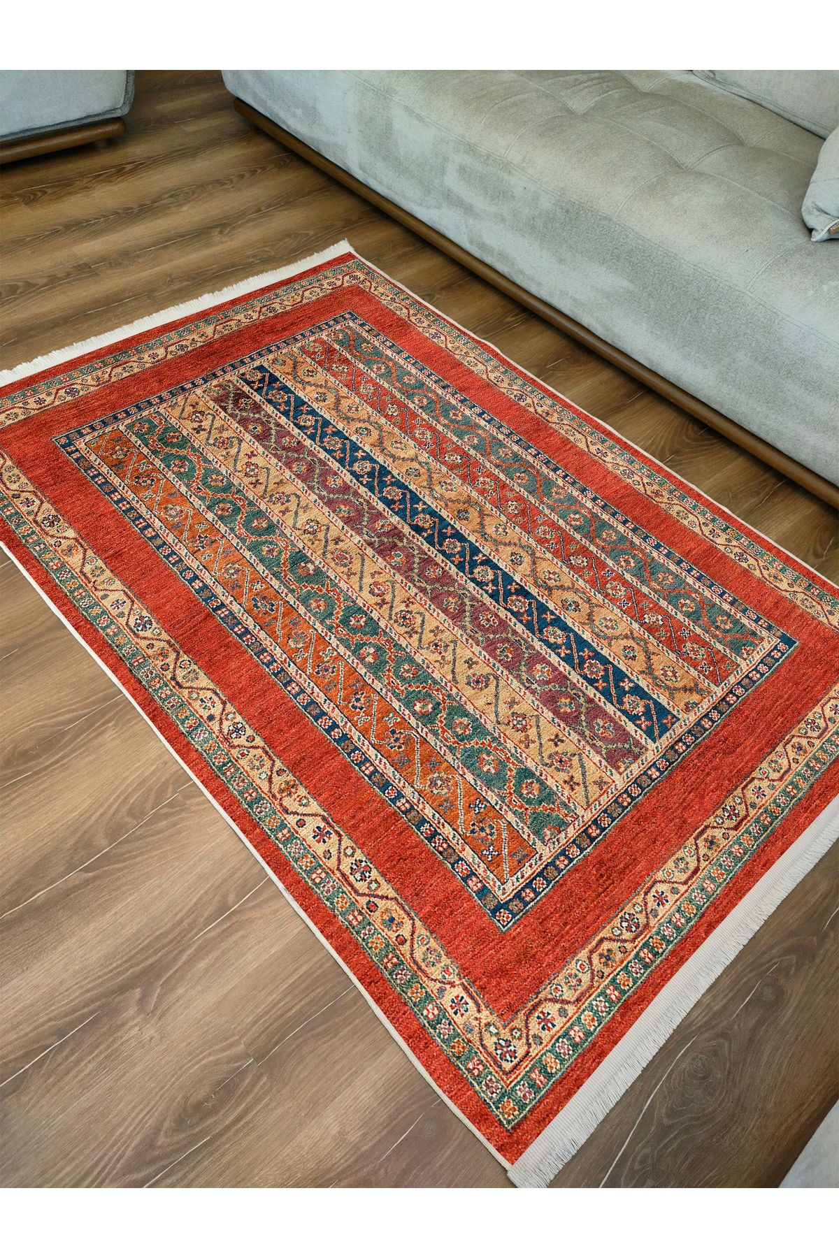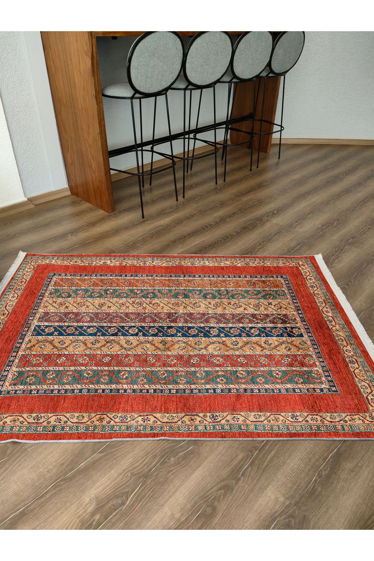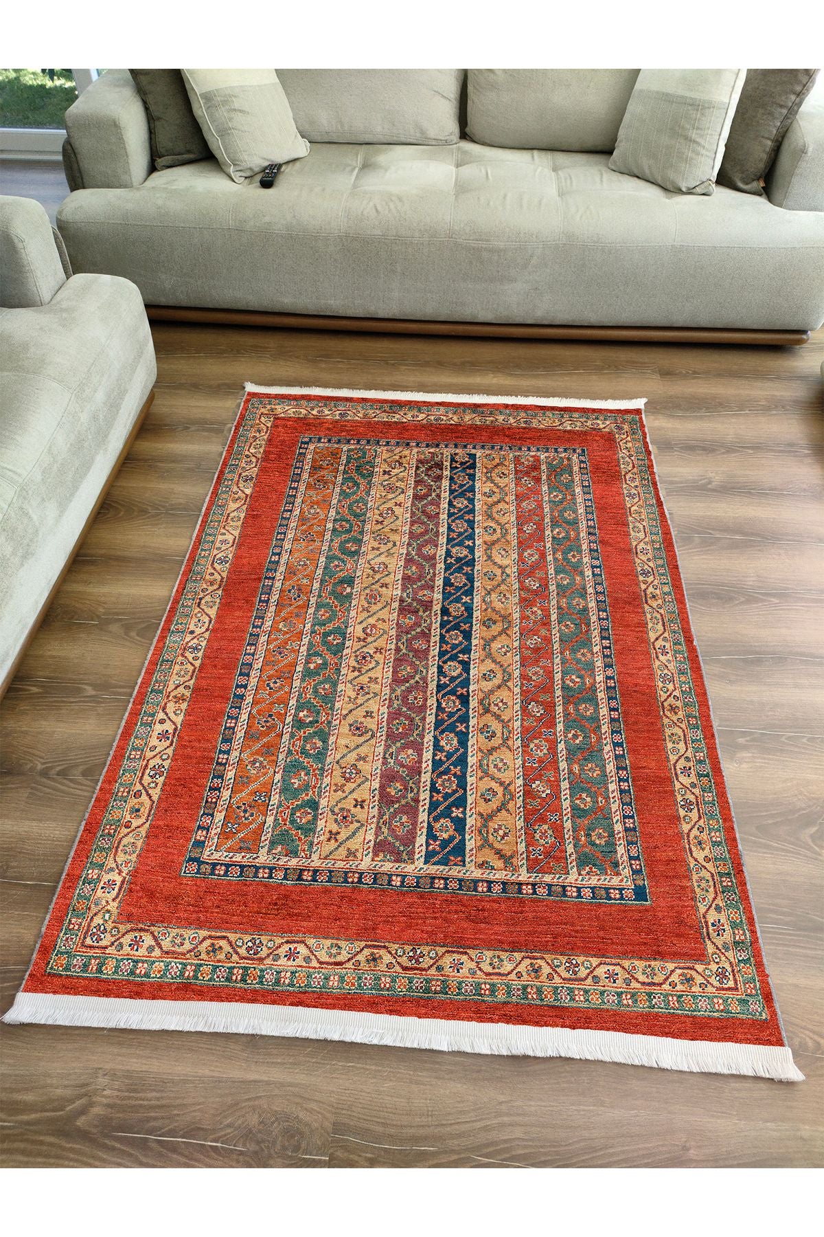 Halı Vagonu Kırmızı Tonlarında Etnik Klasik Eskitme Pamuk Dokuma Taban Halı 2099
