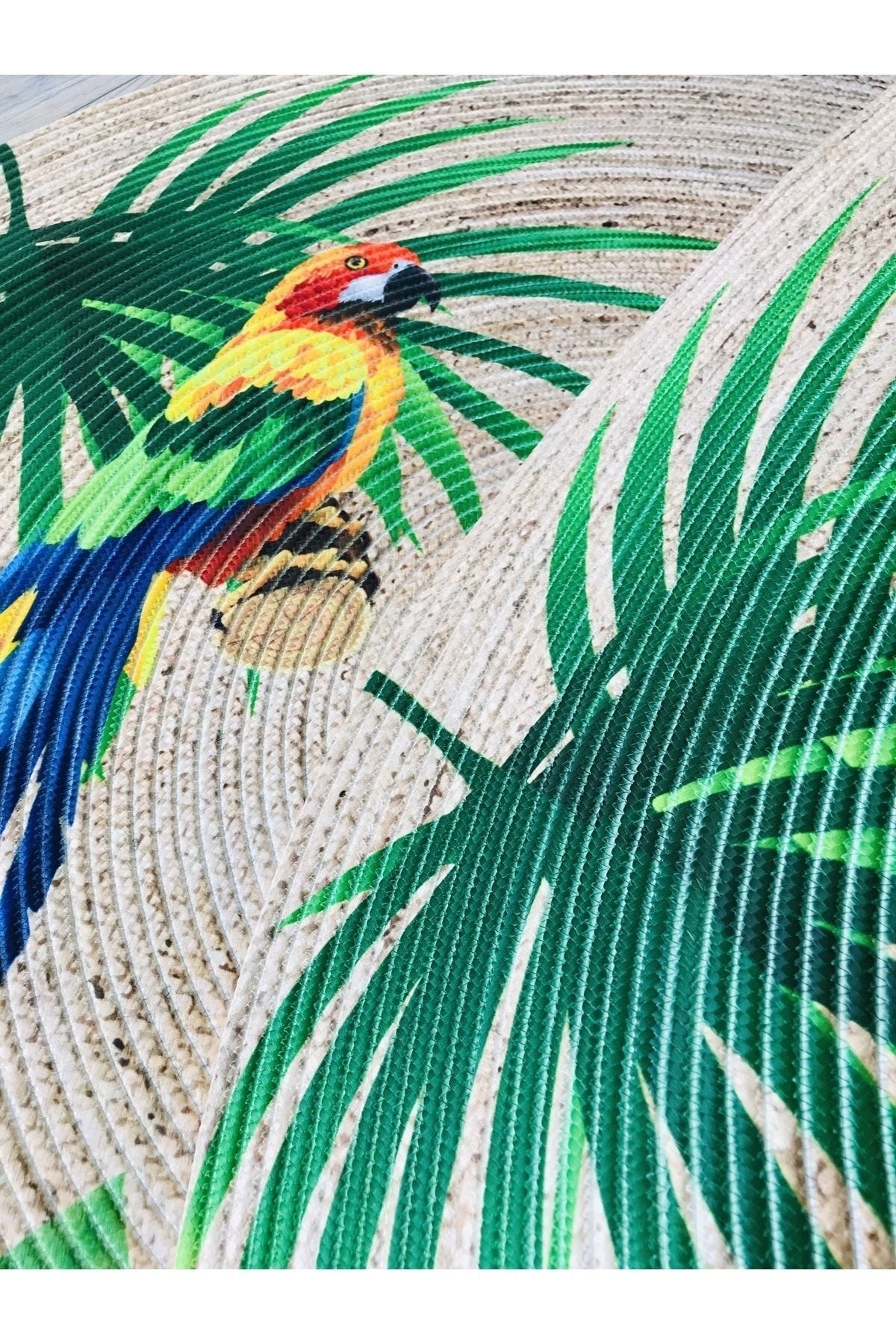 Halı Vagonu Papağan Tropikal Yuvarlak Jüt Örme Hasır Halı/Kilim HV-JH-08
