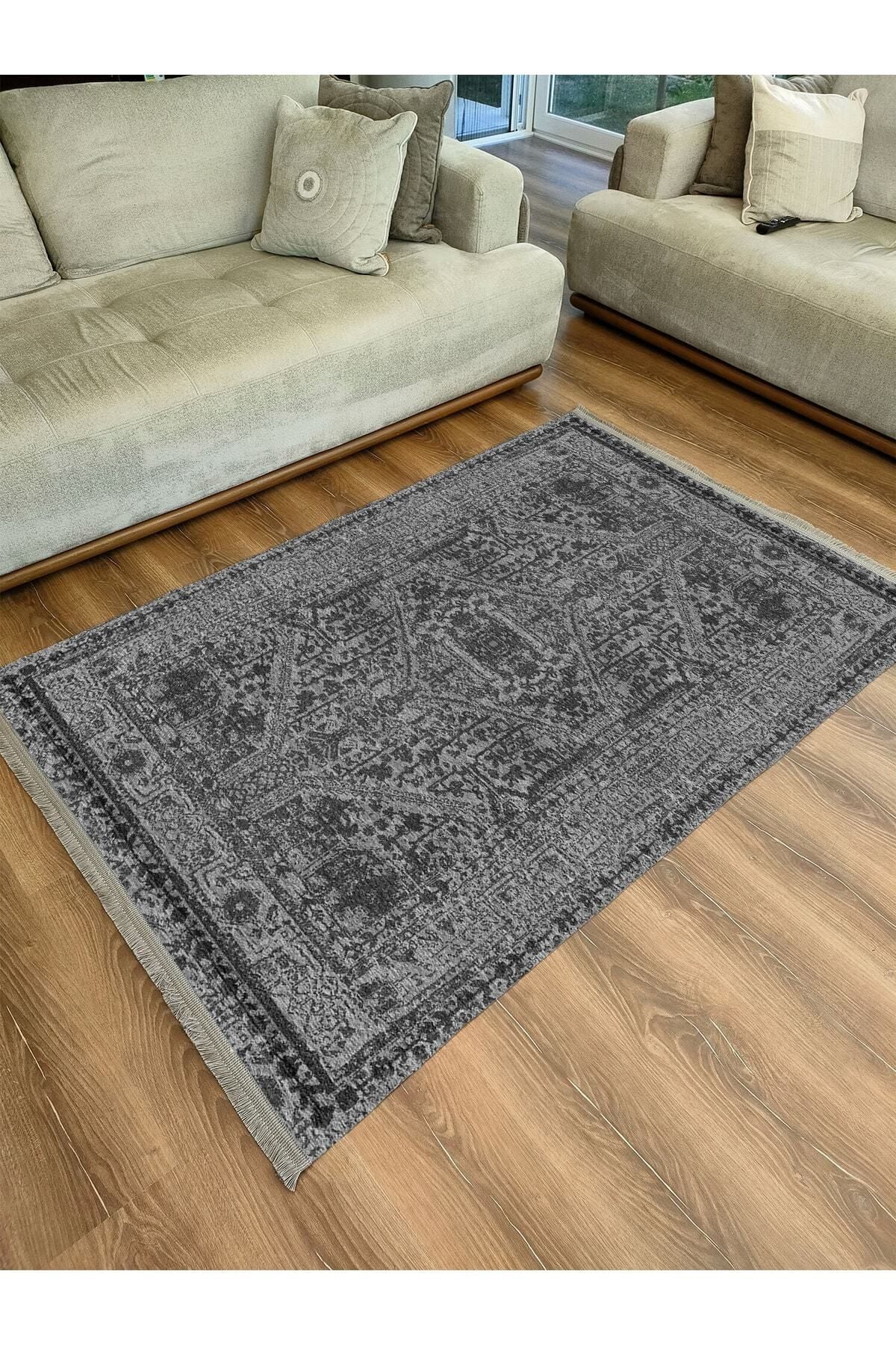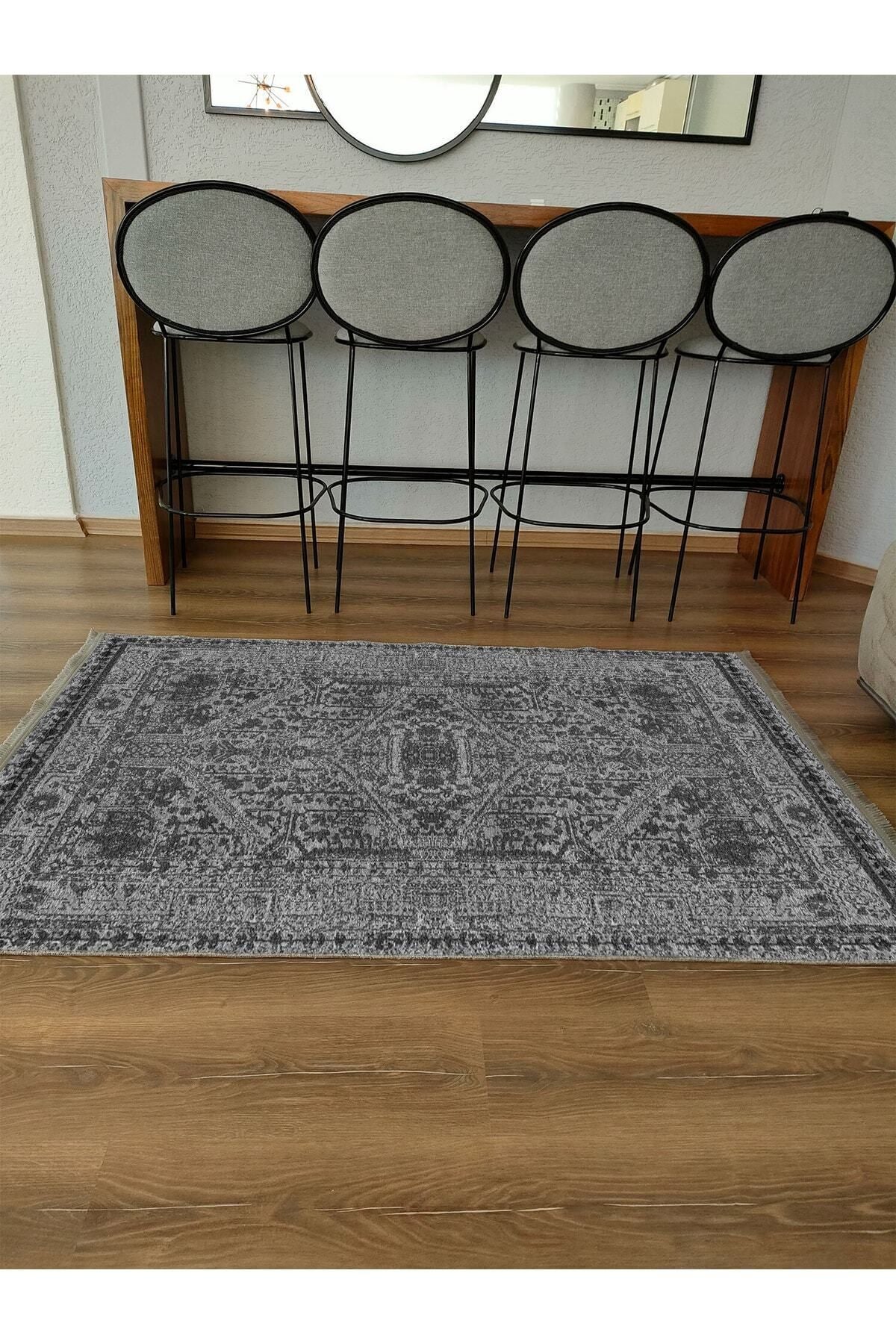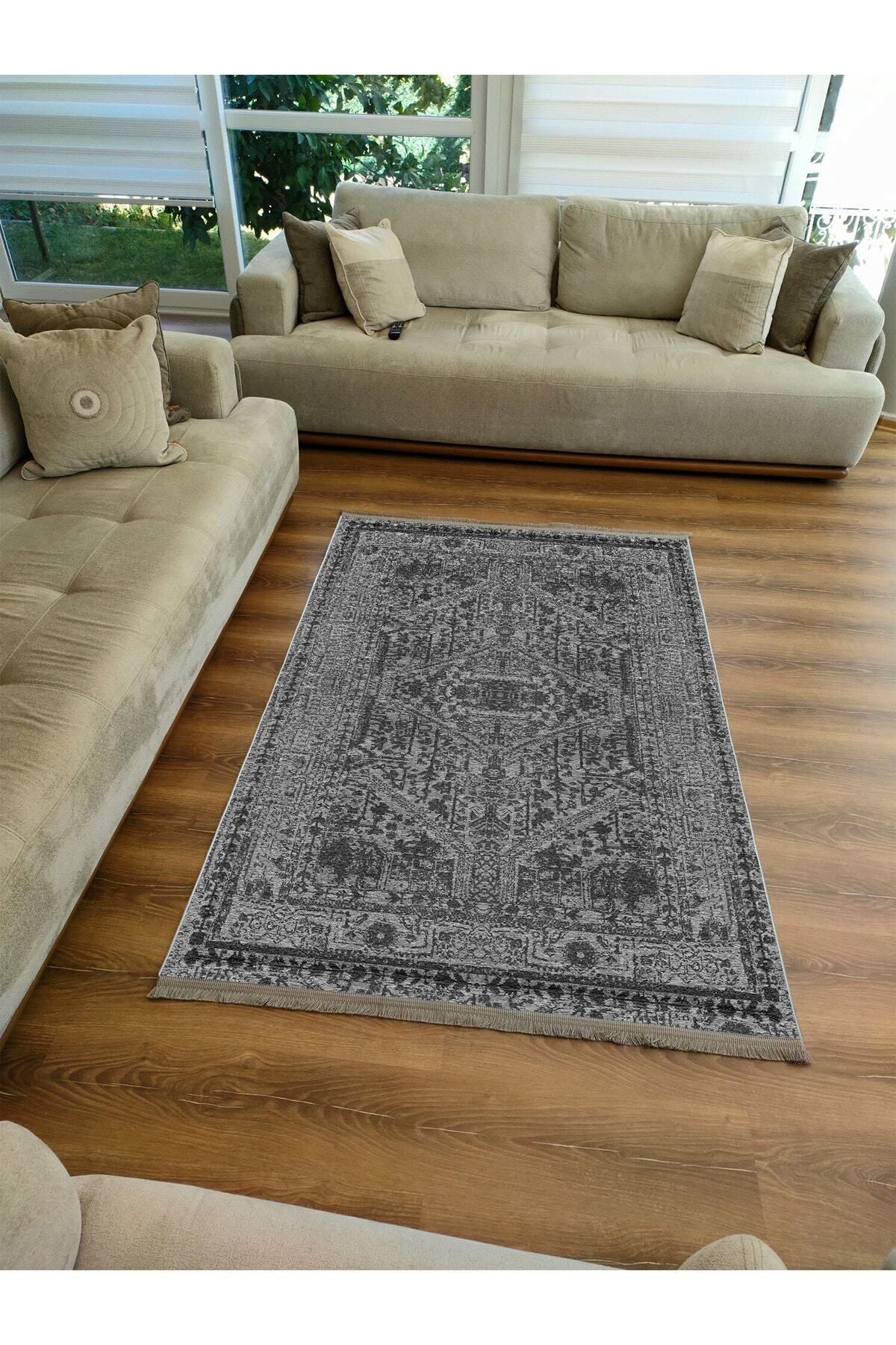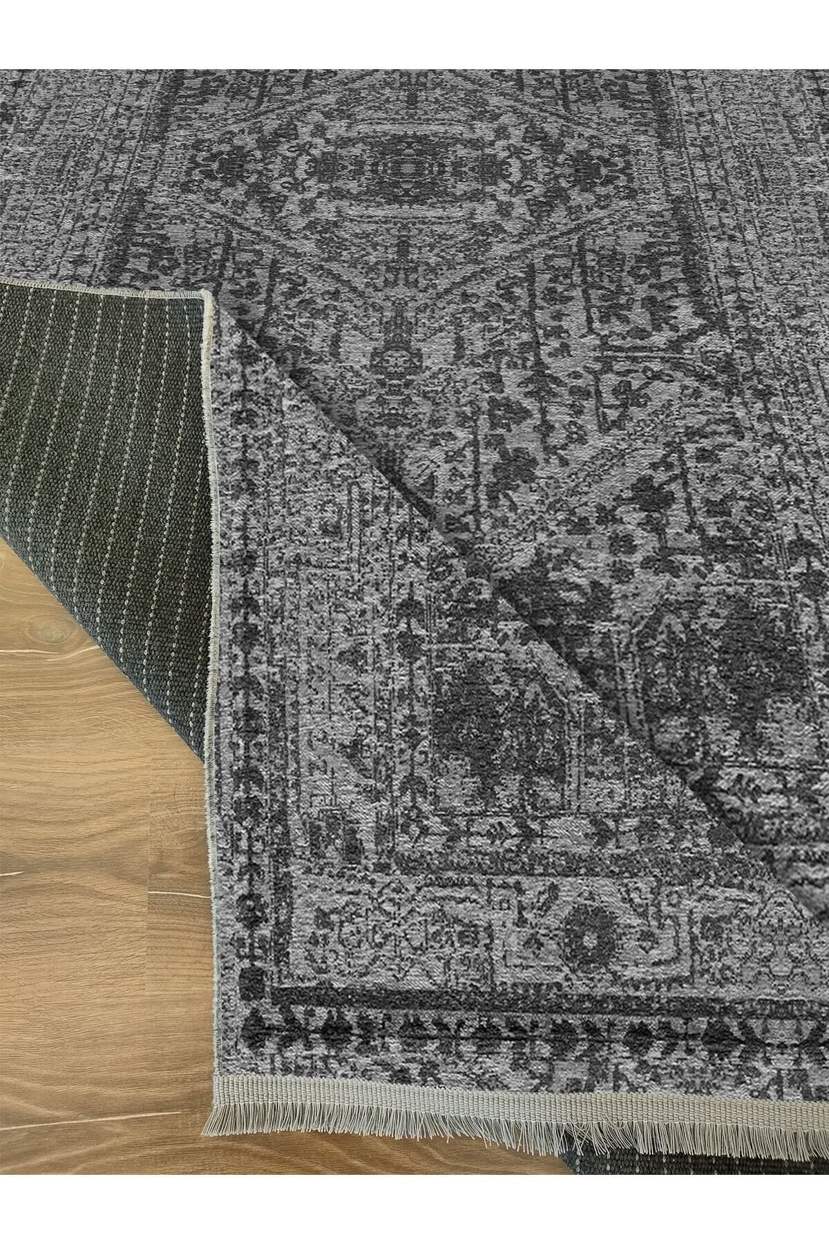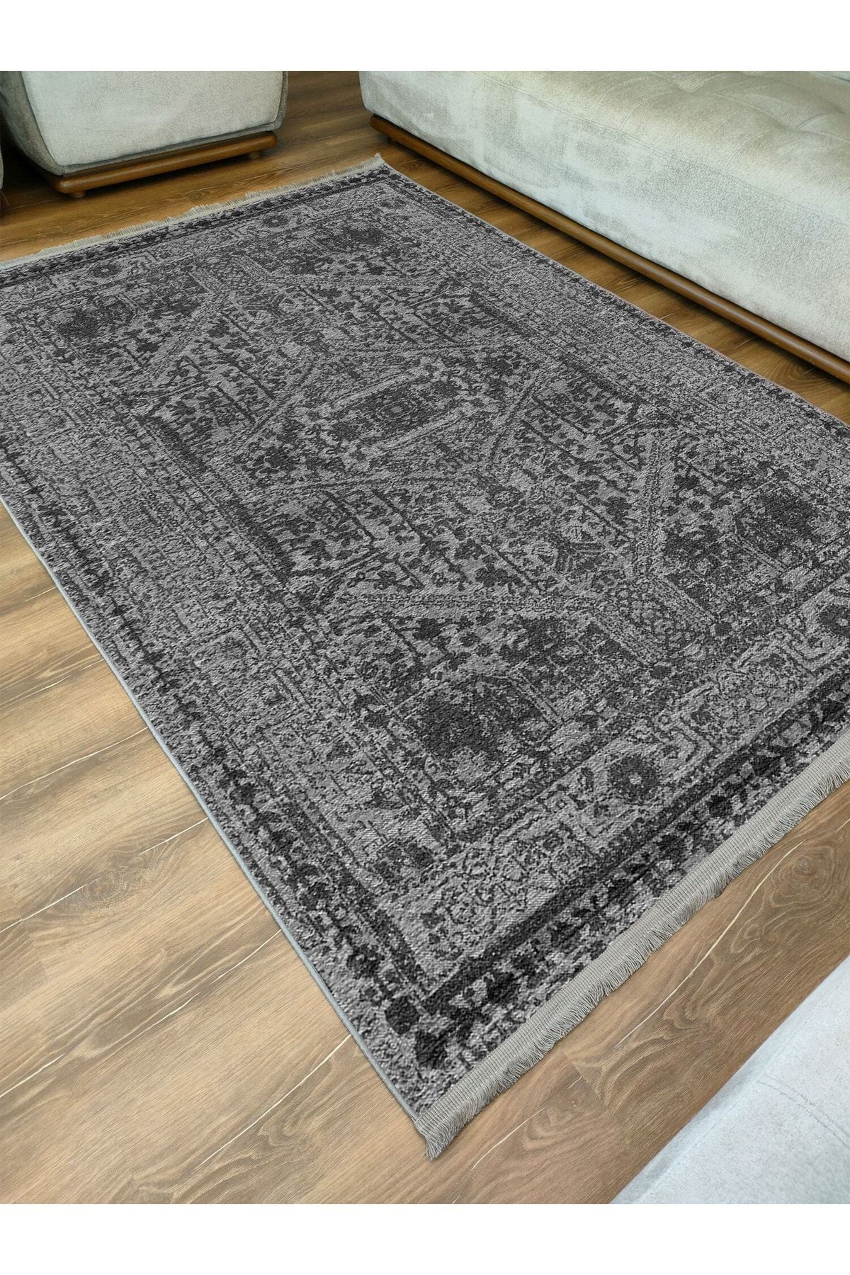 Halı Vagonu Serisi Gri Tonlarında Eskitme Antika Desen Kaymaz Taban Şönil Halı