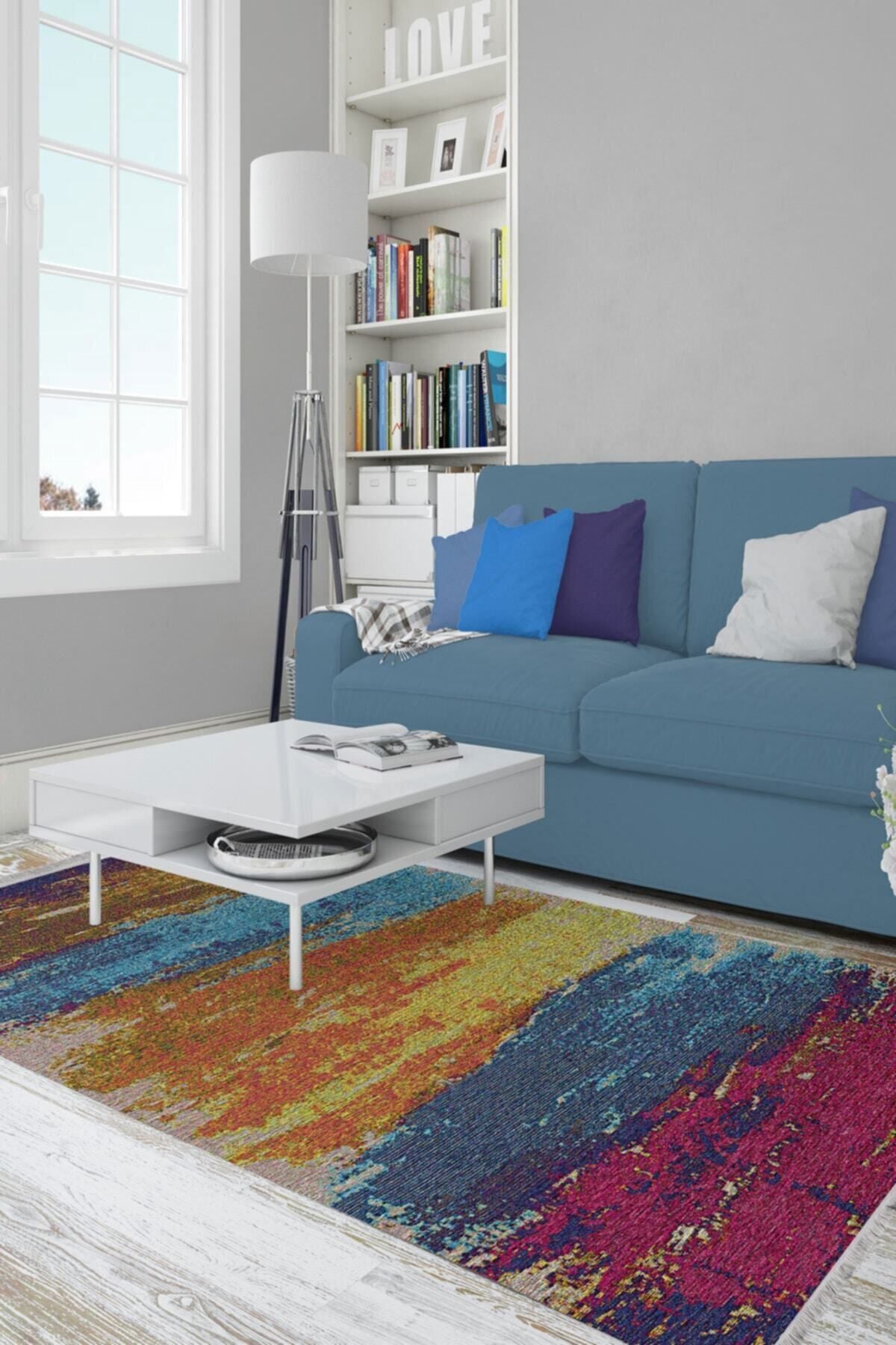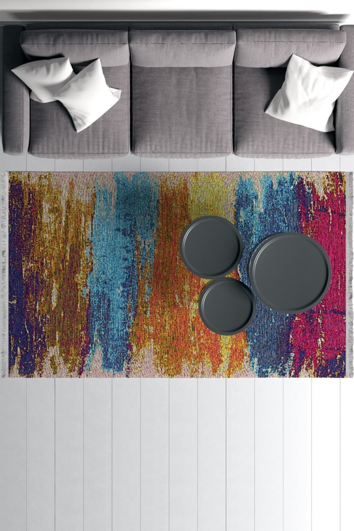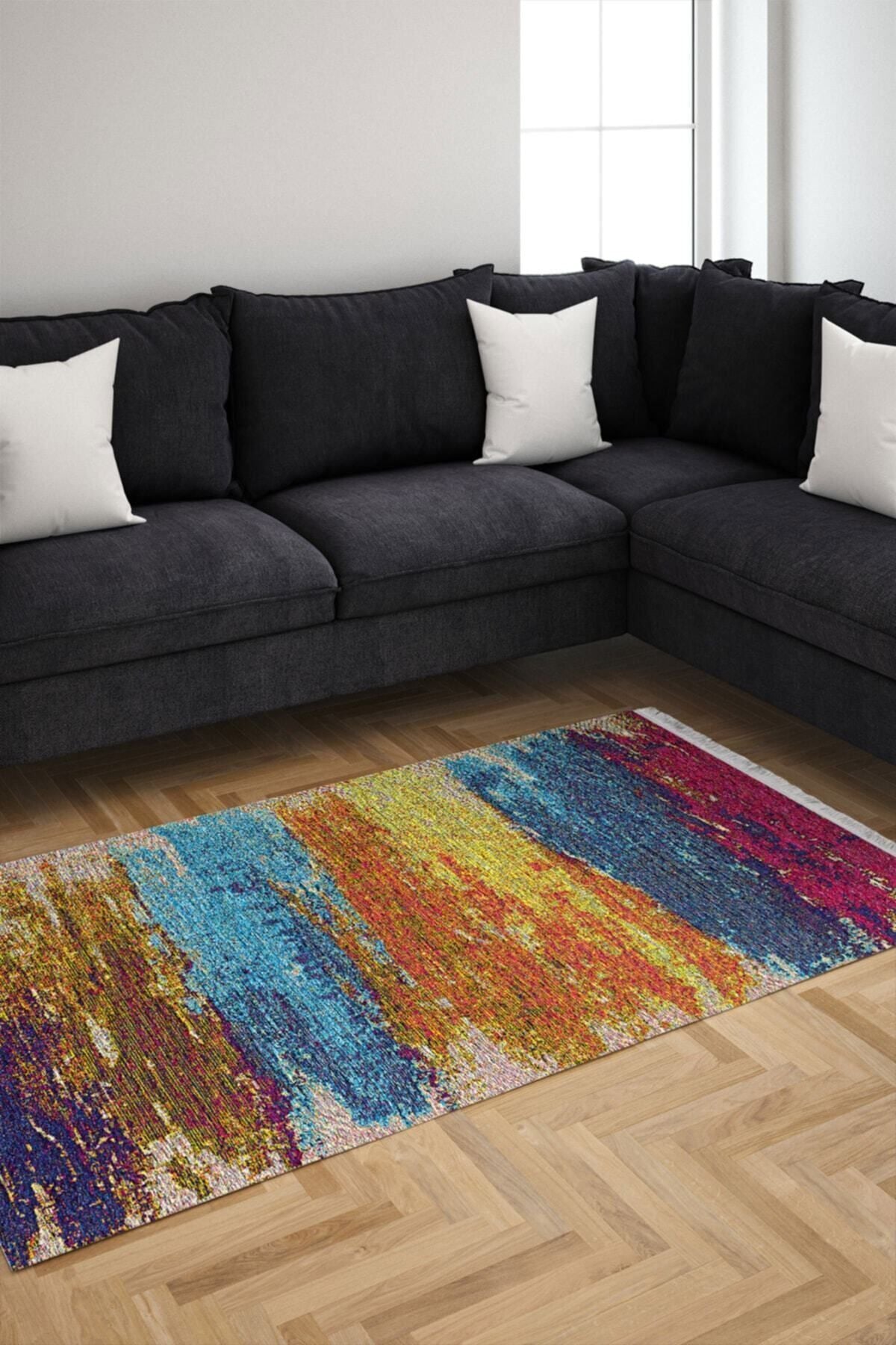 Halı Vagonu Serisi Hardal Ve Bordürlü Çiçek Desen Kaymaz Taban Şönil Halı