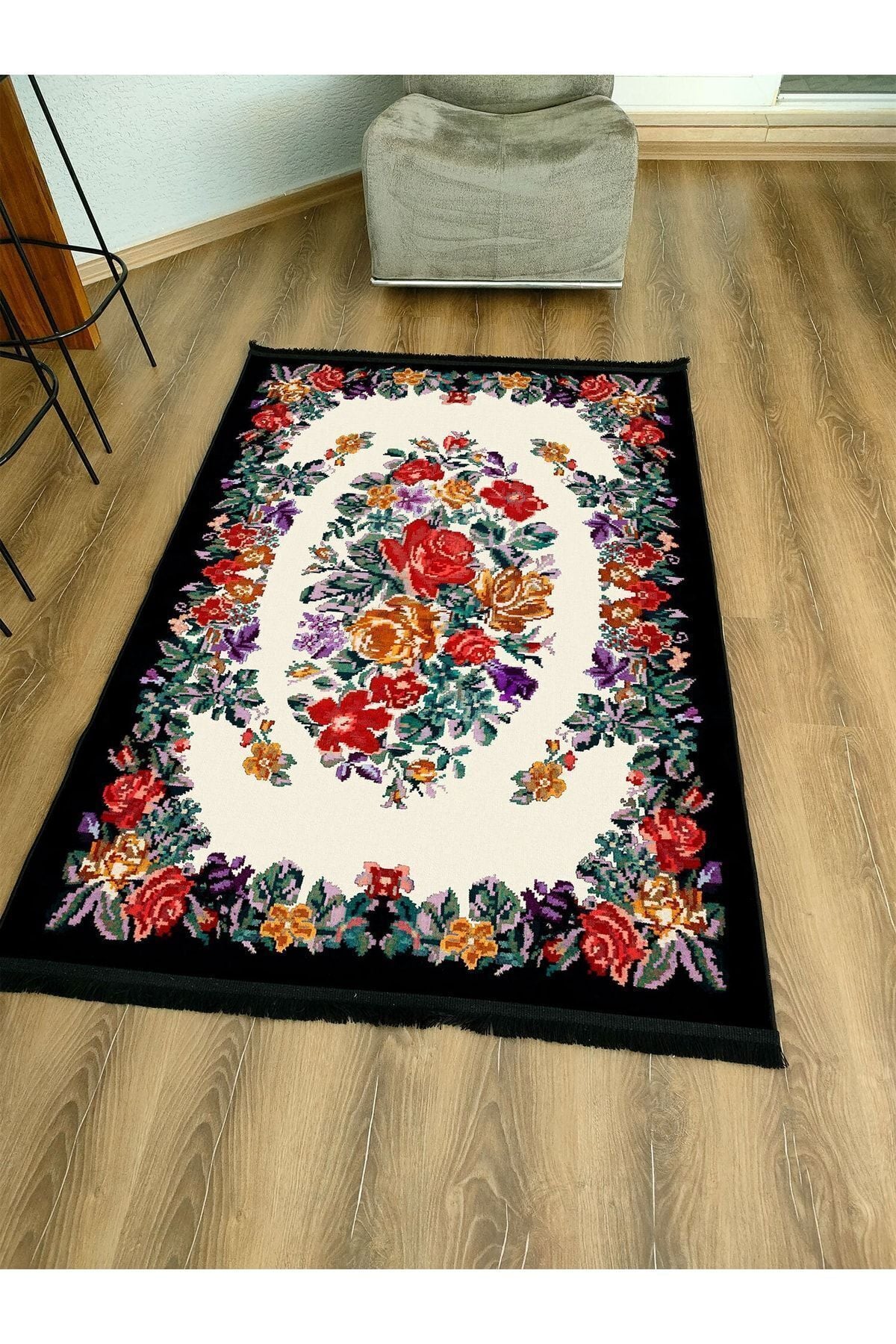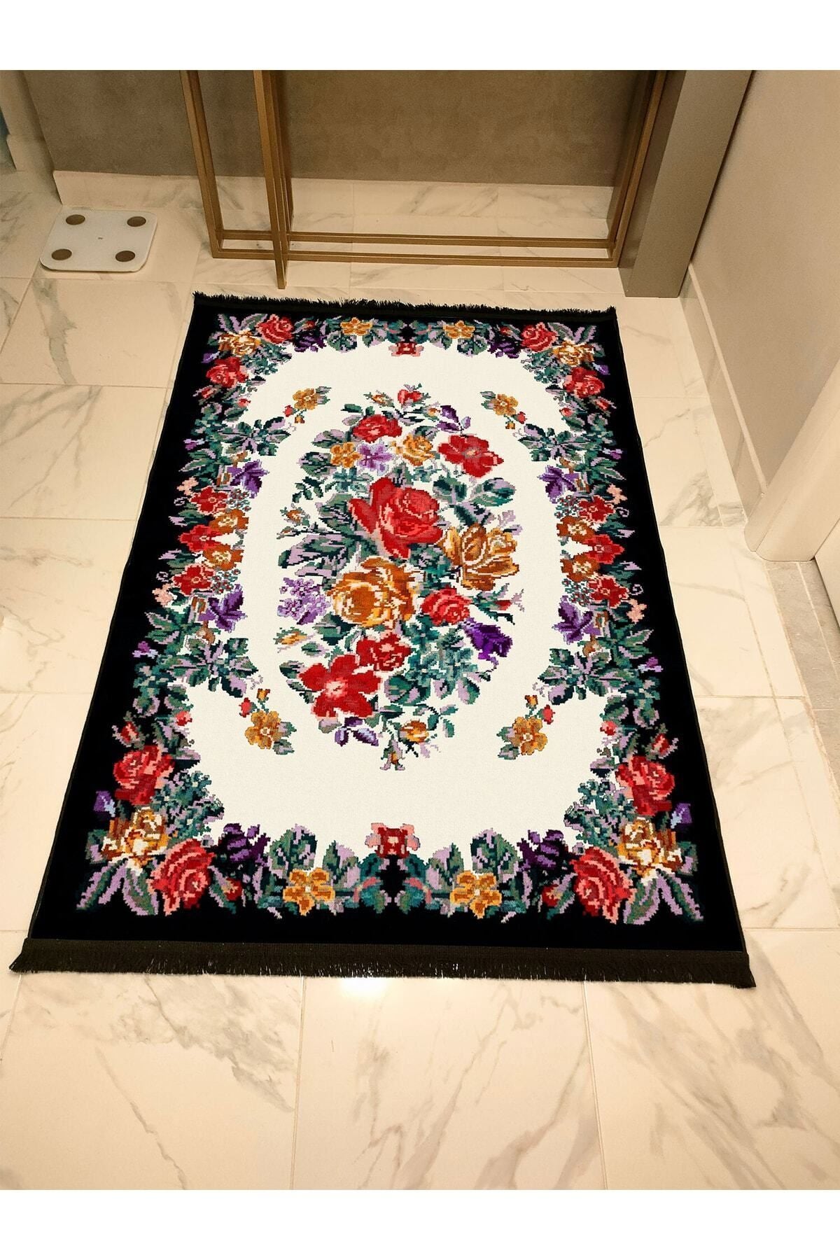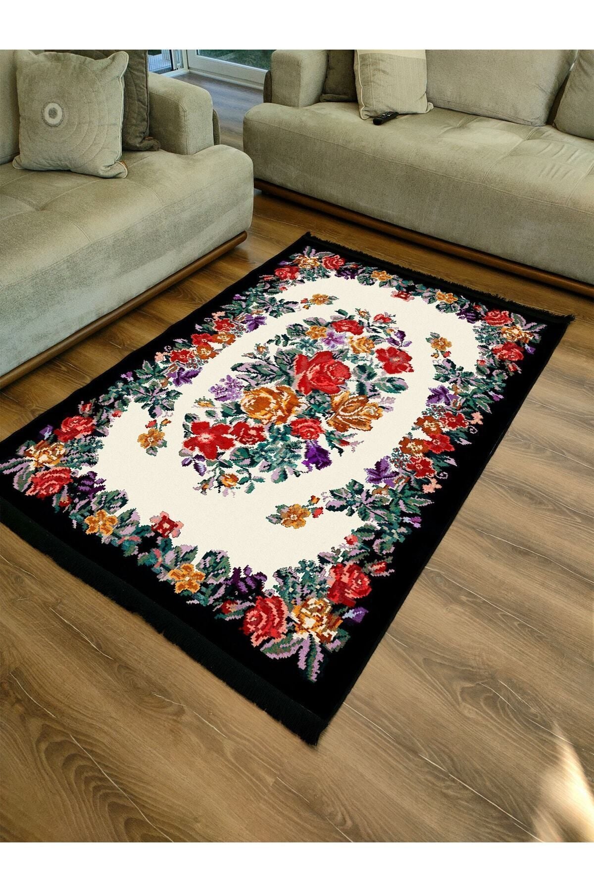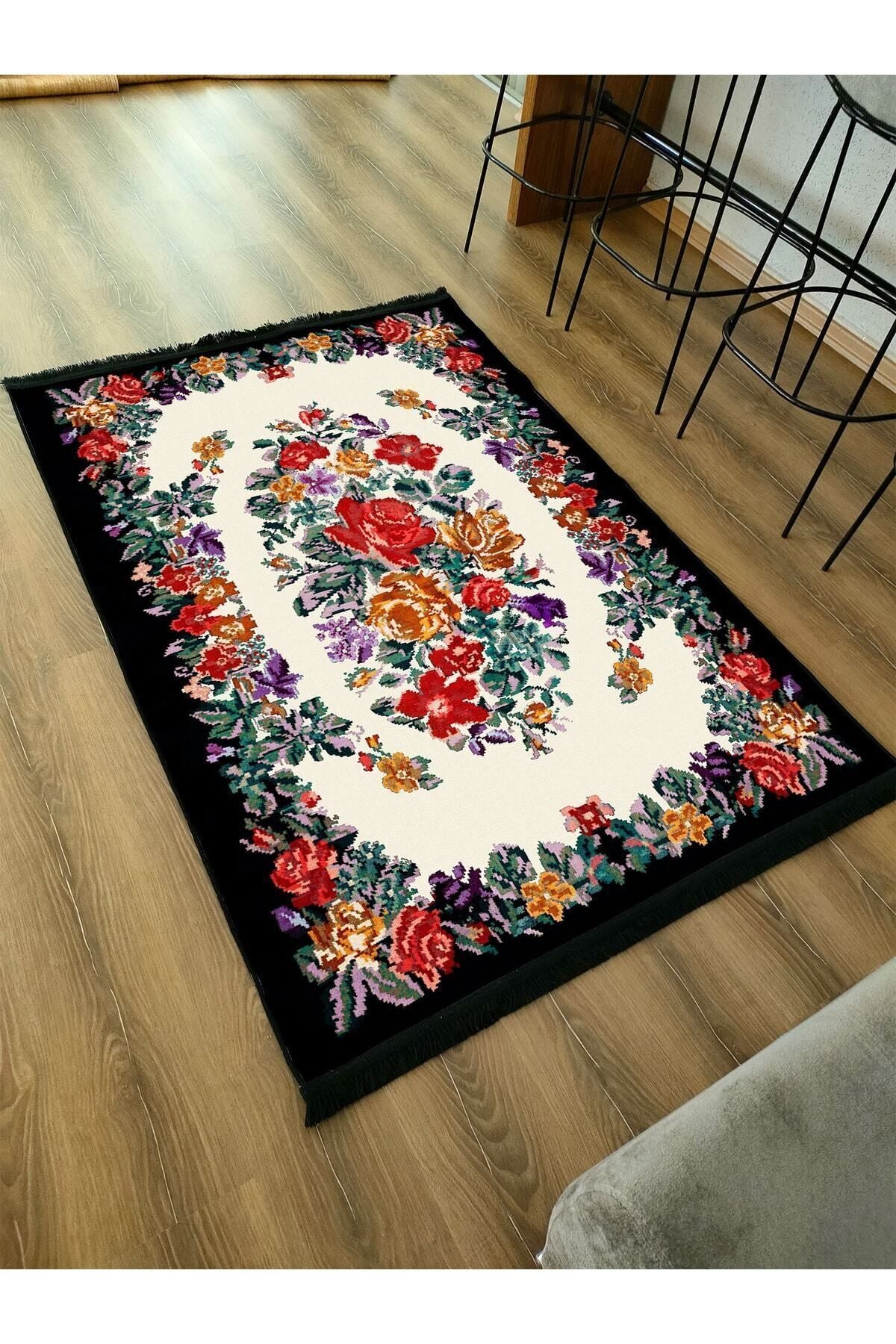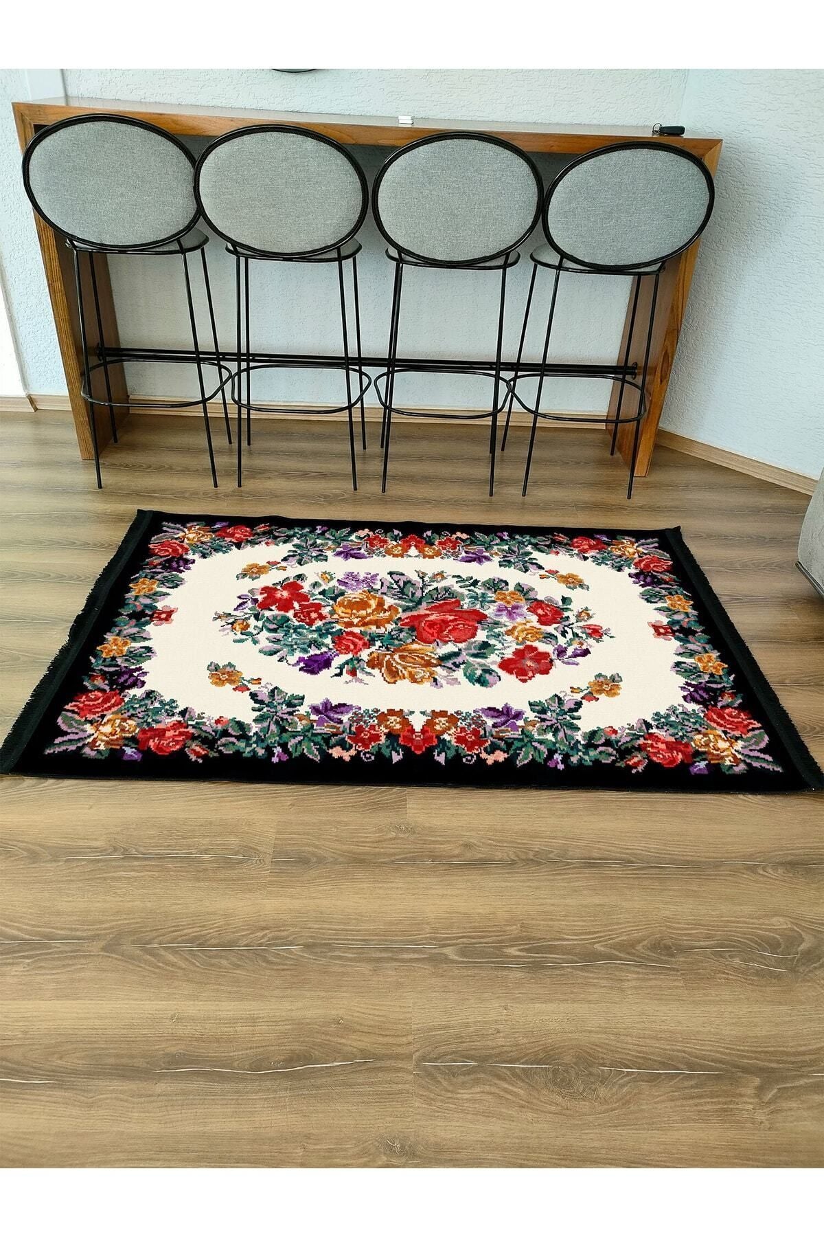 Halı Vagonu Serisi Kahve Tonlarında Çerçeveli Eskitme Geometrik Desen Kaymaz Taban Şönil Halı