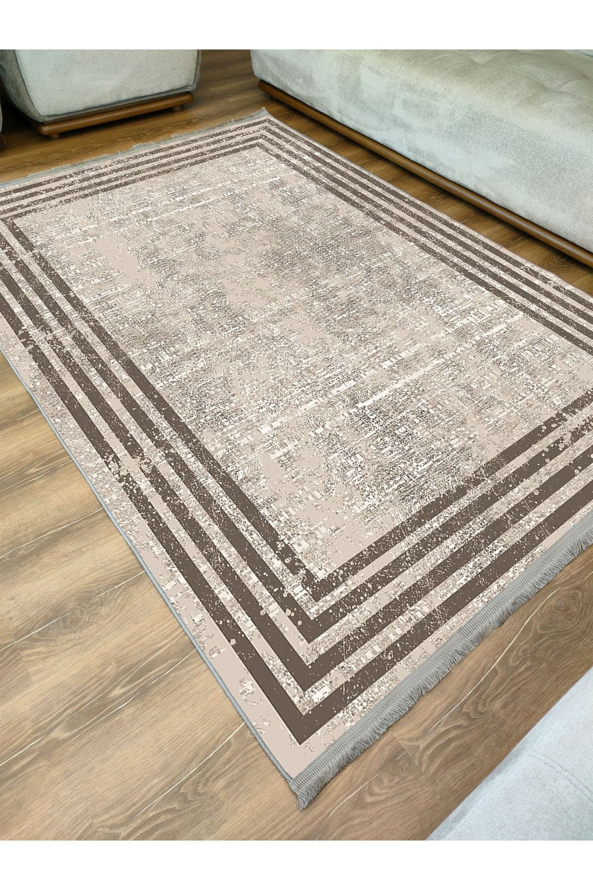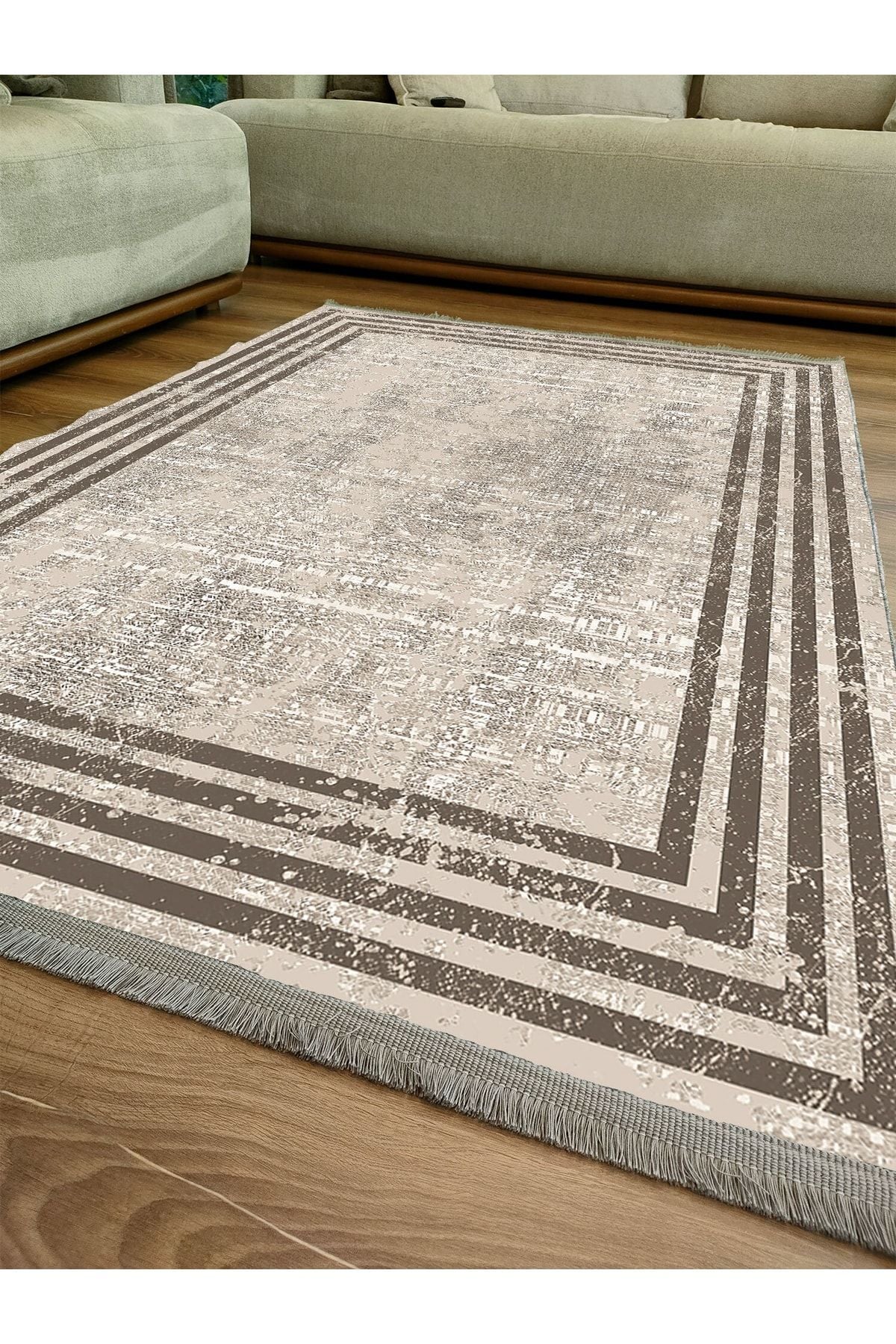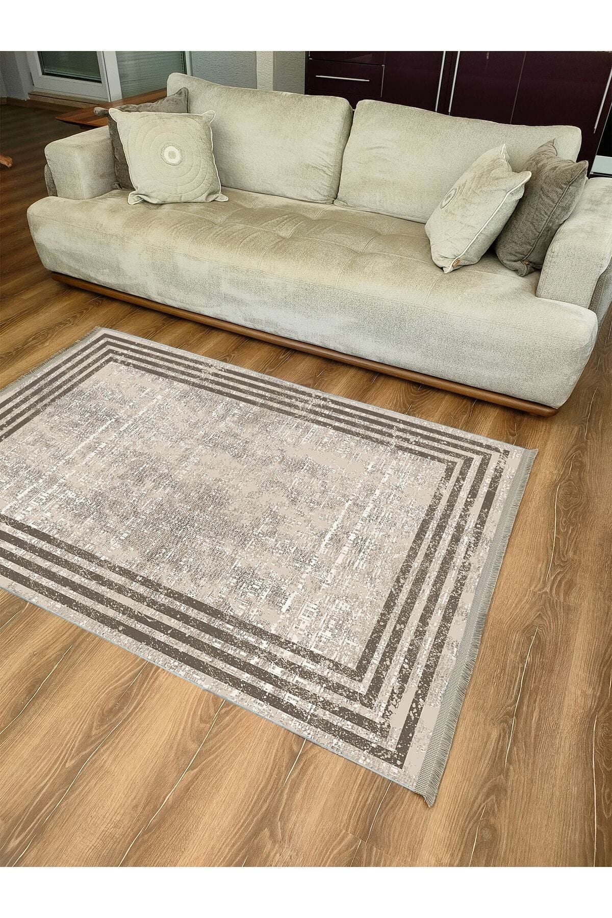 Halı Vagonu Serisi Kahve Tonlarında Çizgili Etnik Desen Kaymaz Taban Şönil Halı