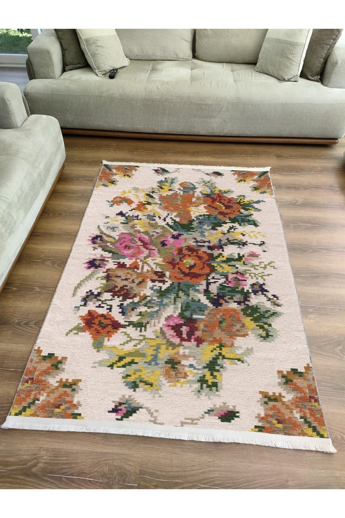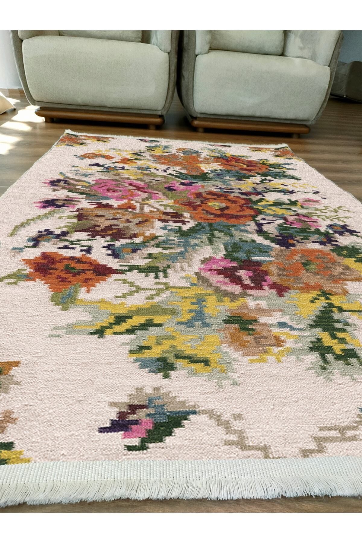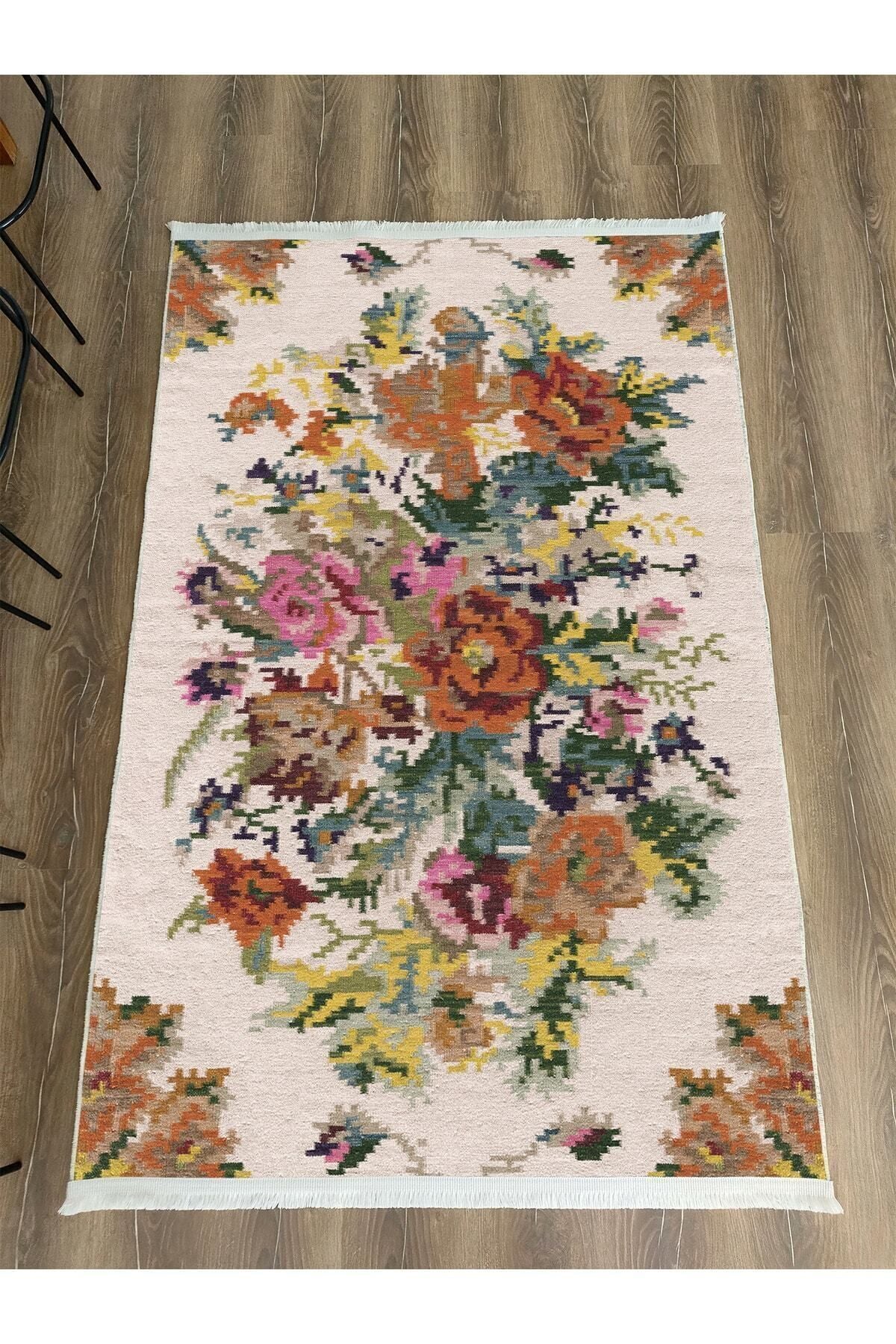 Halı Vagonu Serisi Multy Tonlarında Eskitme Çiçek Desen Kaymaz Taban Şönil Halı
