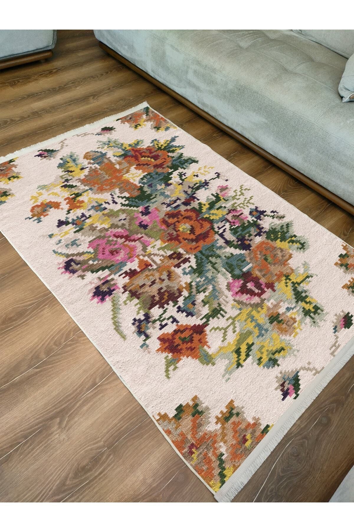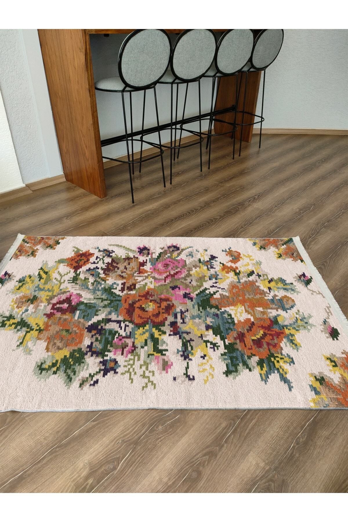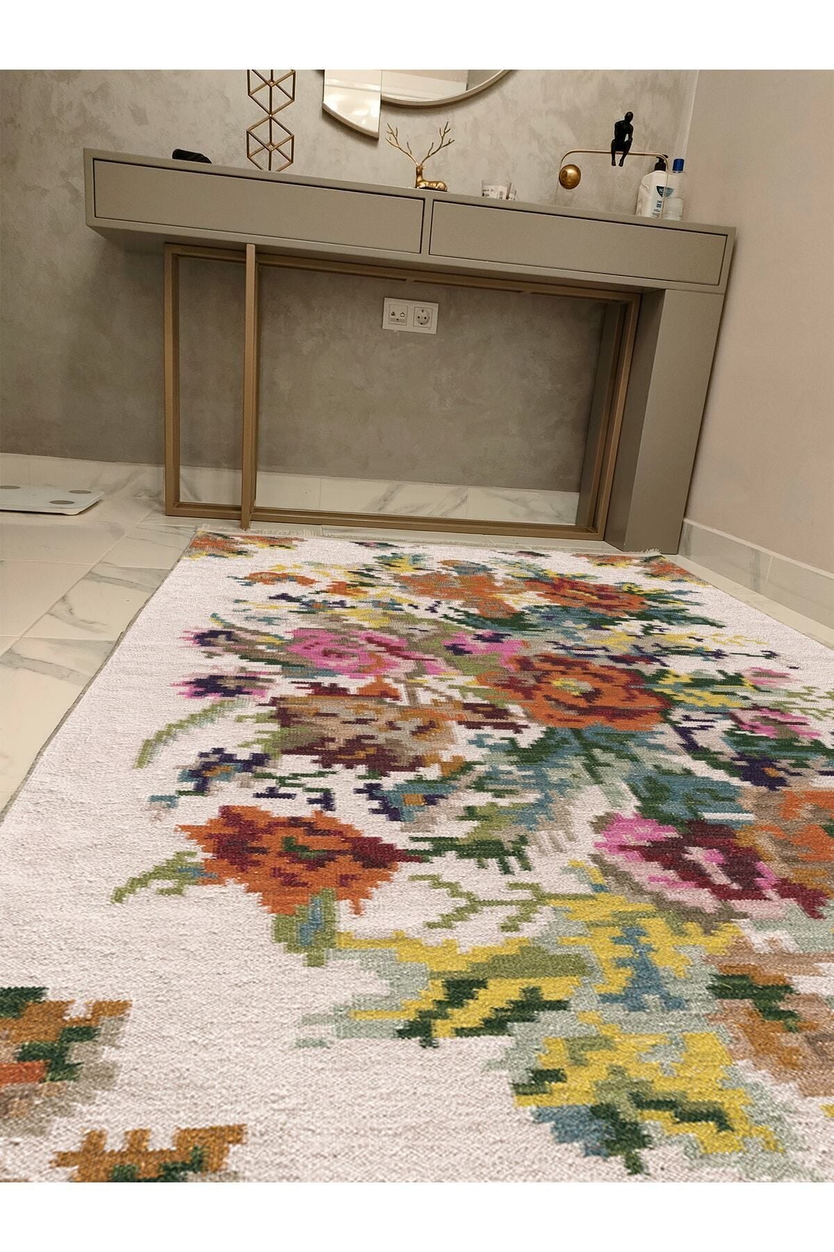 Halı Vagonu Serisi Multy Tonlarında Eskitme Çiçek Desen Kaymaz Taban Şönil Halı