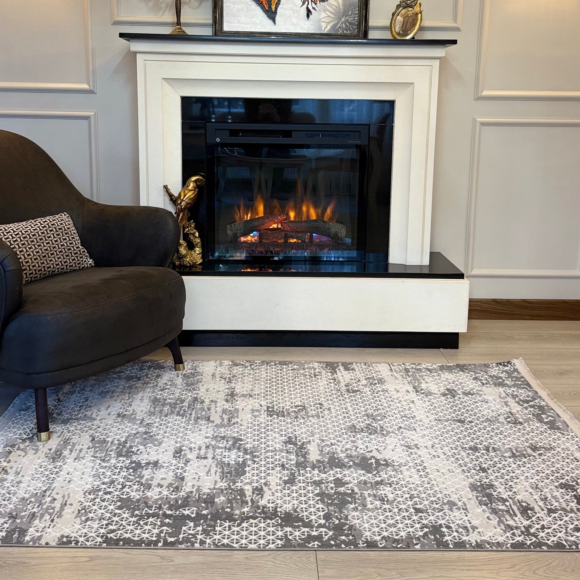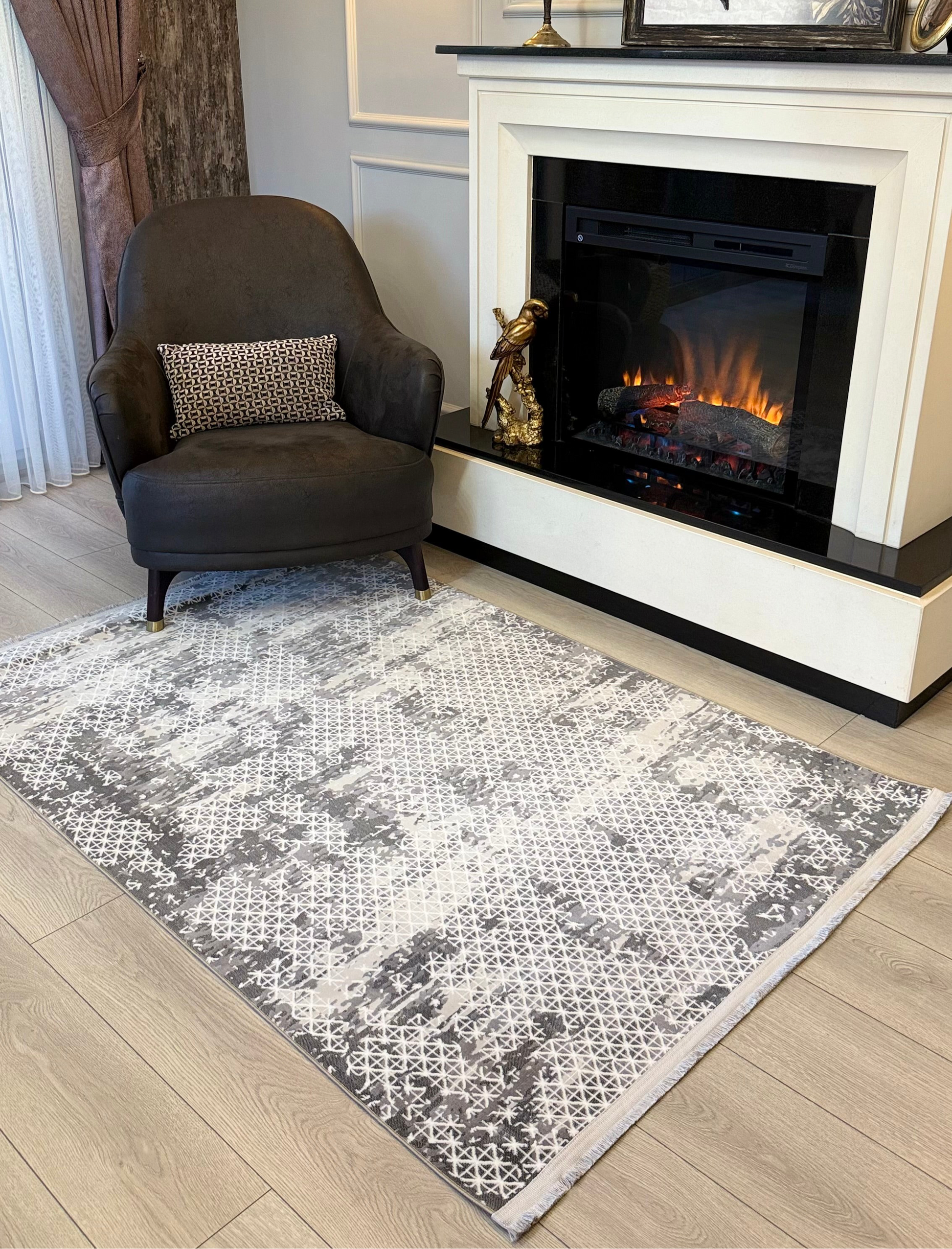 Halı Vagonu Zen Koleksiyonu ZEN08 Gri İnce Yıkanabilir Kaymaz Tabanlı Makine Halısı