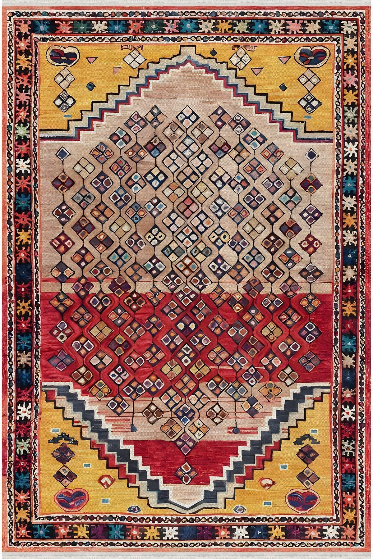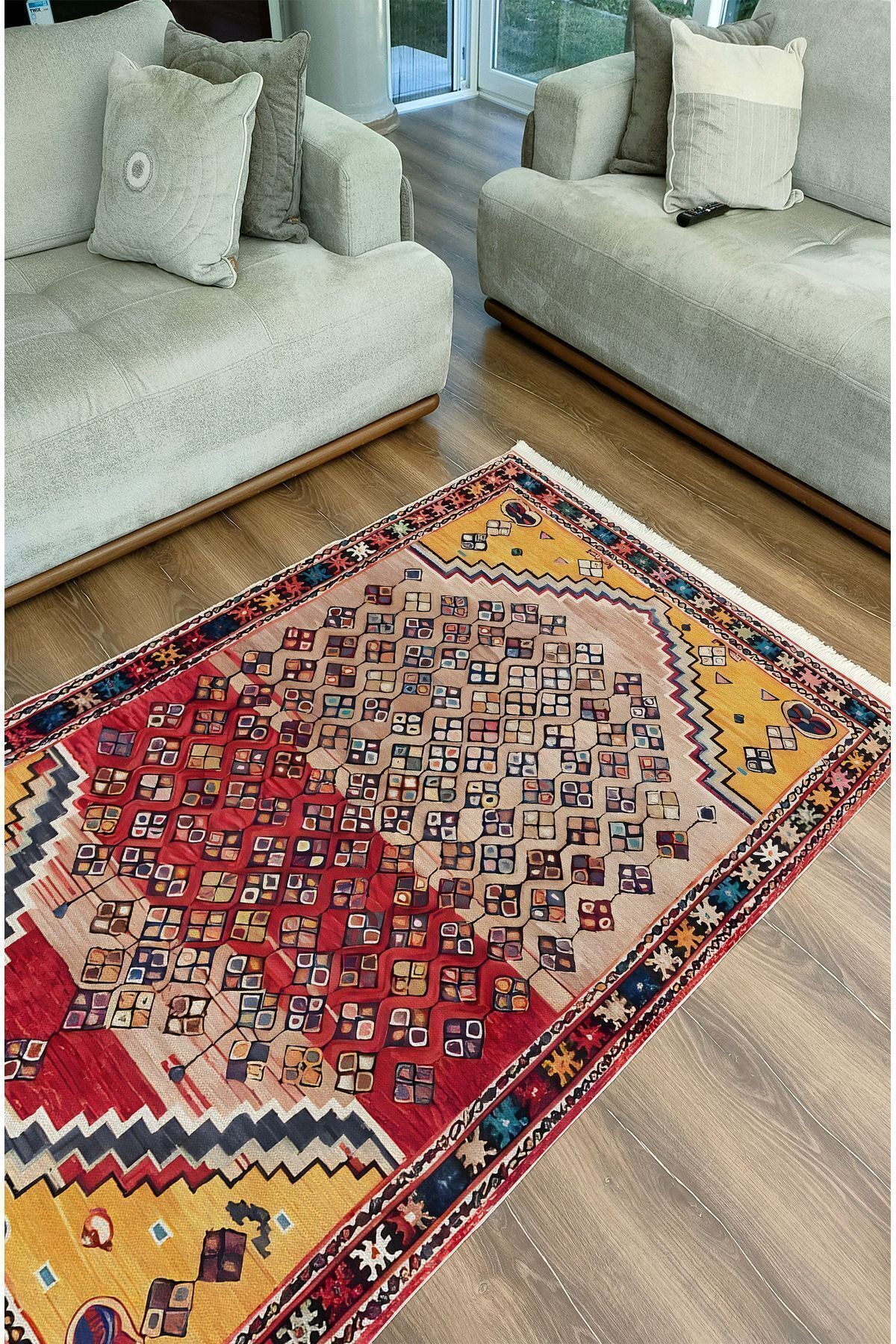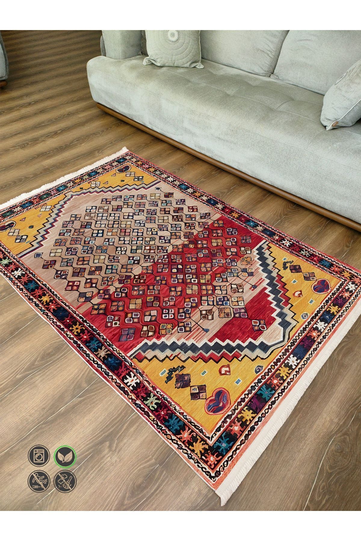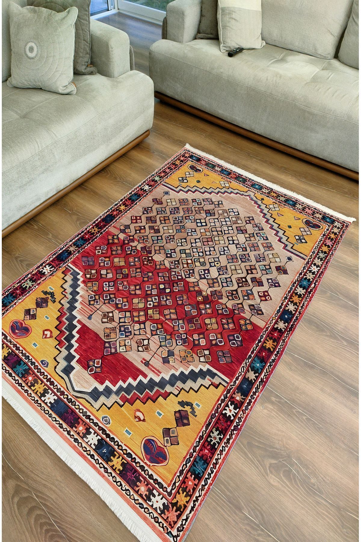 Halı Vagonu109ı Etnik Anadolu Halısı Dekoratif Salon Halısı Saçaklı Yıkanabilen Halı