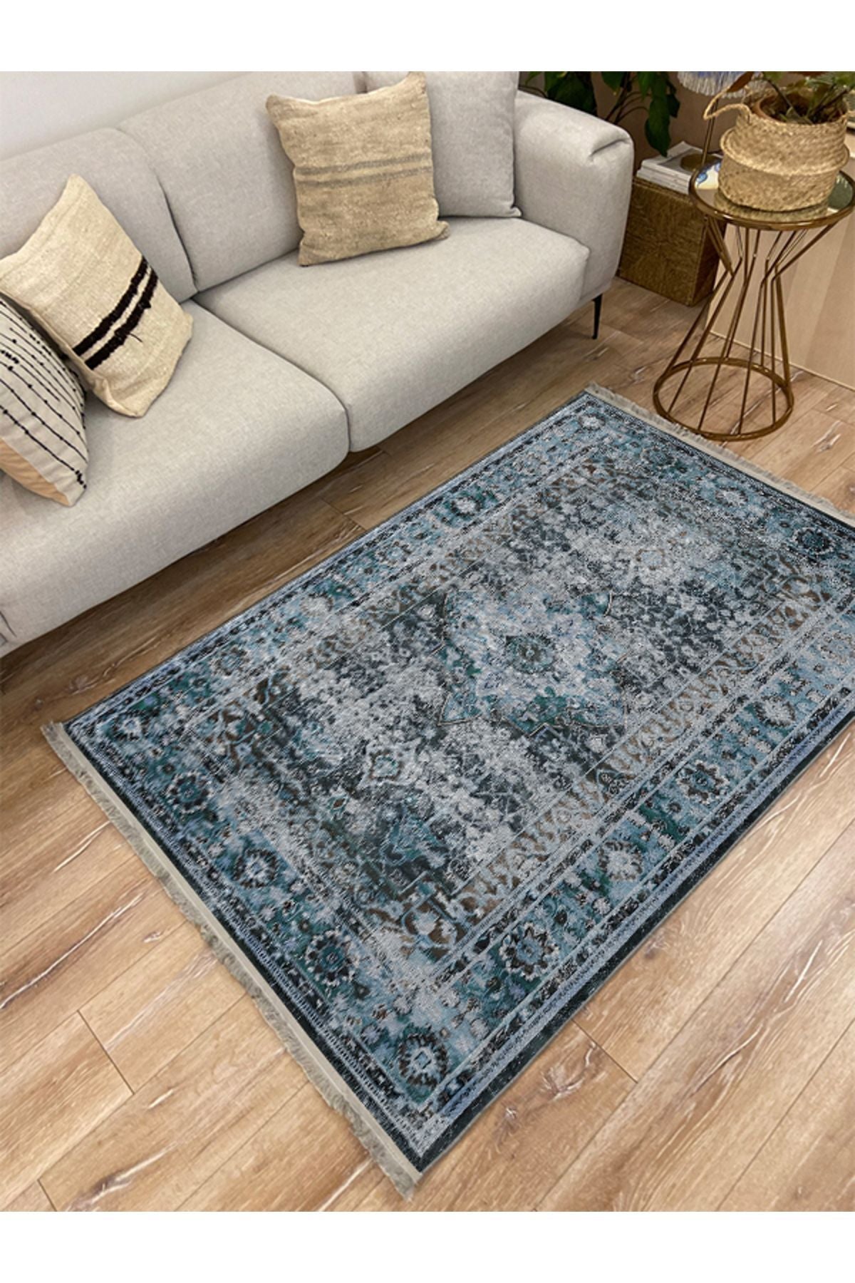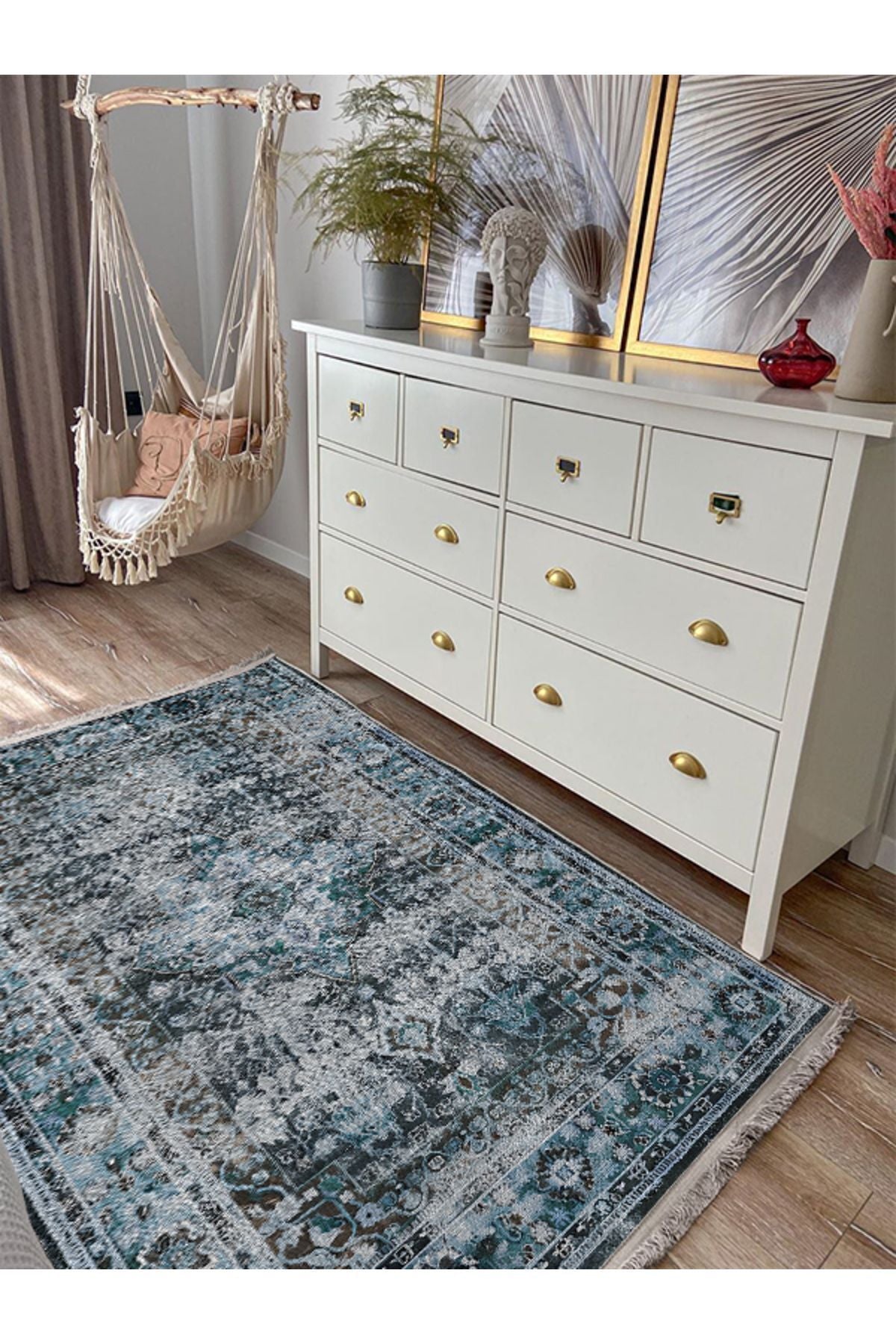 Halı Vagonu85 Etnik Desenli Yıkanabilir Kaymaz Tabanlı Salon Halısı, Koridor Ve Mutfak Halısı