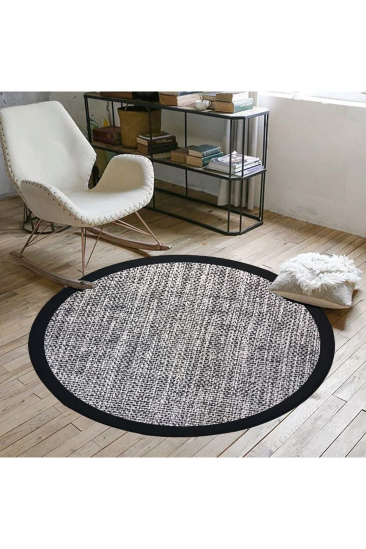 Hasır Jüt Desenli Dijital Baskılı Yuvarlak Halı