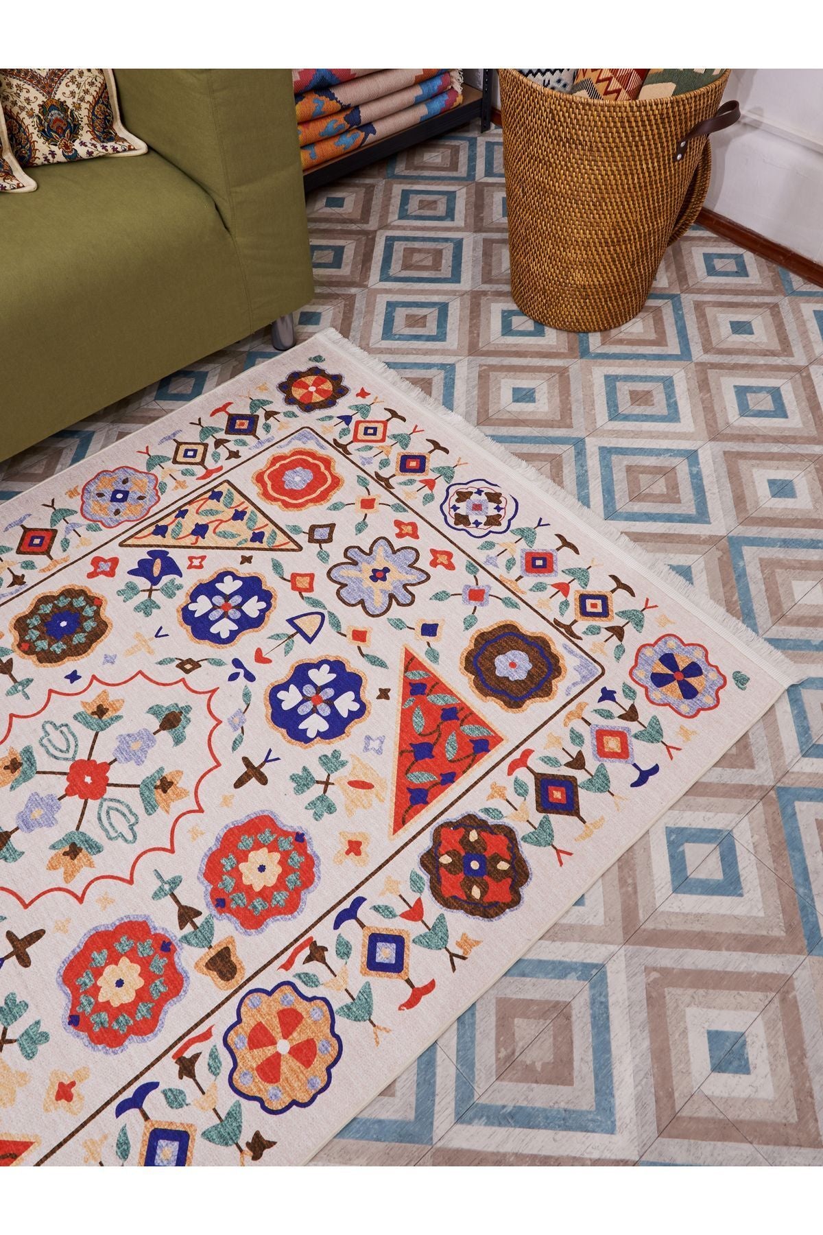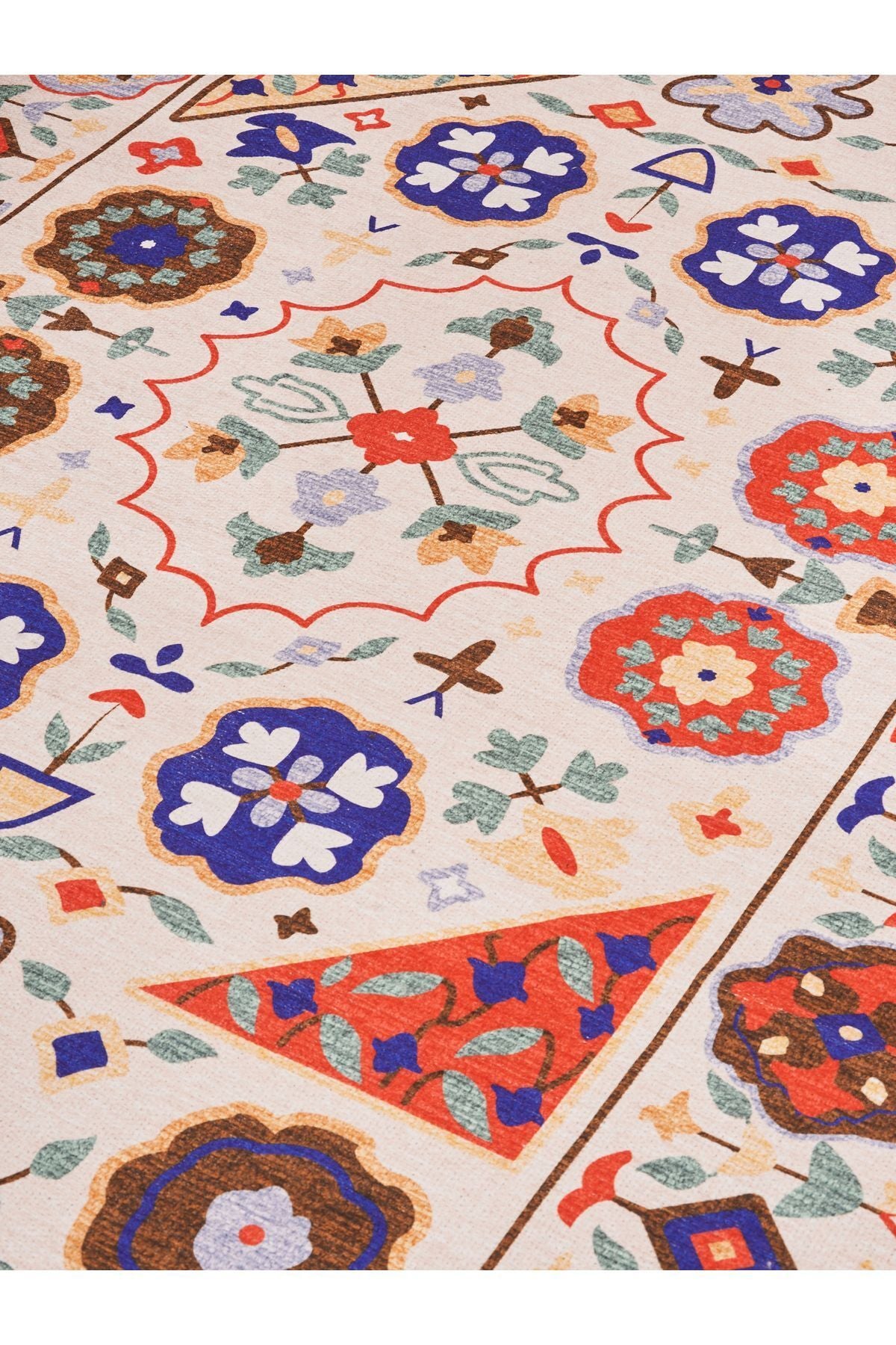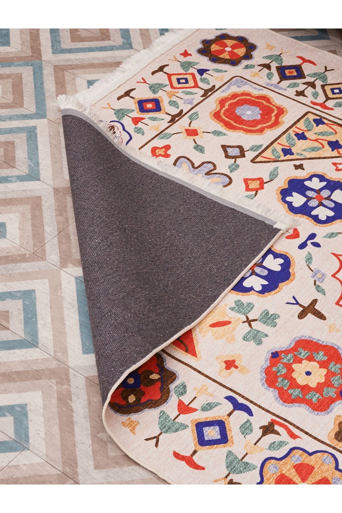 HV 2035 Renkli Klasik Desenli Yıkanabilir Dokuma Taban Salon Halısı Koridor Ve Mutfak Halısı