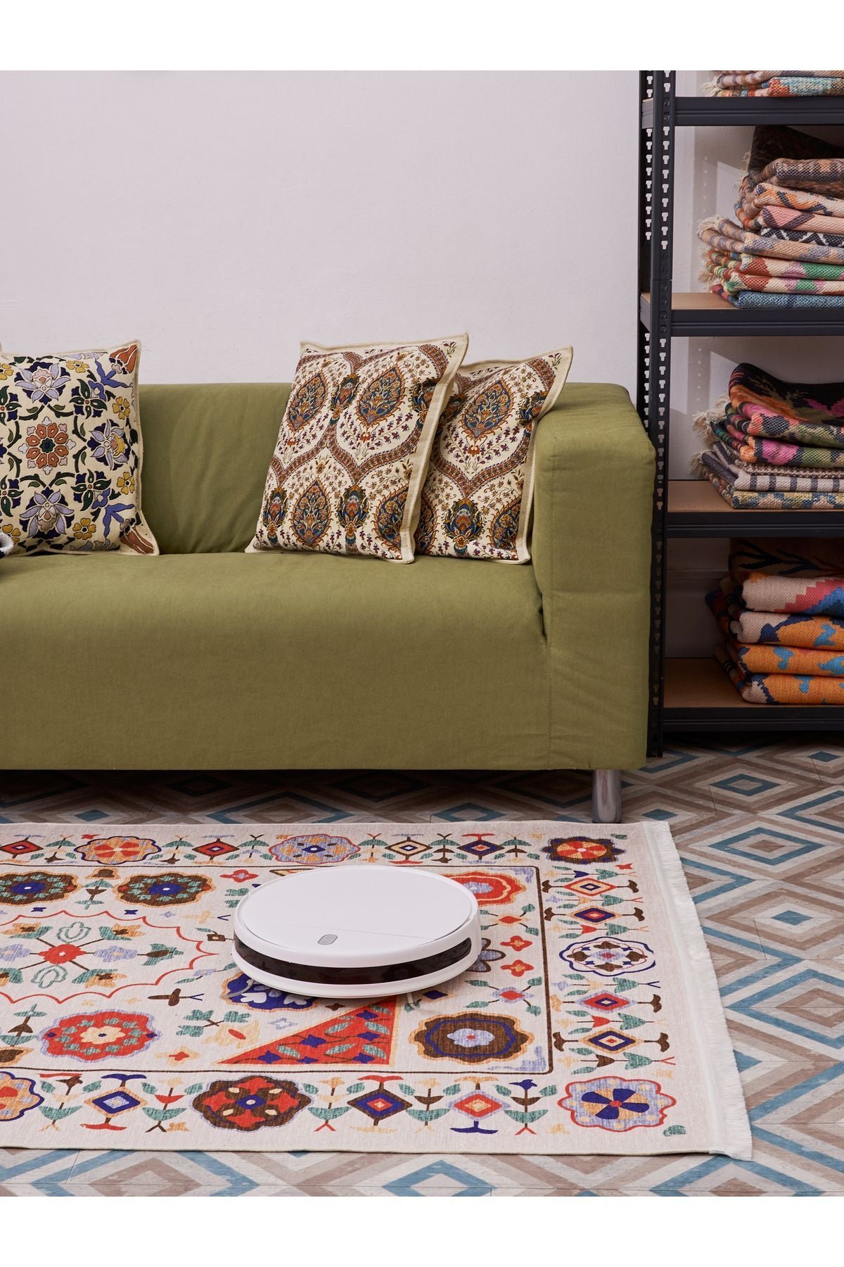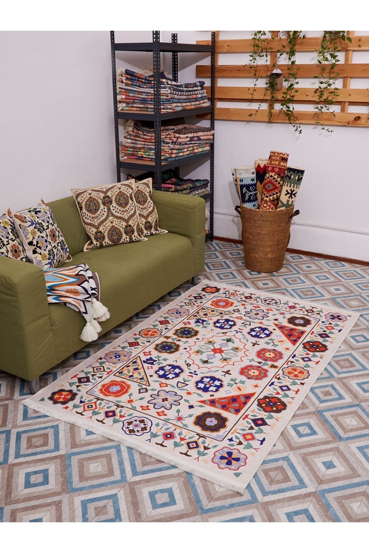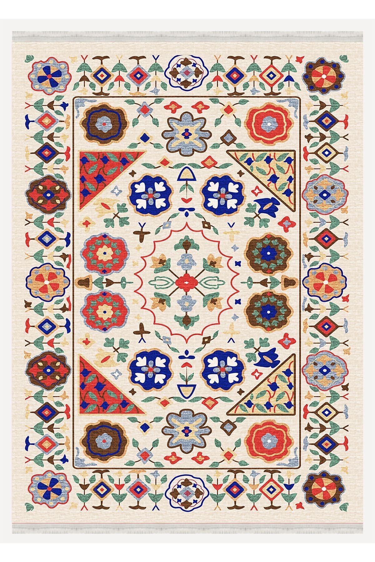 HV 2035 Renkli Klasik Desenli Yıkanabilir Dokuma Taban Salon Halısı Koridor Ve Mutfak Halısı