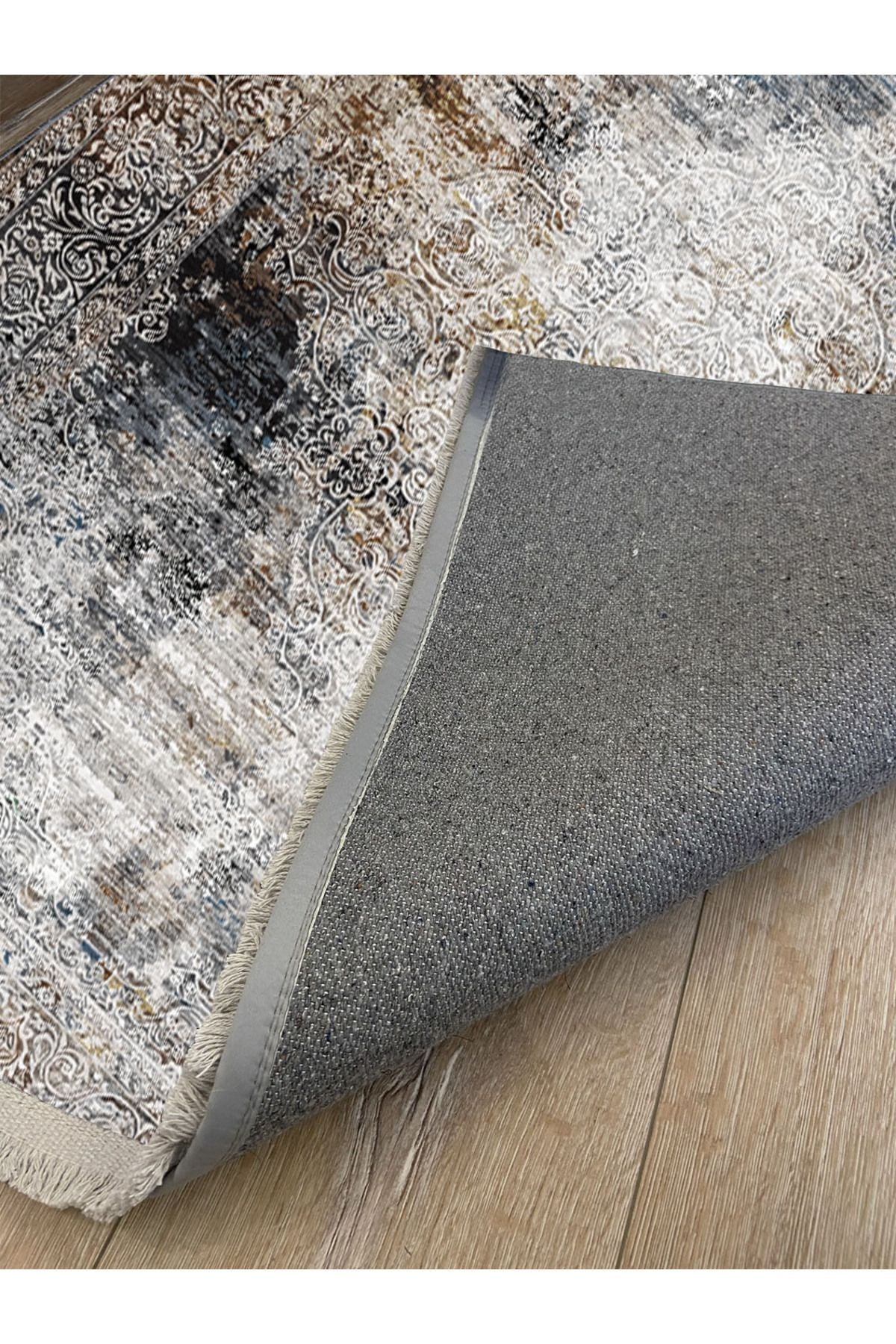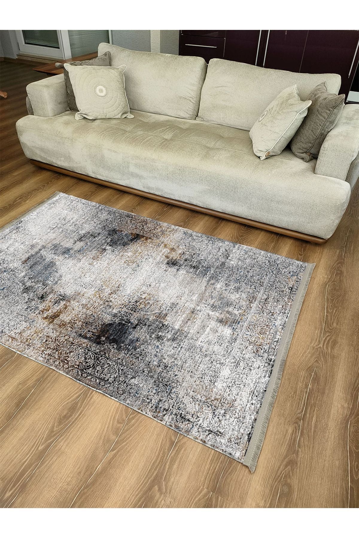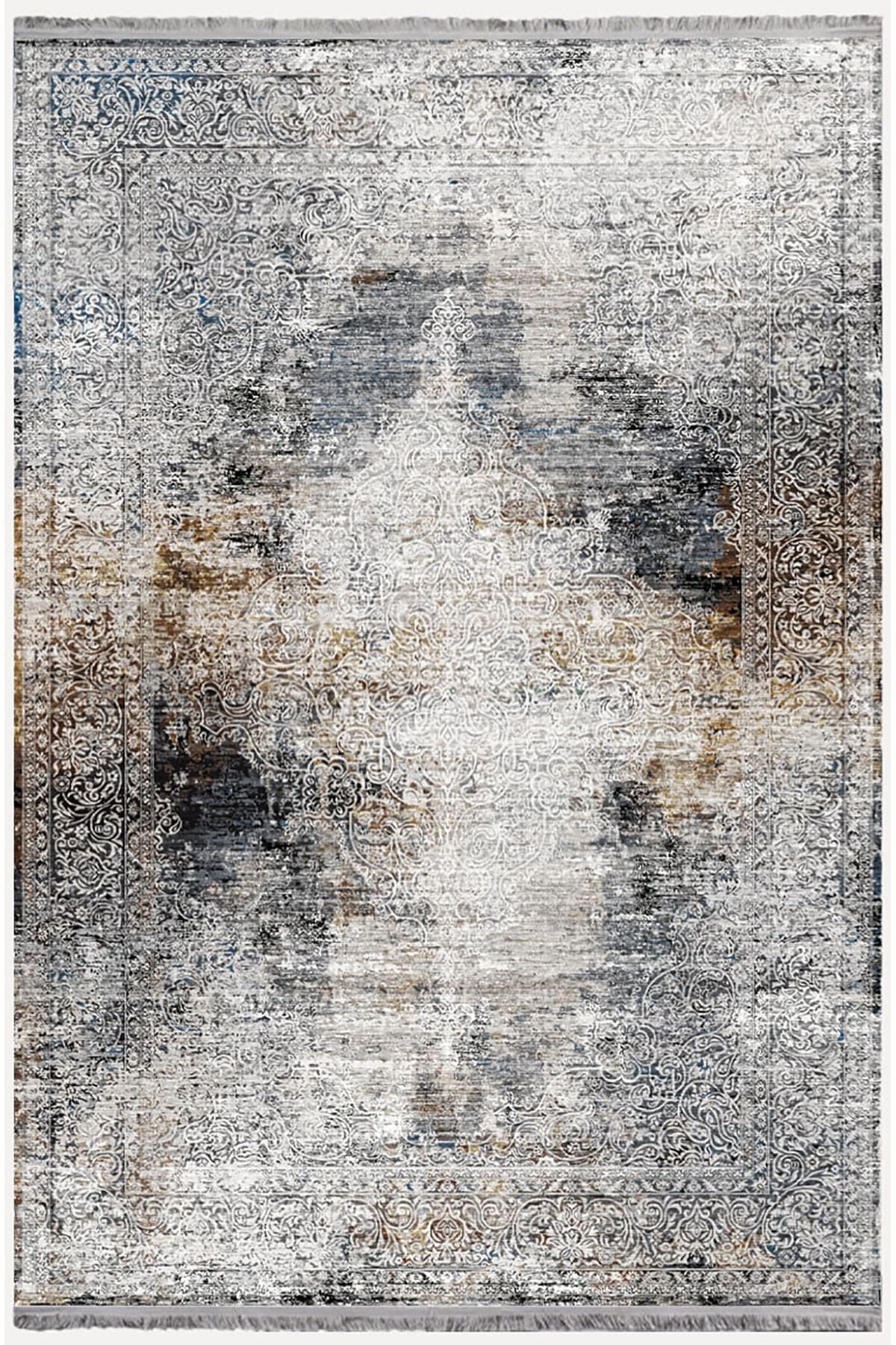 Mars 2163 Gri Tonlarında Klasik Eskitme Desen Saçaklı Dekoratif Halı