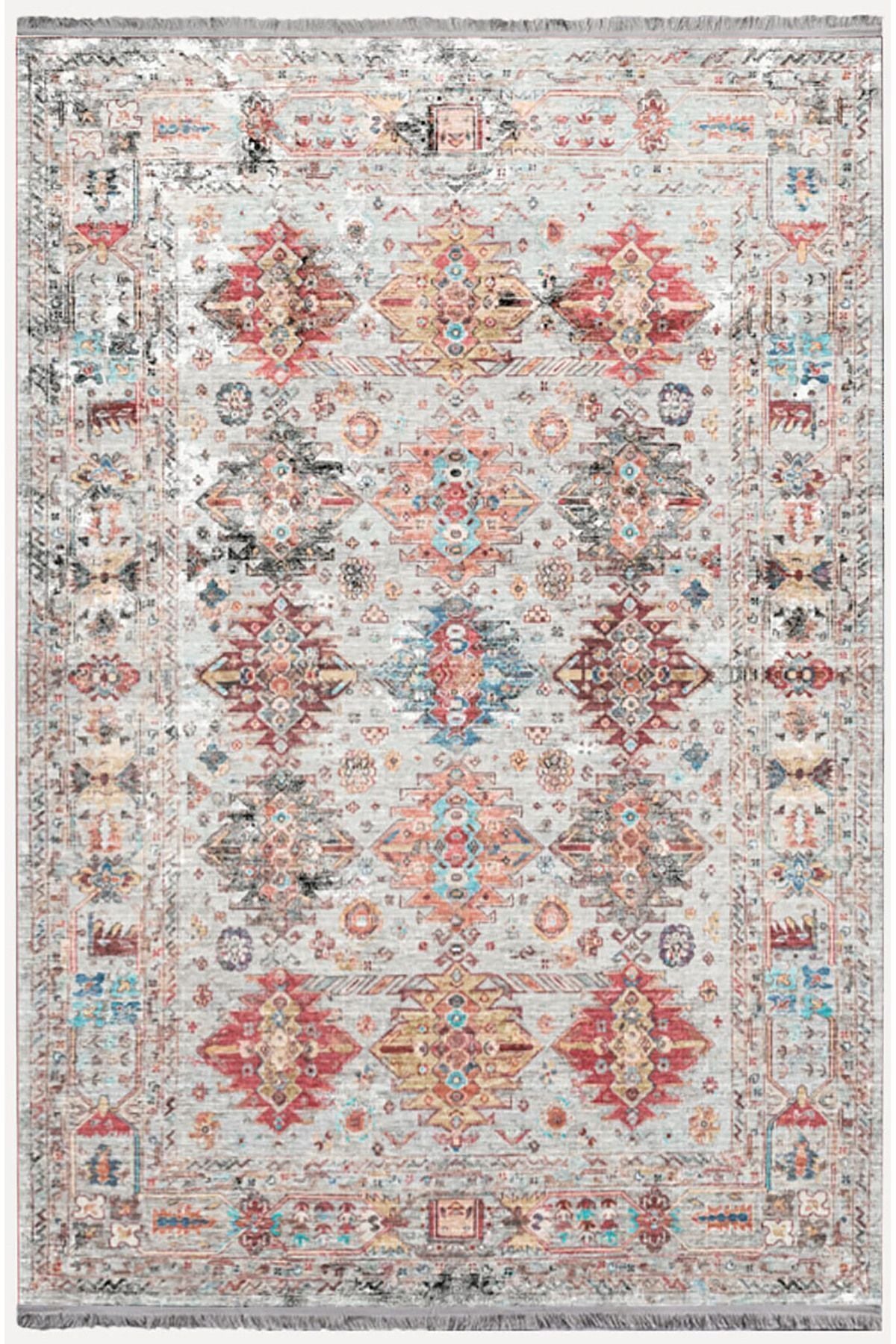Mars 2164 Krem Tonlarında Eskitme Desen Kaymaz Taban Dekoratif Halı