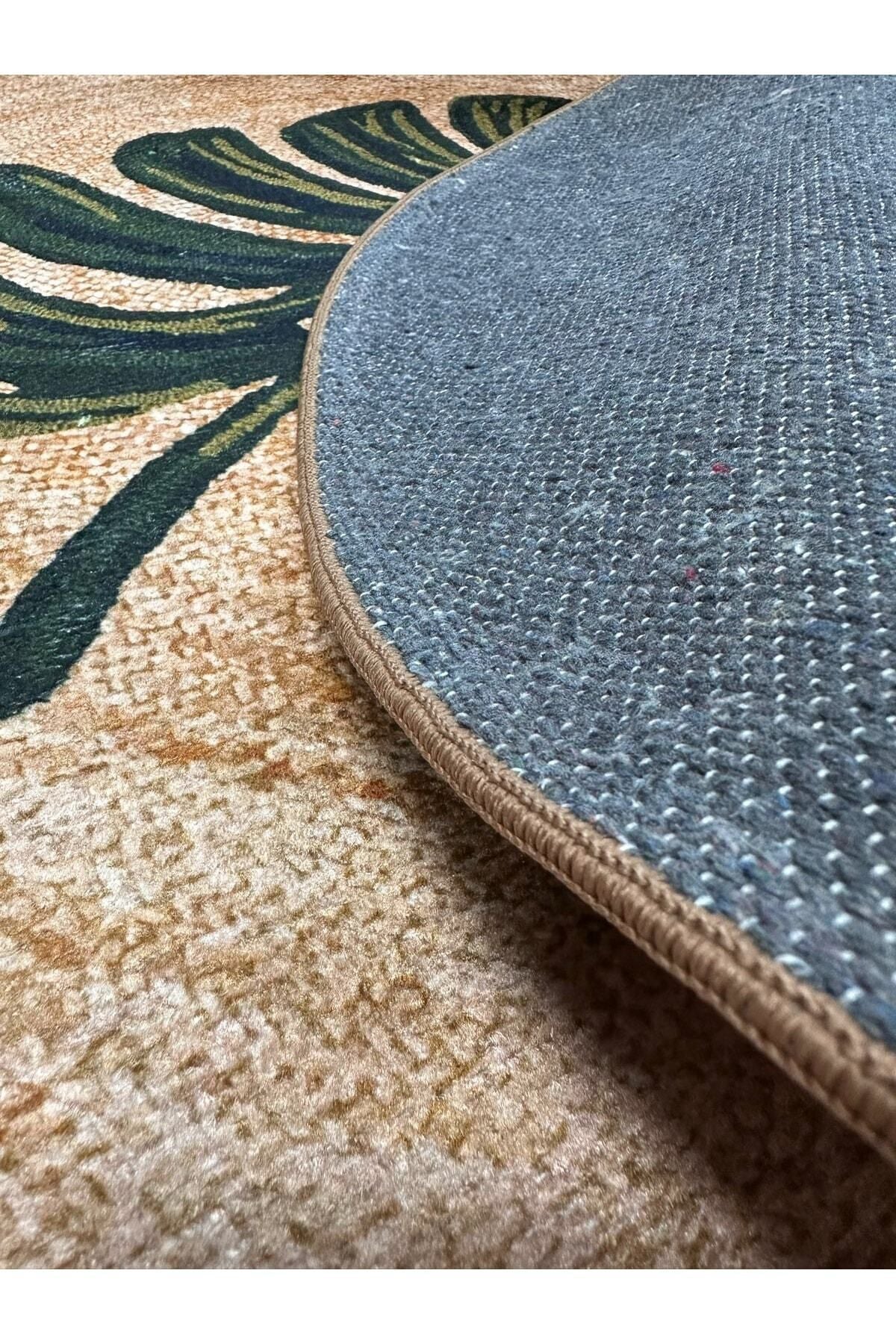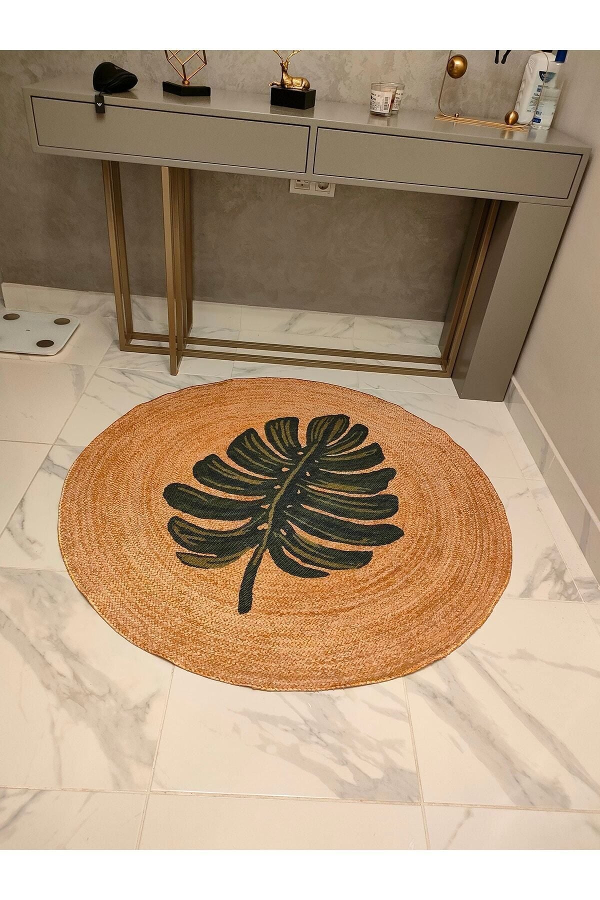 Mars 912 Hasır Jüt Görünümlü Dokuma Yıkanabilir Halı Ve Kilim Pamuk Taban Yeşil Yaprak