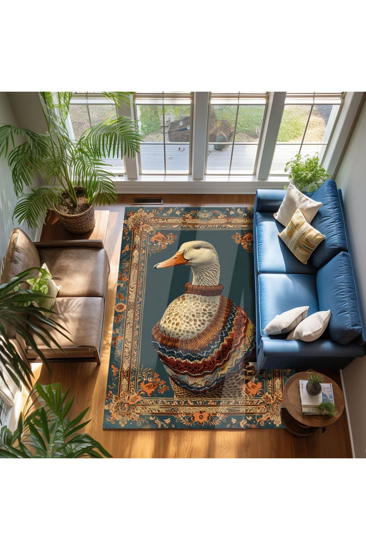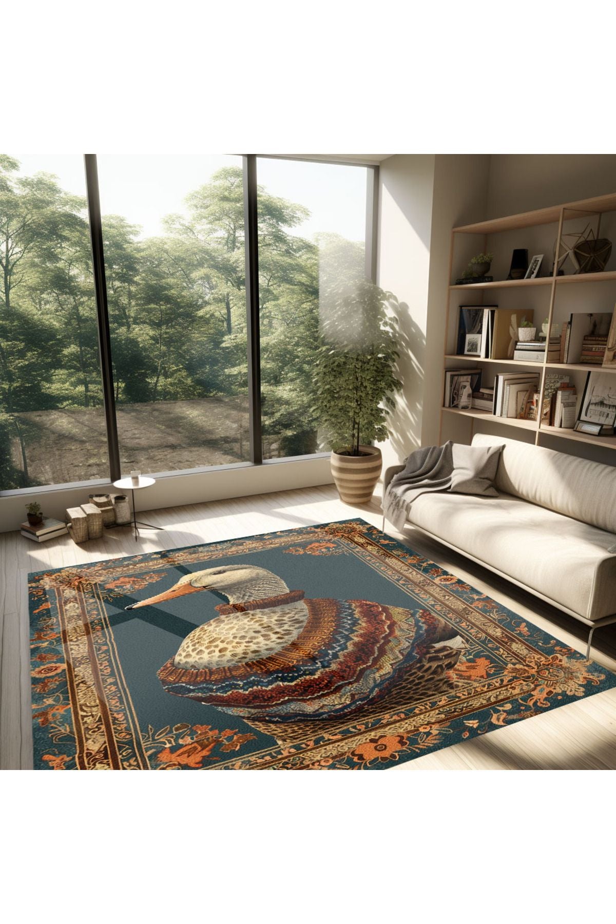 Ördek Temalı Yeşil Tonlarında Pastel Botanik Dokuma Taban Salon Halısı Çocuk Halısı HV 256